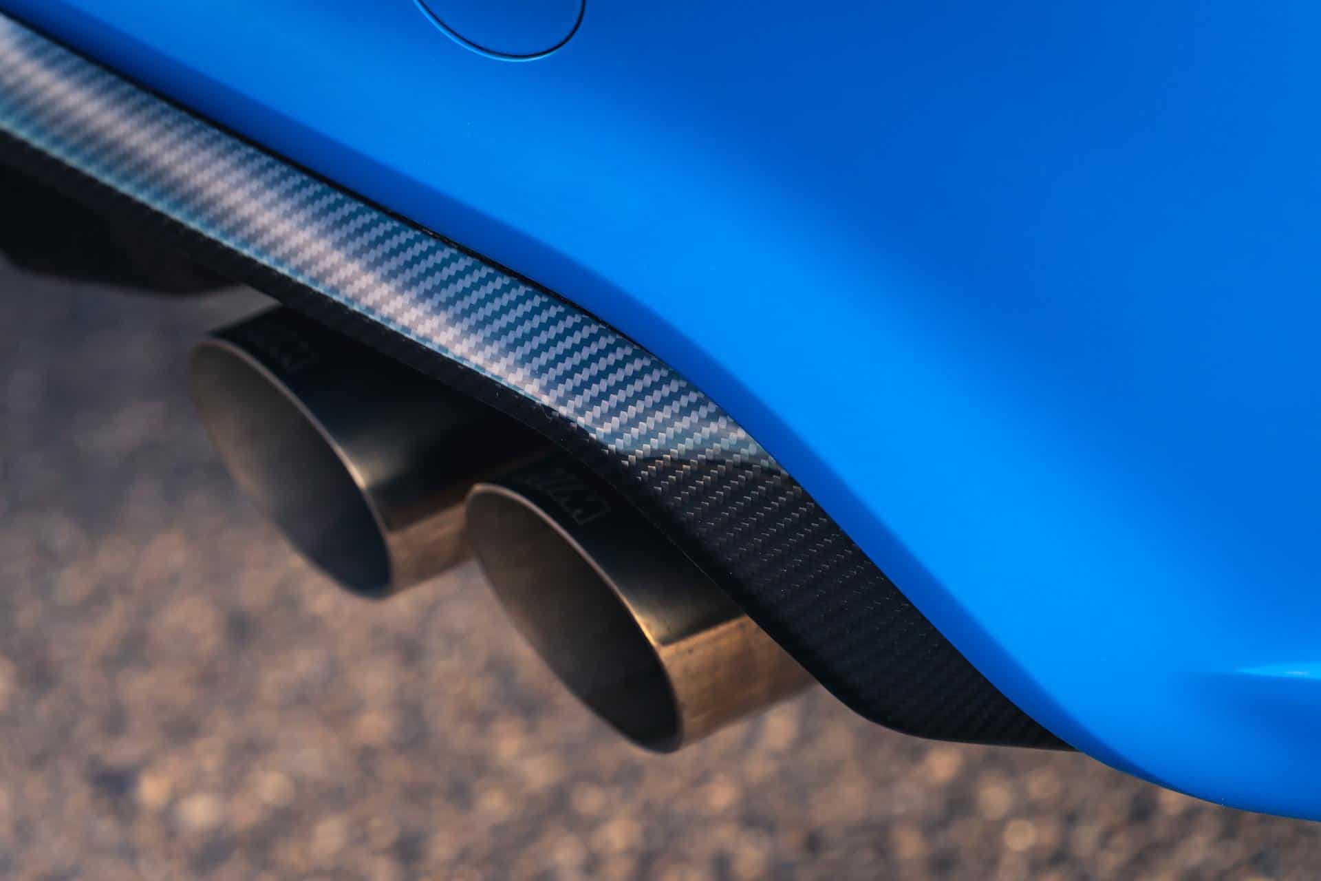 The side view showcase the optional carbon-ceramic brake system with its golden brake calipers while in the back we can see a carbon fiber spoiler and diffuser. The exhaust system was further optimized, featuring a quad architecture and embossed M logos on each pipe.