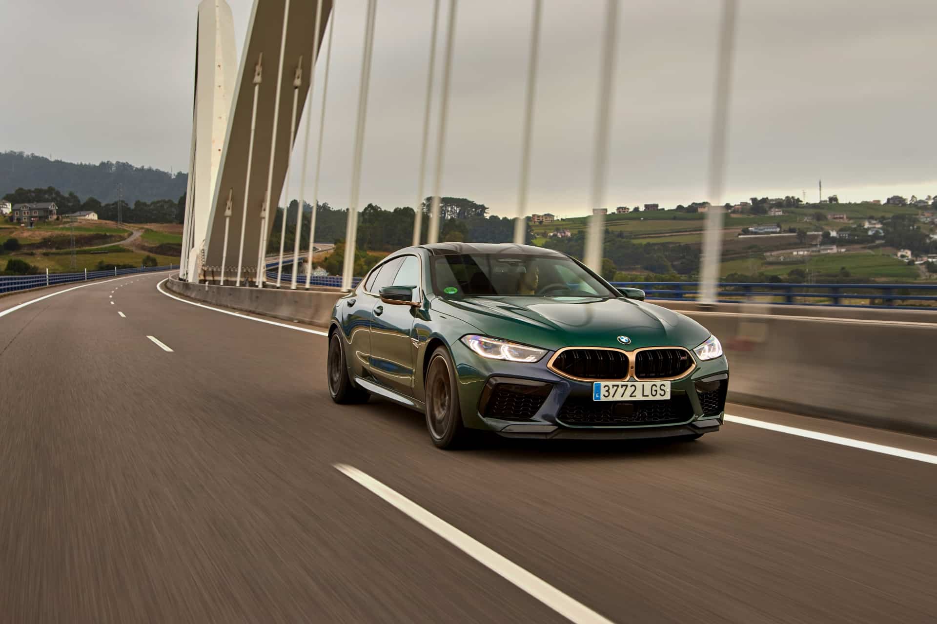 The exterior paint finish dramatically highlights the car’s supreme, upscale status among the M8 lineup. The Aurora Diamant Green metallic suggests the car is a precious gemstone, having the shiny reflection of an emerald. The special green paintwork of the First Edition is further accentuated by the refined BMW Individual high-gloss gold ornaments for the M kidney grille frame, Air Breathers and side windows.