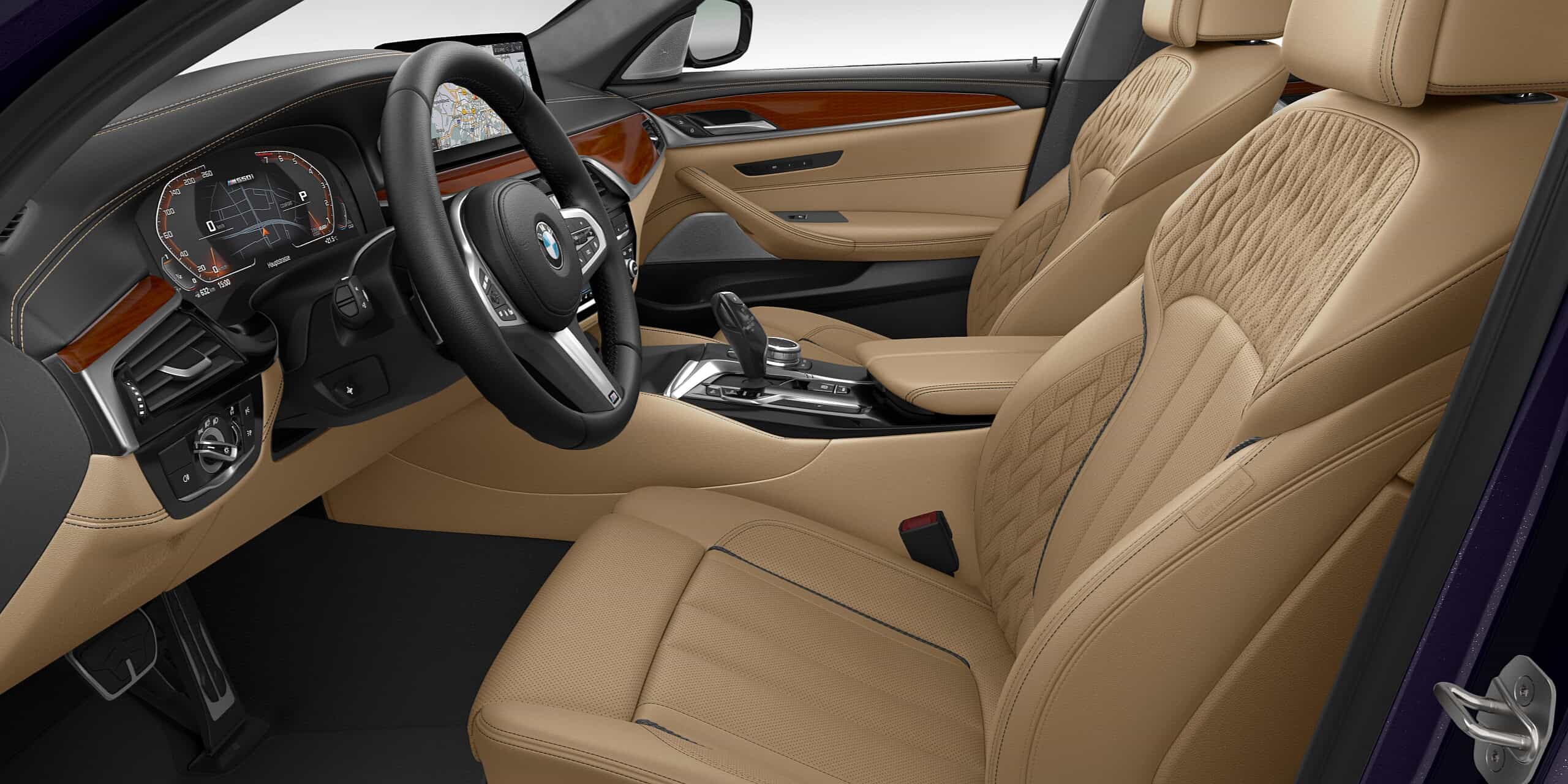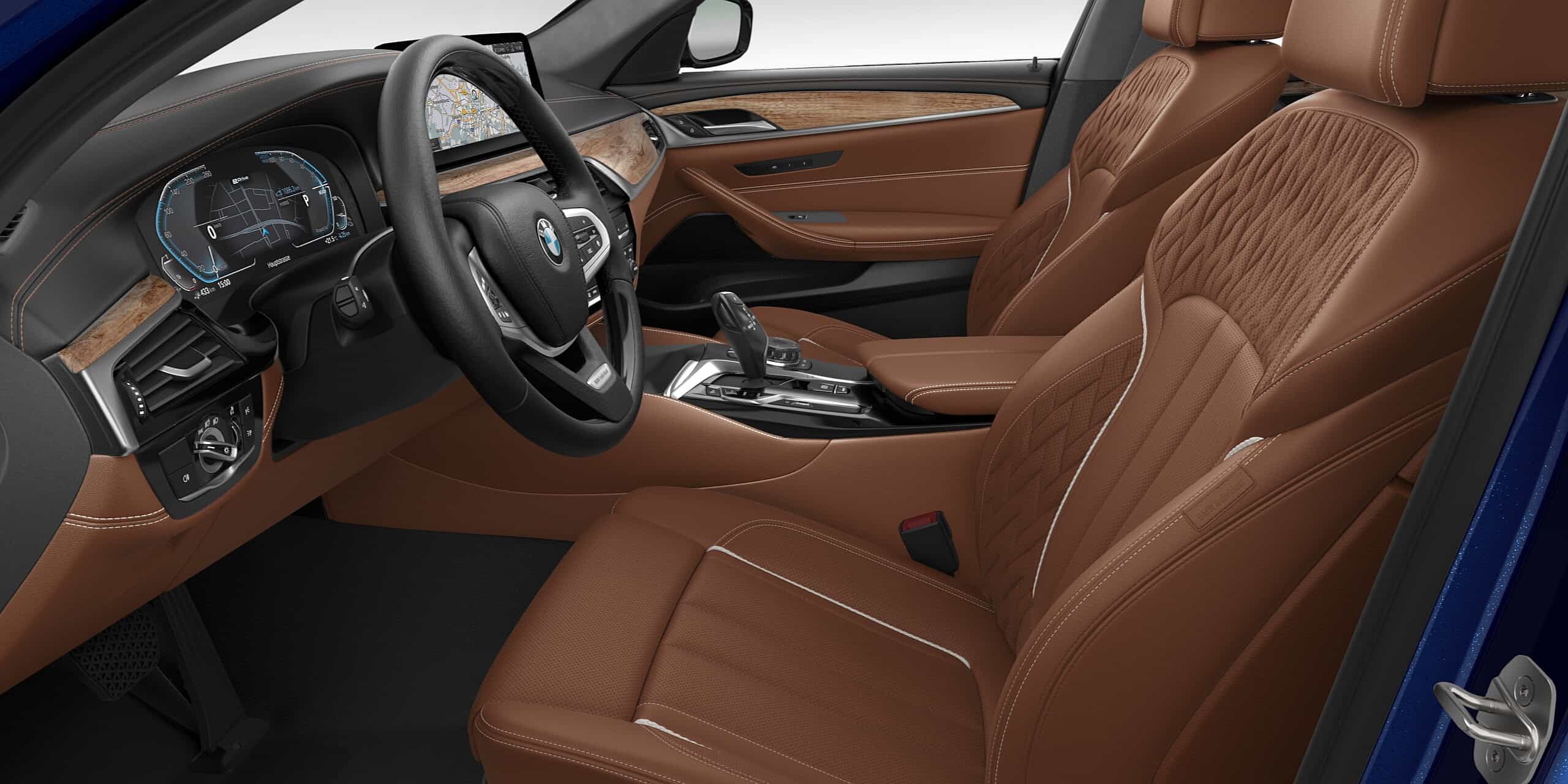 BMW 530e xDrive – Blue Hera Mica (P5R) with Merino Tartufo leather