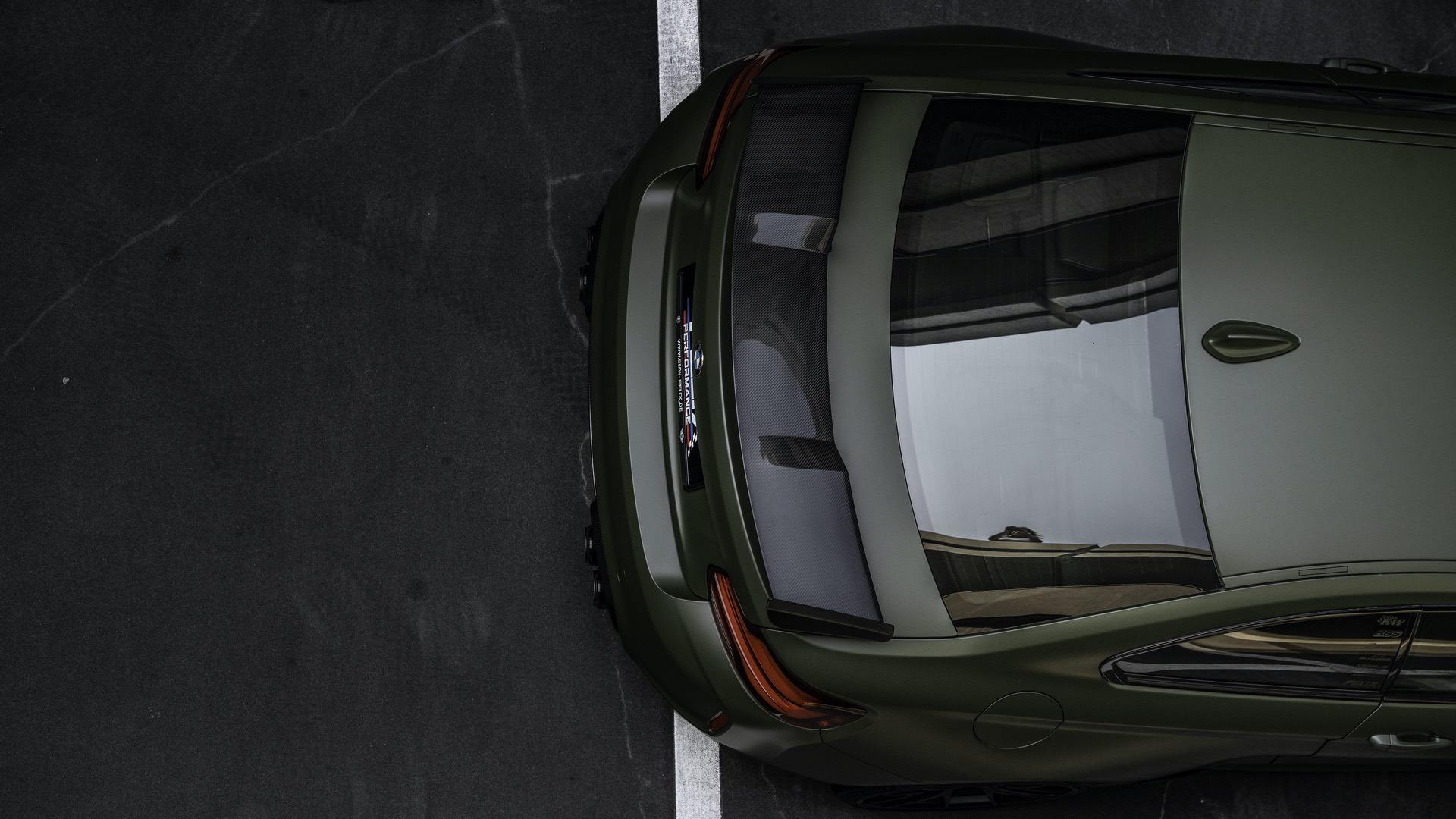 The front-end gets a carbon fiber lip which extends beyond the base bumper. Moving to the rear, you’ll immediately notice a new diffuser, also made of carbon fiber. Furthermore, a massive racing wing sits atop the trunk. But according to the dealer, this was designed in-house as a custom piece.