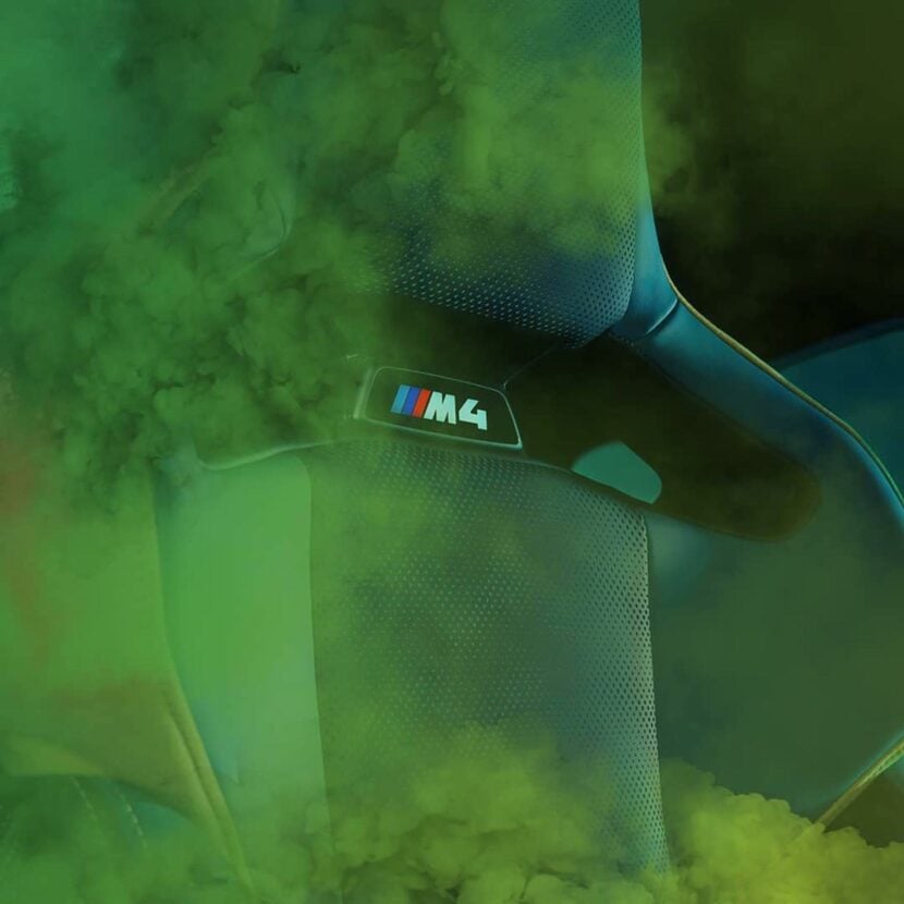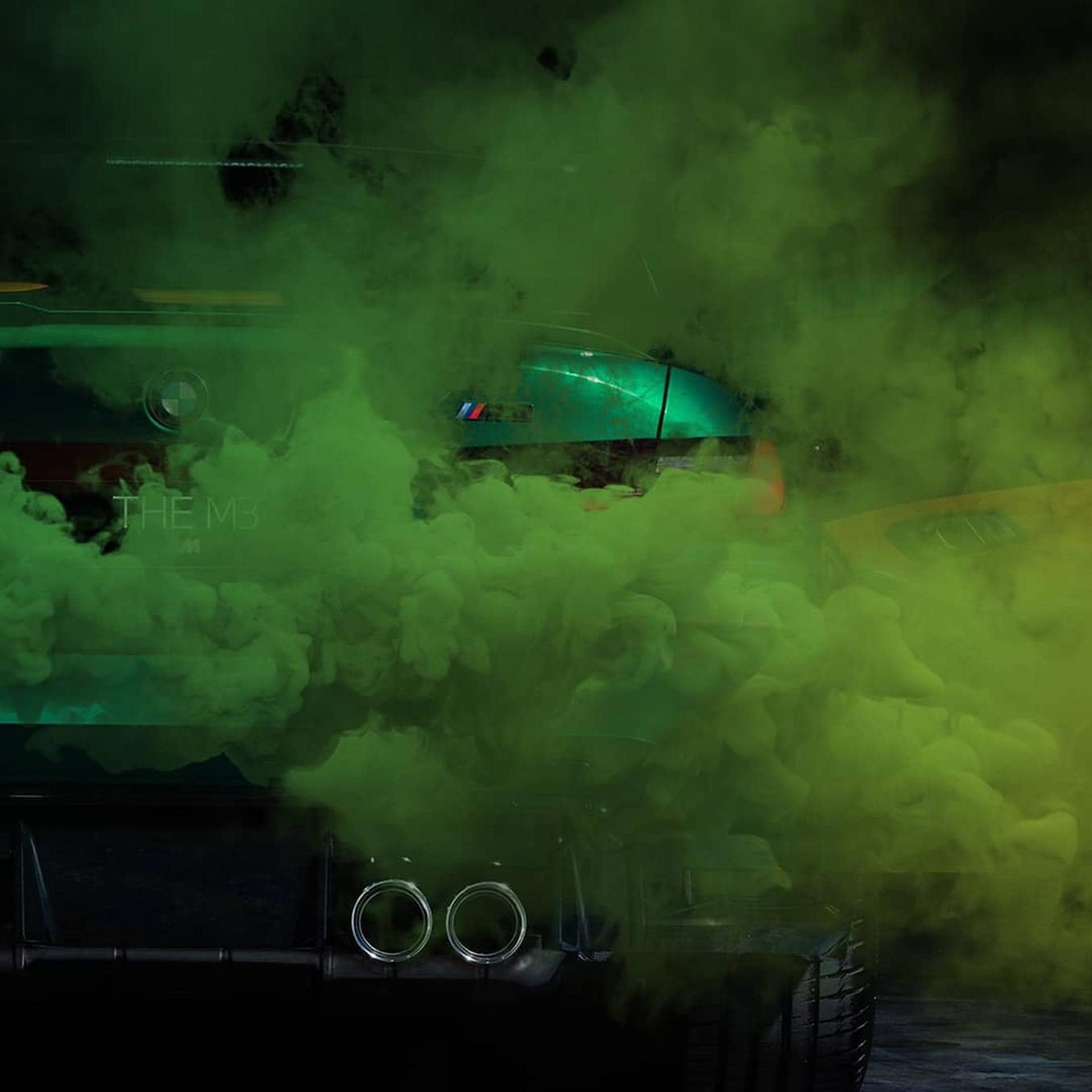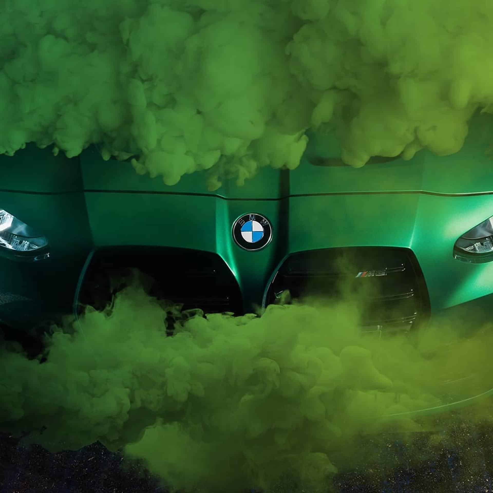 Seen here in a few smoke-covered photos, we can see the new BMW M3 and M4 teased, wearing a great shade of Isle of Man Green. The smoke obscuring most of the car’s details is also that same green, which makes for a very cool affect.