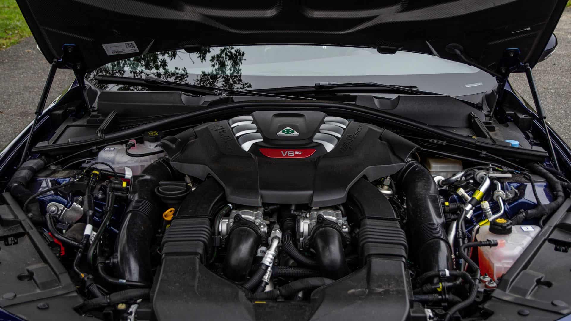 Alfa’s blow V6 is a joy to use. It makes power everywhere and delivers it with a shocking smoothness. Admittedly, a lot of that smoothness comes from the fact that Alfa uses hilariously soft engine mounts, so the engine will rock back and forth as if it’s trying to break free from its mounts when you rev it. So nary a vibration makes it through to the cabin. Having said that, the power delivery is excellent and it’s calibrated wonderfully to the eight-speed auto.
