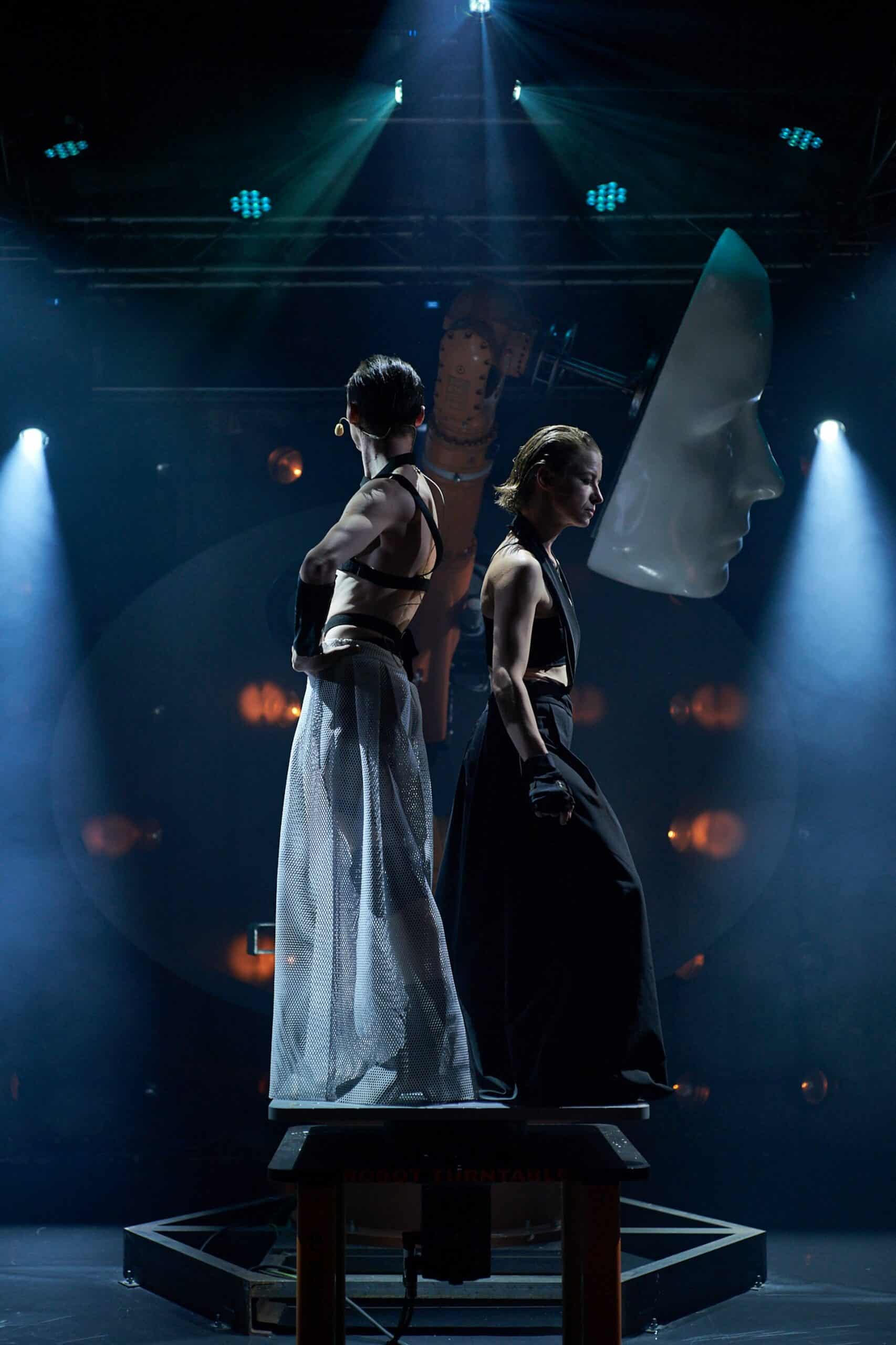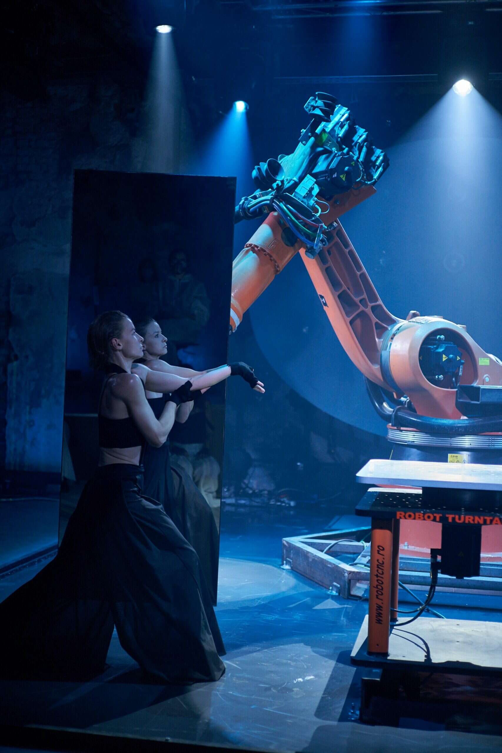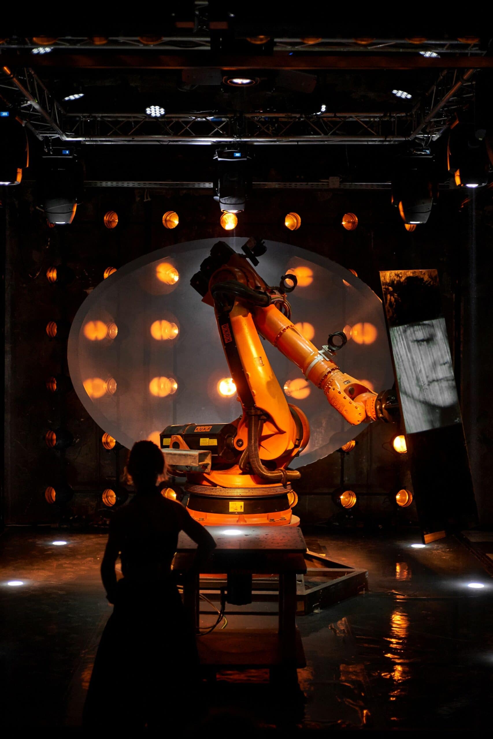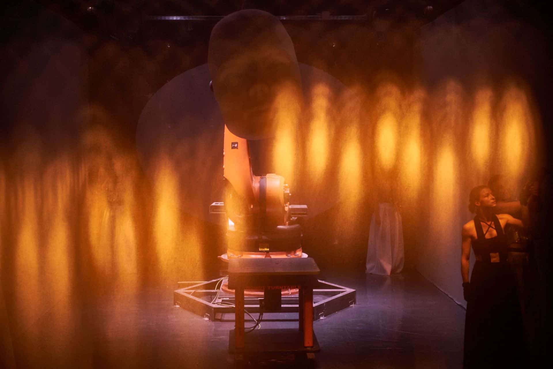 The robot we were checking out in this play was apparently formerly used in the BMW Regensburg plant for several years. Now, it became a dancer on stage and I was completely taken aback by how graceful it could be. For the play, a few different faces were prepared to attach to its extremities and the robot played three parts in the installation, moving graciously alongside the talented ballerina who made 1.5 ton mechanical arm look alive through her movements.