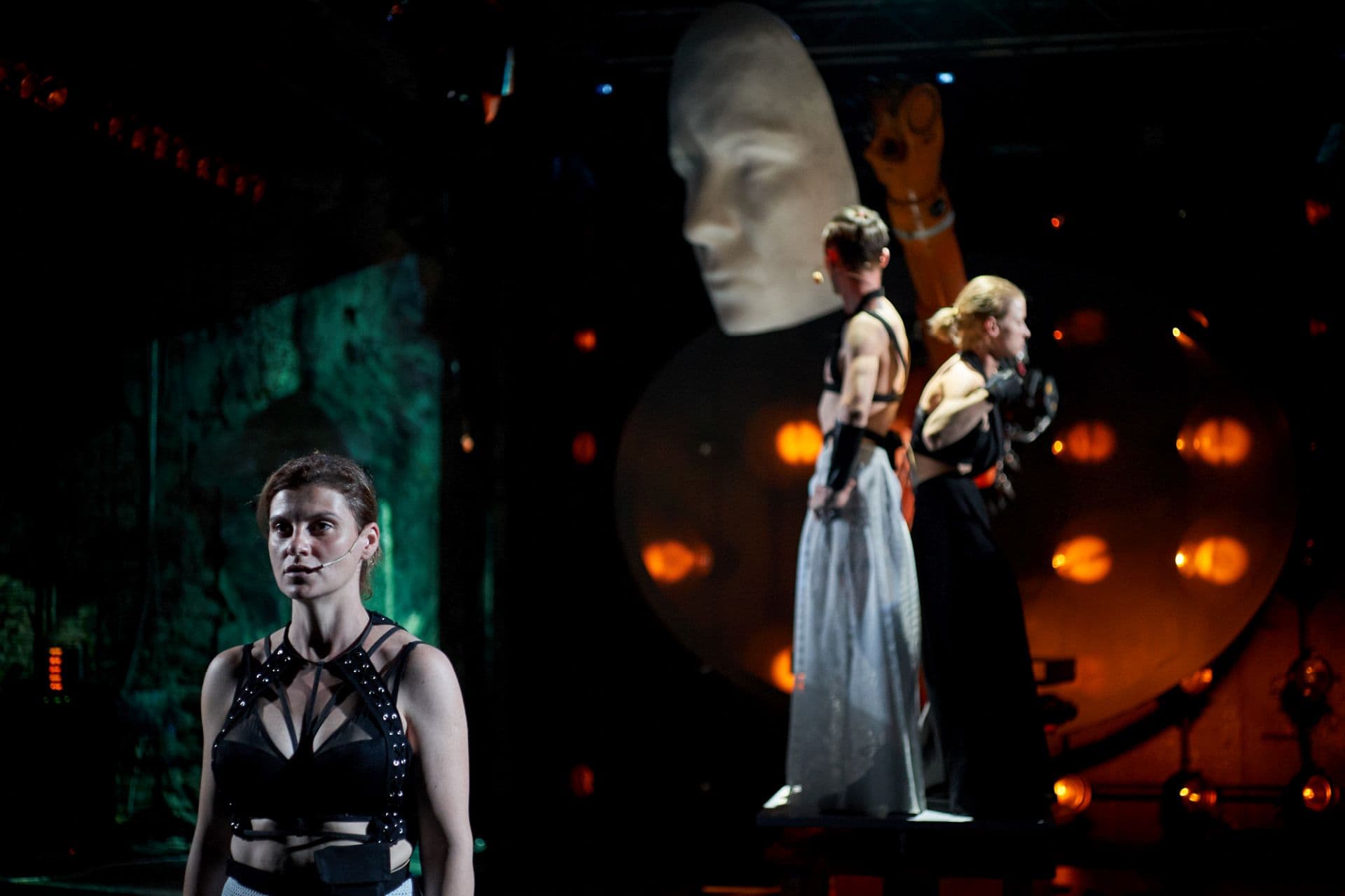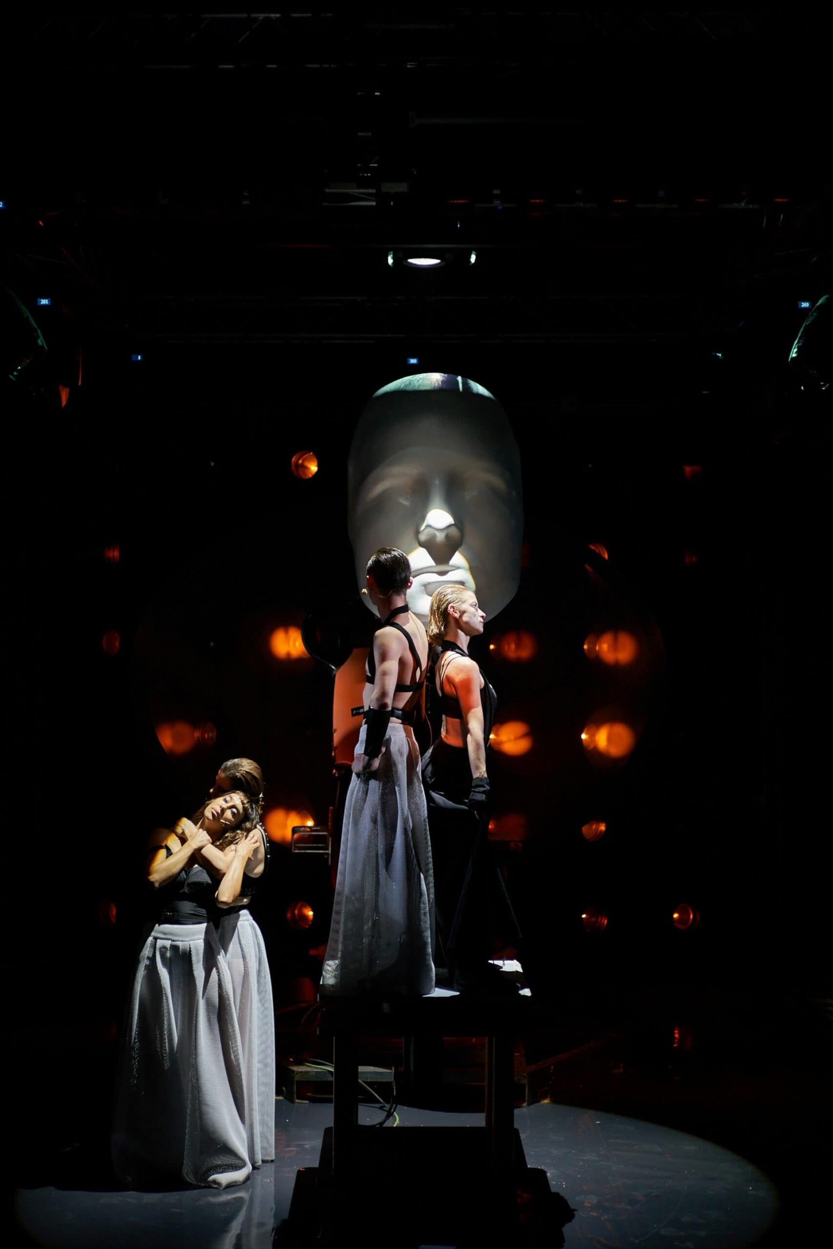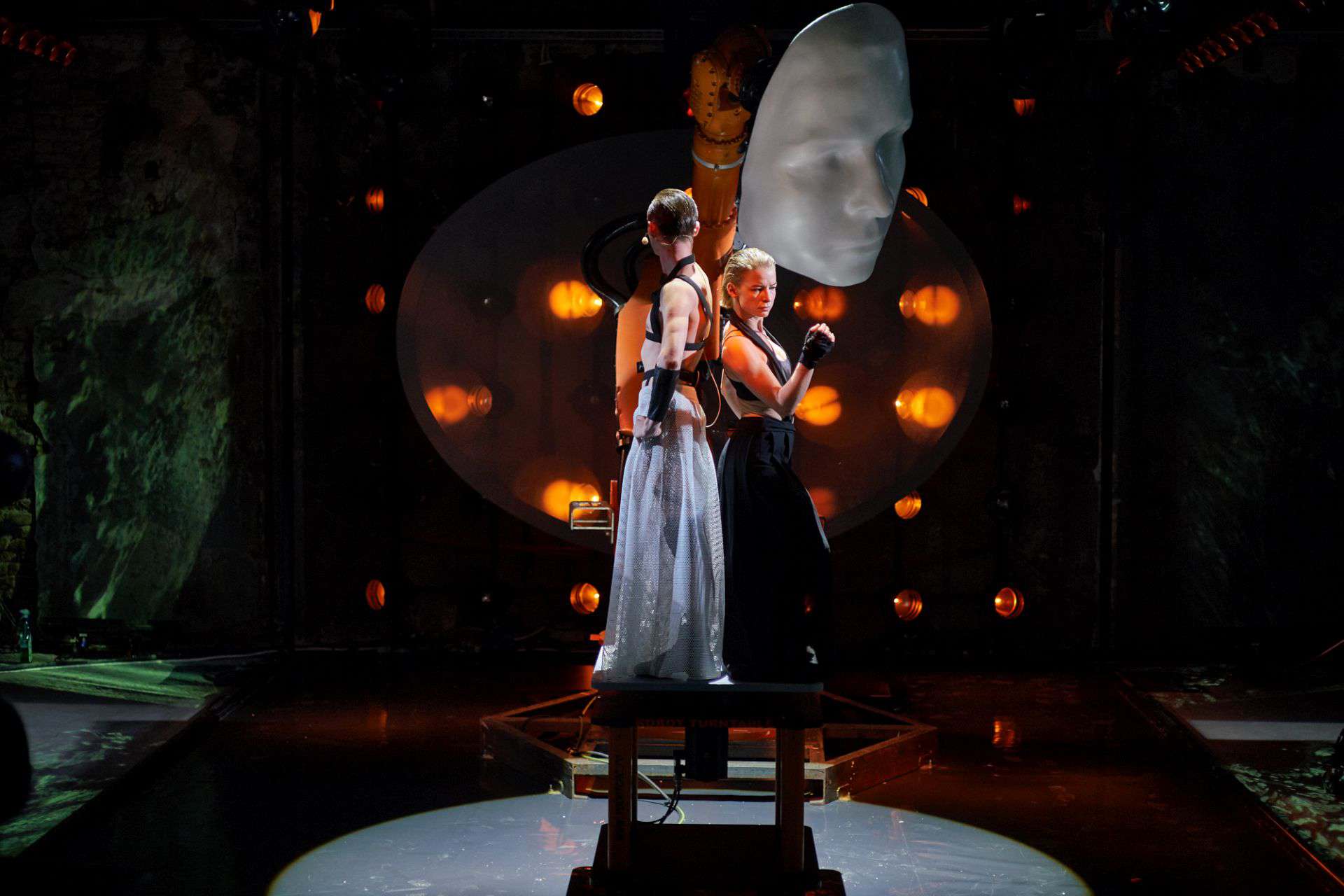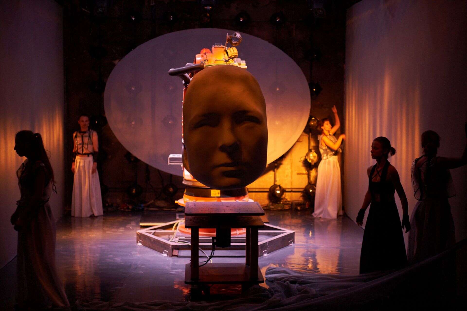 The robot we were checking out in this play was apparently formerly used in the BMW Regensburg plant for several years. Now, it became a dancer on stage and I was completely taken aback by how graceful it could be. For the play, a few different faces were prepared to attach to its extremities and the robot played three parts in the installation, moving graciously alongside the talented ballerina who made 1.5 ton mechanical arm look alive through her movements.