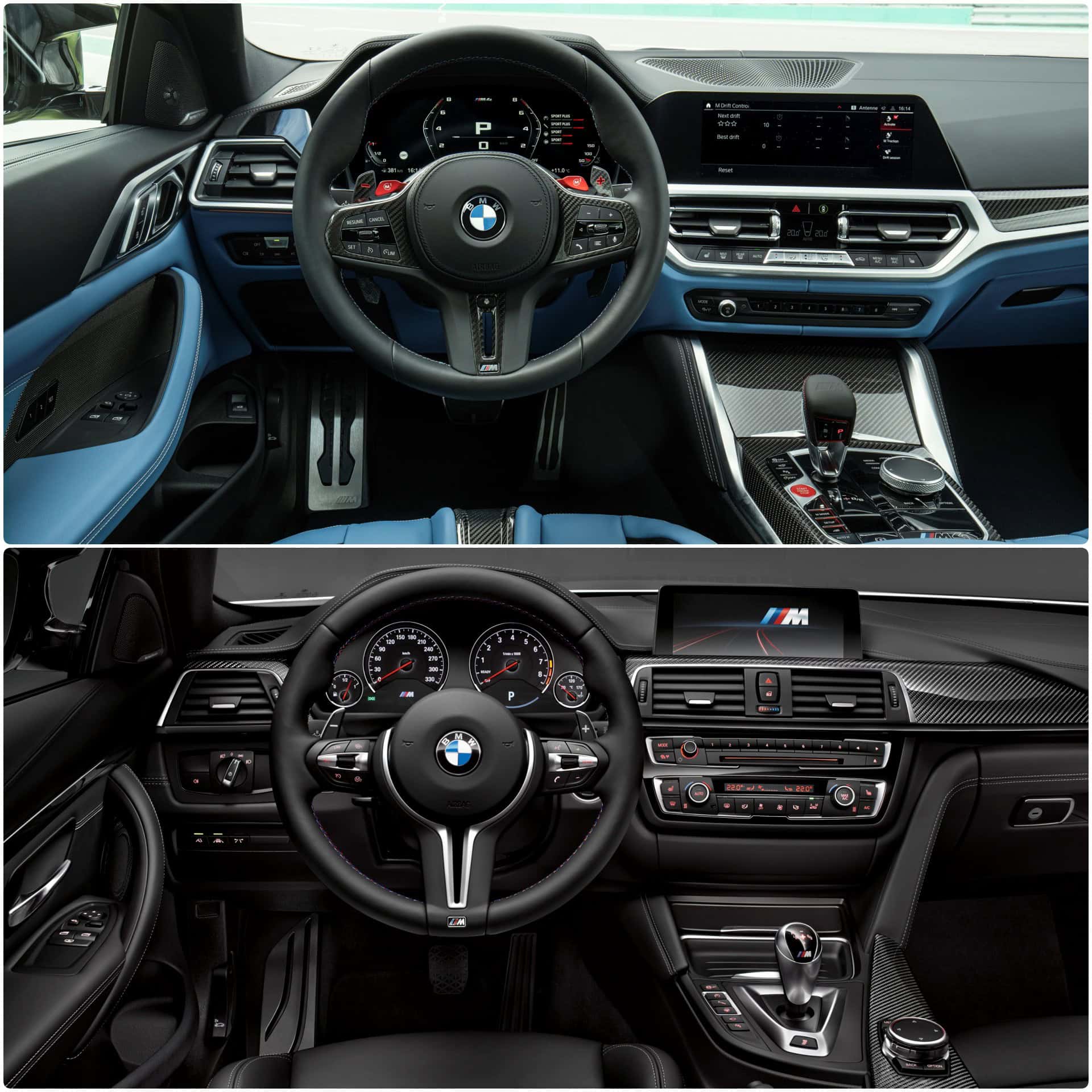 When it comes to dashboard design, we can clearly see a logical evolution towards a minimalistic architecture in the case of the M4, which still emphasizes the unmistakable BMW styling cues and ergonomics. The F82 M4, conceived more than 6 years ago, features many buttons and physical controls, whereas the new G82 M4 is confident with doing away with most of them.