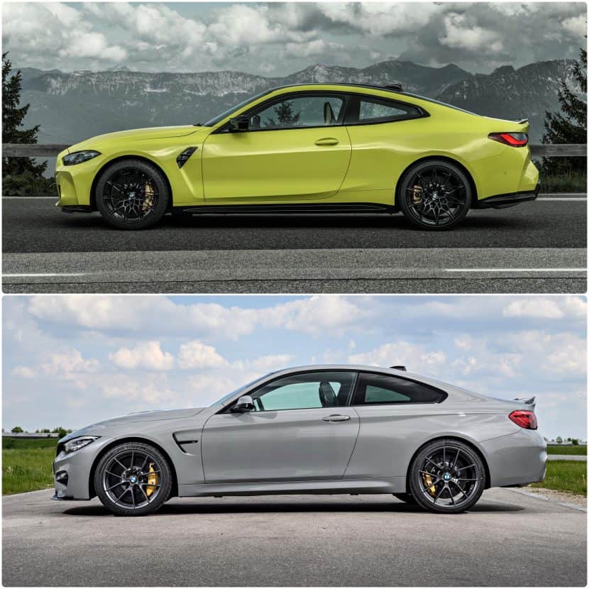 Comparing the sides, the striking differences are further revealed. The new generation of the M4 Coupe comes up with a reshaped silhouette, that is stripped to its bare essentials. The detailing is clean, the side Air Breather is revamped and the window line is no longer straight, but upwards-tilting towards the rear.