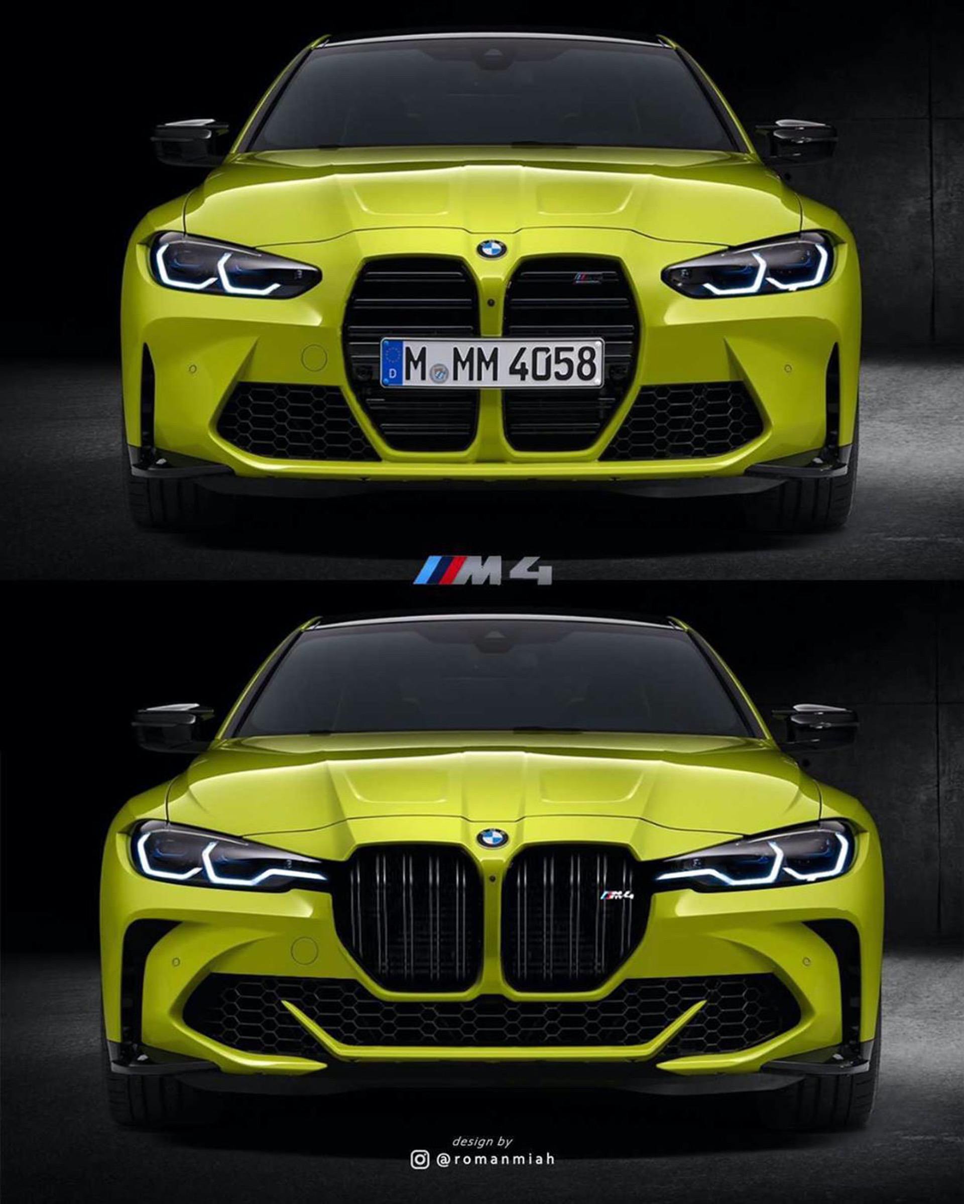 The first iteration shows the G82 M4 with mesh kidneys, similar to some of the recent BMW M Performance cars. The headlights went through changes as well: they’re now longer and sleeker, and they connect directly to the outer edges of the grille.