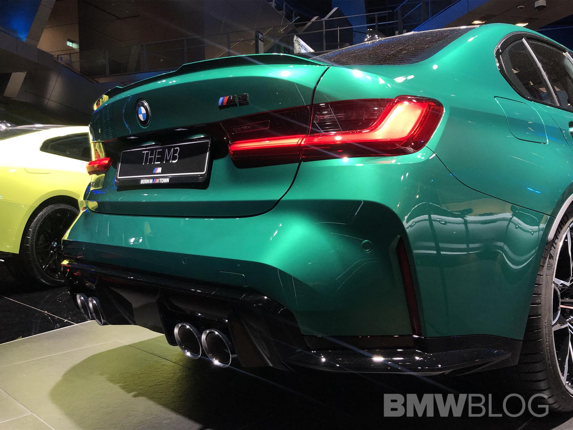 After a web reveal, the new 2021 BMW M3 (G80) is heading for the BMW Welt in Munich. The iconic building is now hosting both the new M3 and M4, in their launch colors: Sao Paolo Yellow and Isle of Man Green. Therefore, we were on site to capture the controversial sedan in all its glory.