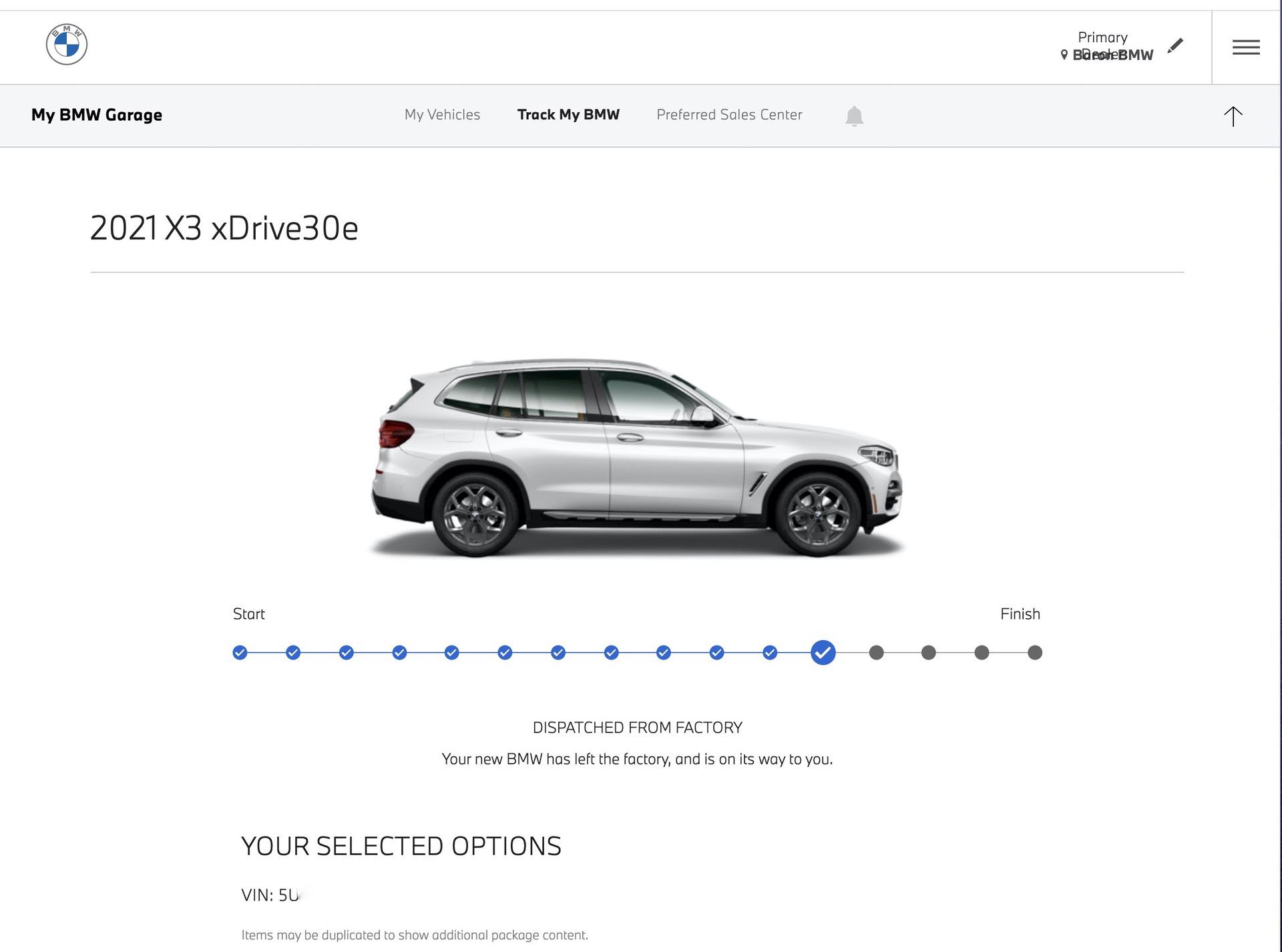 We worked out the details over the phone and decided to go ahead and order a 2021 BMW X3 plug-in hybrid. This was August 18th mid-day. Our order was entered into BMW’s system and the car was put into production the week of August 31st and finished up on September 3rd. So just over 2 weeks to get built and quality checked.