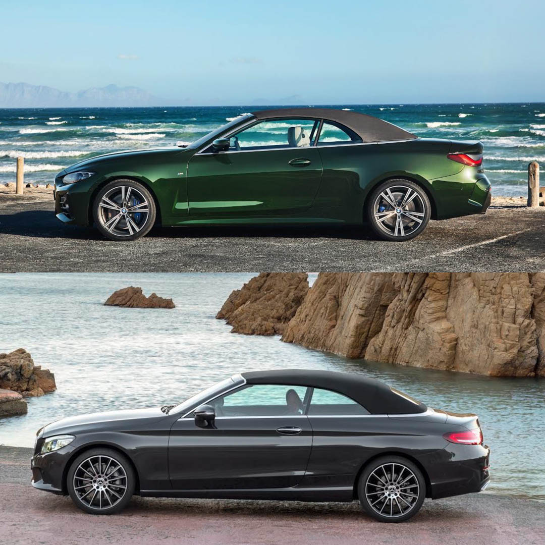 Obviously, we haven’t driven the new 4 Series Convertible yet, nor have we driven the C-Class Cabrio. So we’re not going to comment on how they drive but that still leaves one of those very important aforementioned attributes to compare — style.