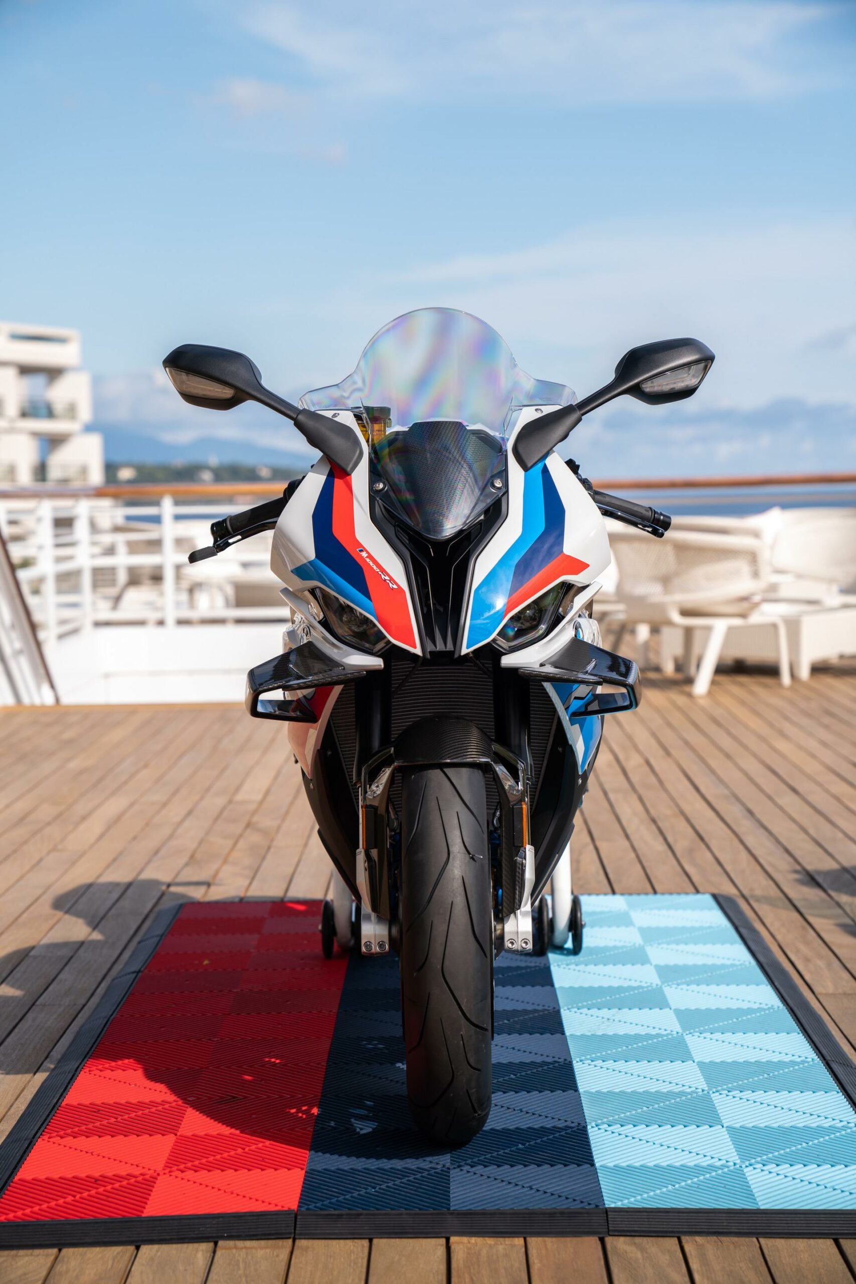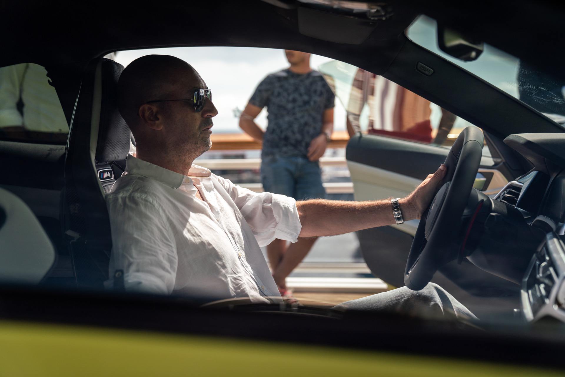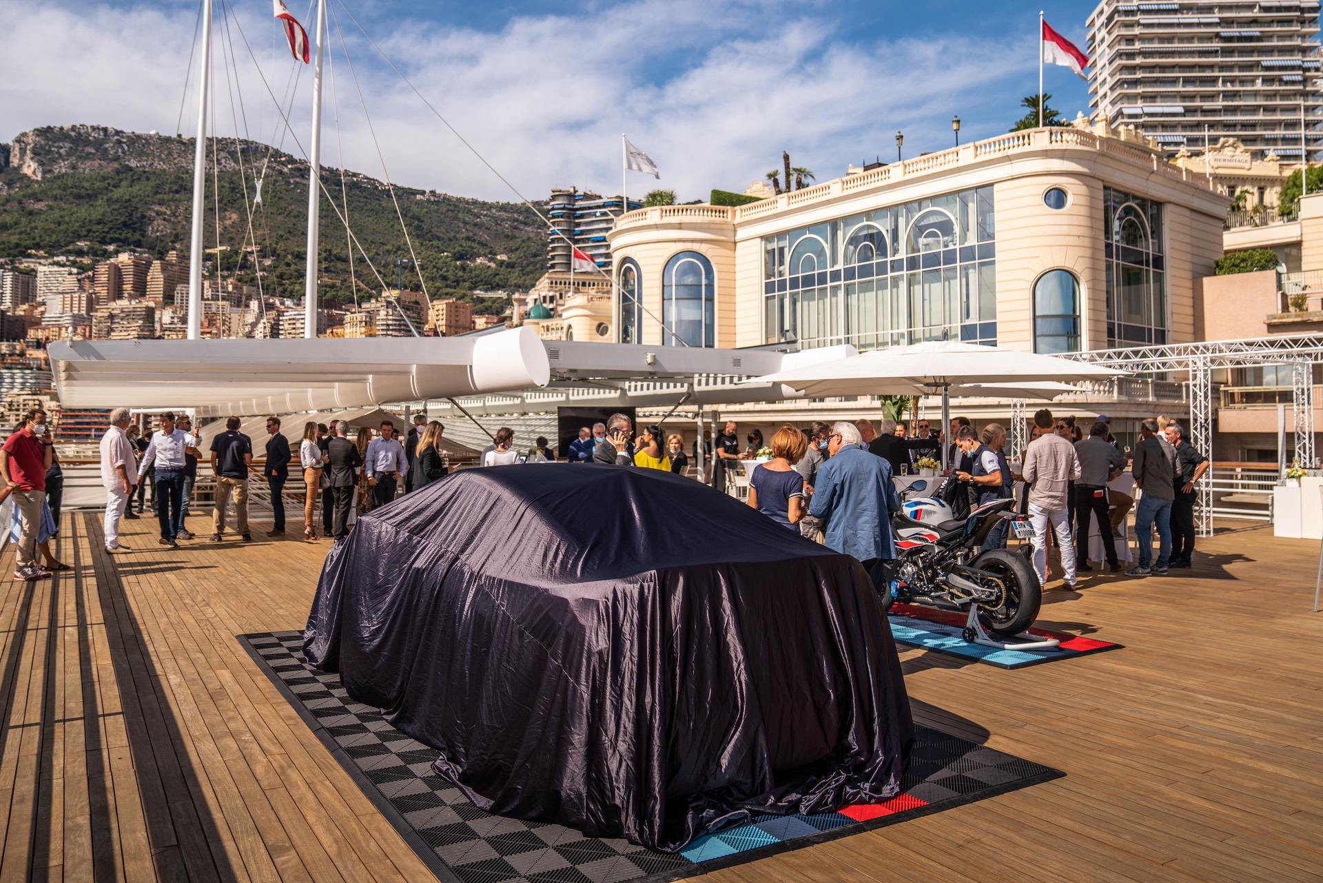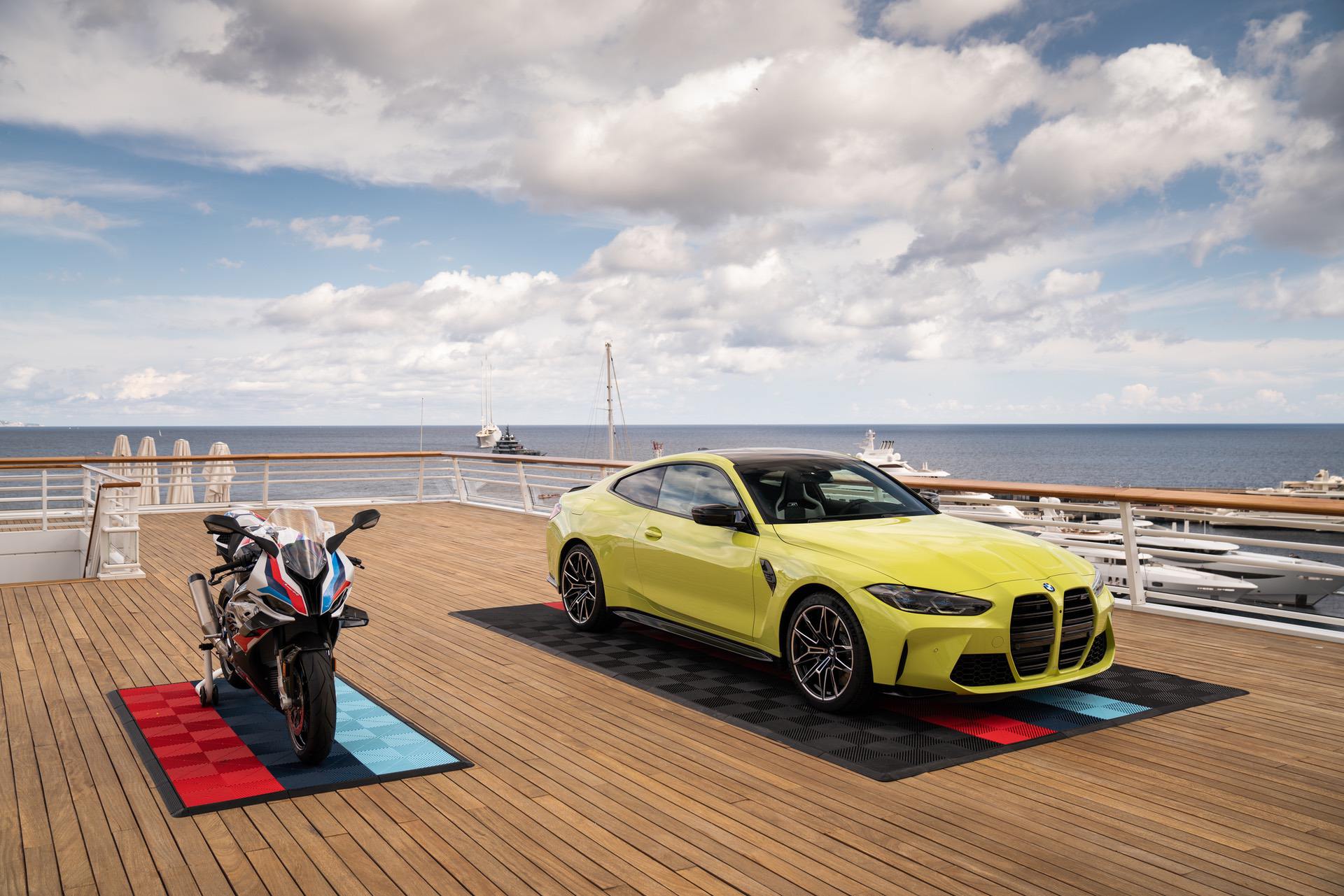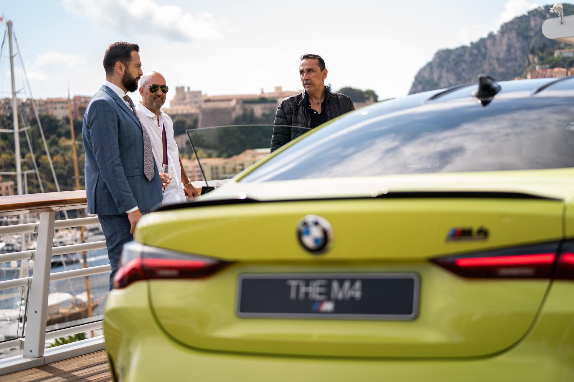 To get the BMW M4 from its starting point to the stunning deck of the same yacht club that the Prince of Monaco attends, BMW M had to air-drop it in. Getting the M4 up in the air is awesome to watch. The car is jacked up and wheel carrier brackets are attached to the wheels, sitting underneath them. Straps connect those wheel carriers to the bottom of a helicopter, which then lifts the M4 up into the air.