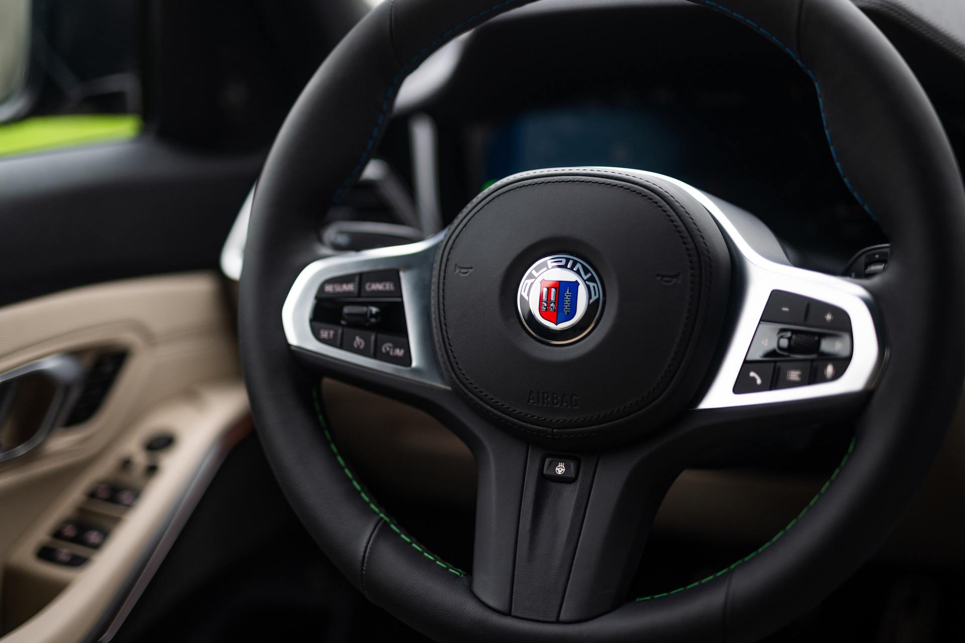 On the inside, you get the standard ALPINA interior treatment. A plethora of little metal emblems and logos on the door sills, seats, dashboard and carpets are complemented by a newly upholstered steering wheel dressed in hand-stitched LAVALINA leather and ALPINA production plaque with build number set on center console.