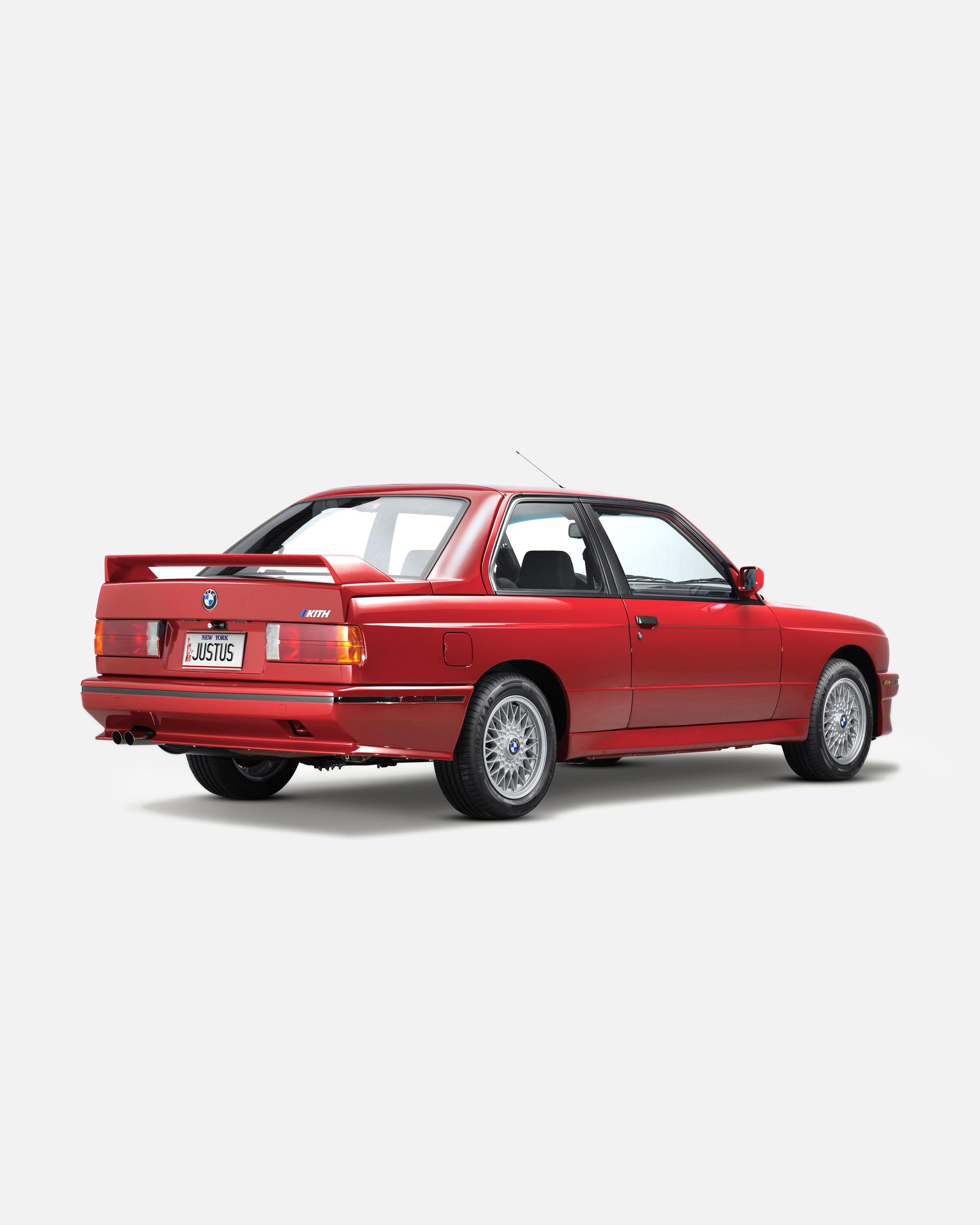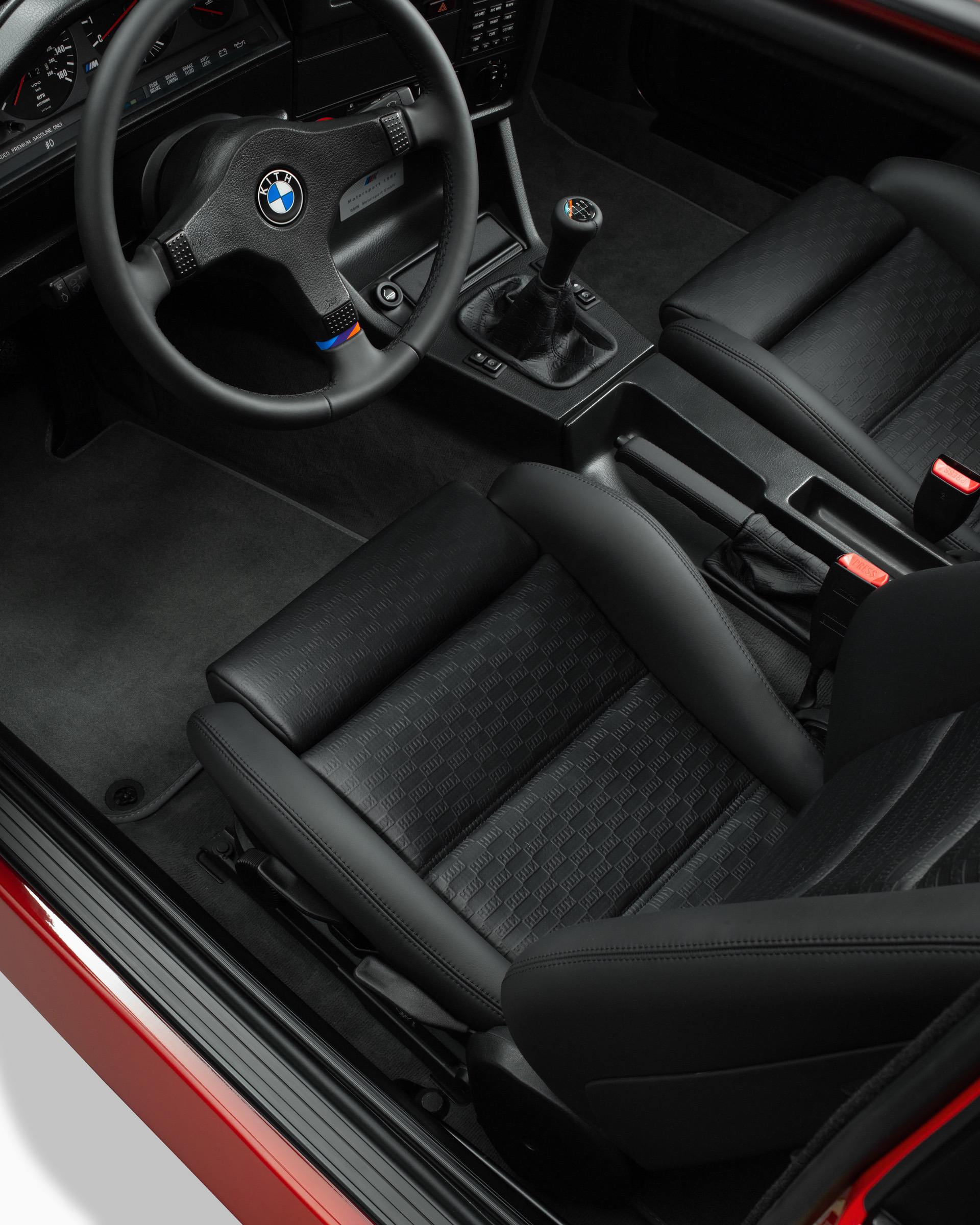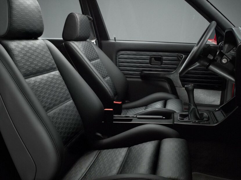 Fieg’s E30 BMW M3 is painted in Cinnabar Red, the most iconic of E30 M3 colors, and features a black leather interior. No mechanical changes have been made to it, so it still uses the same 2.3 liter inline-four as the original, with 192 horsepower and a five-speed manual.