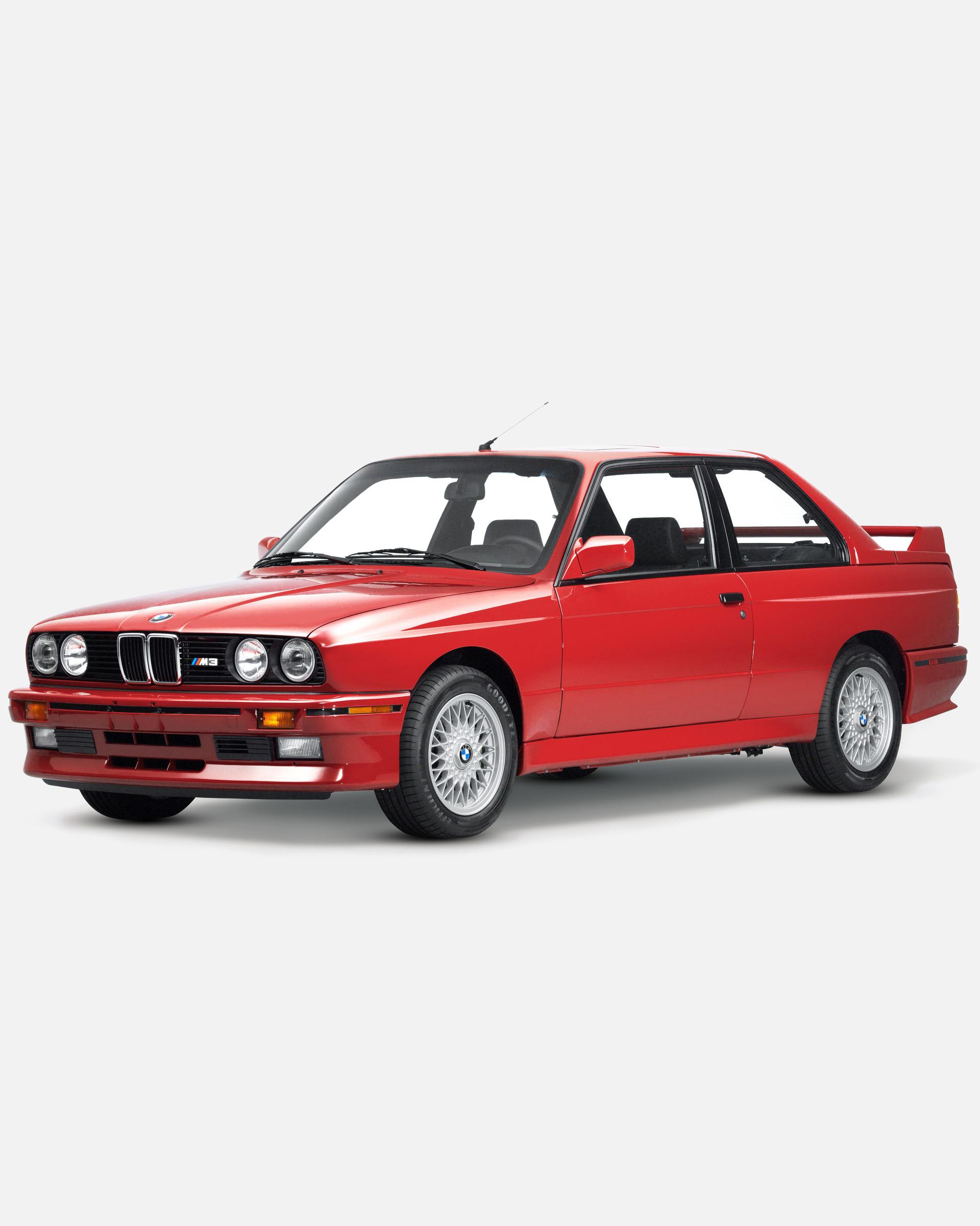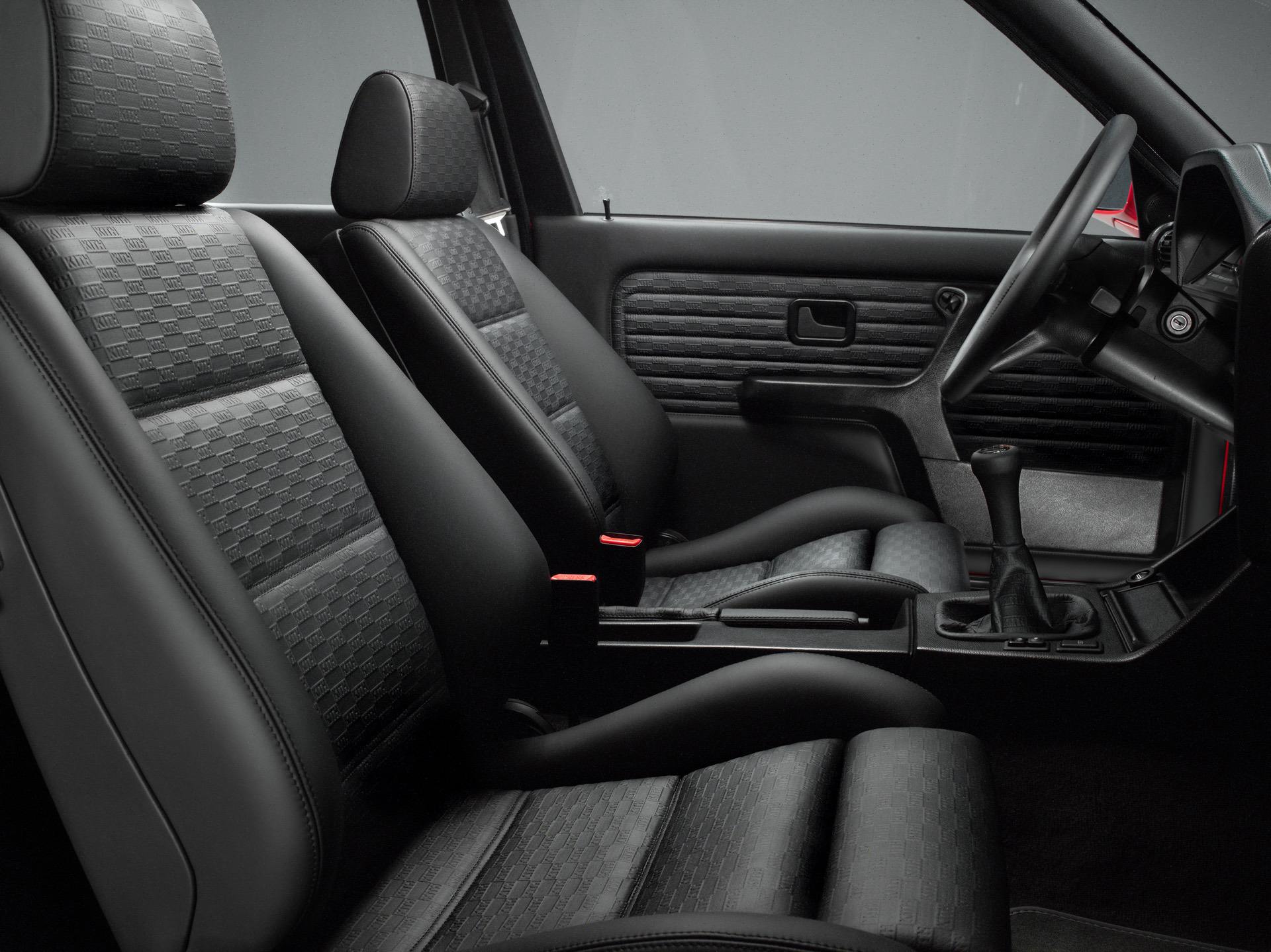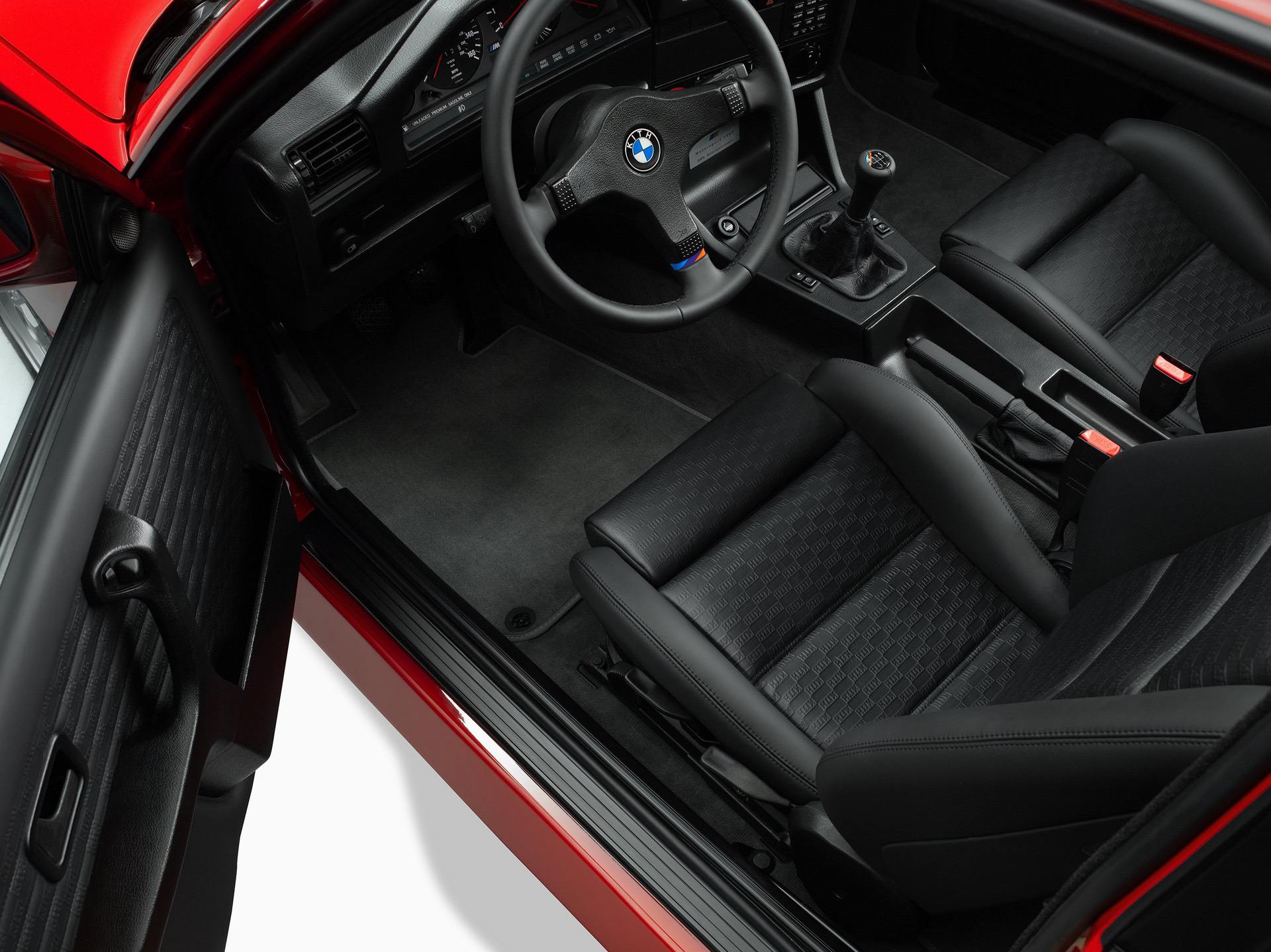 Fieg’s E30 BMW M3 is painted in Cinnabar Red, the most iconic of E30 M3 colors, and features a black leather interior. No mechanical changes have been made to it, so it still uses the same 2.3 liter inline-four as the original, with 192 horsepower and a five-speed manual.