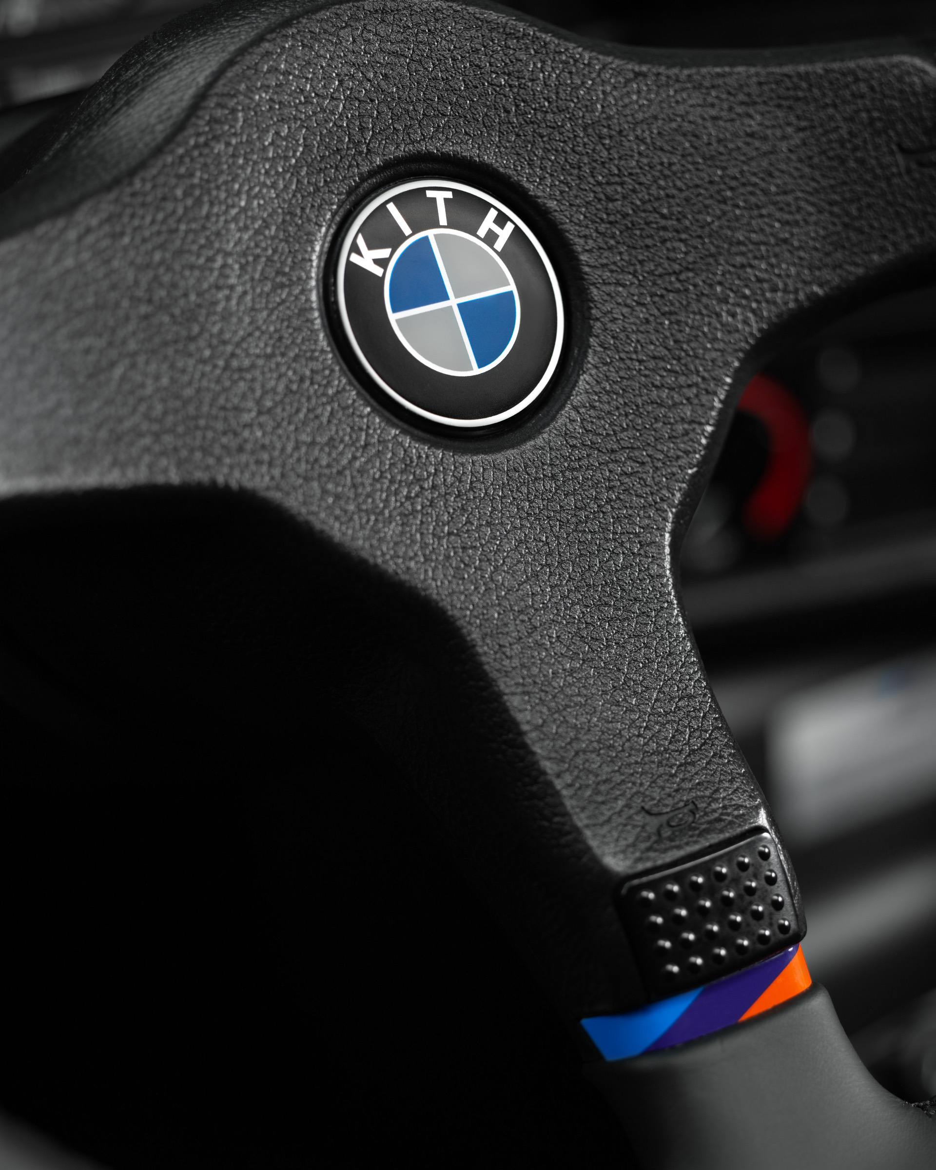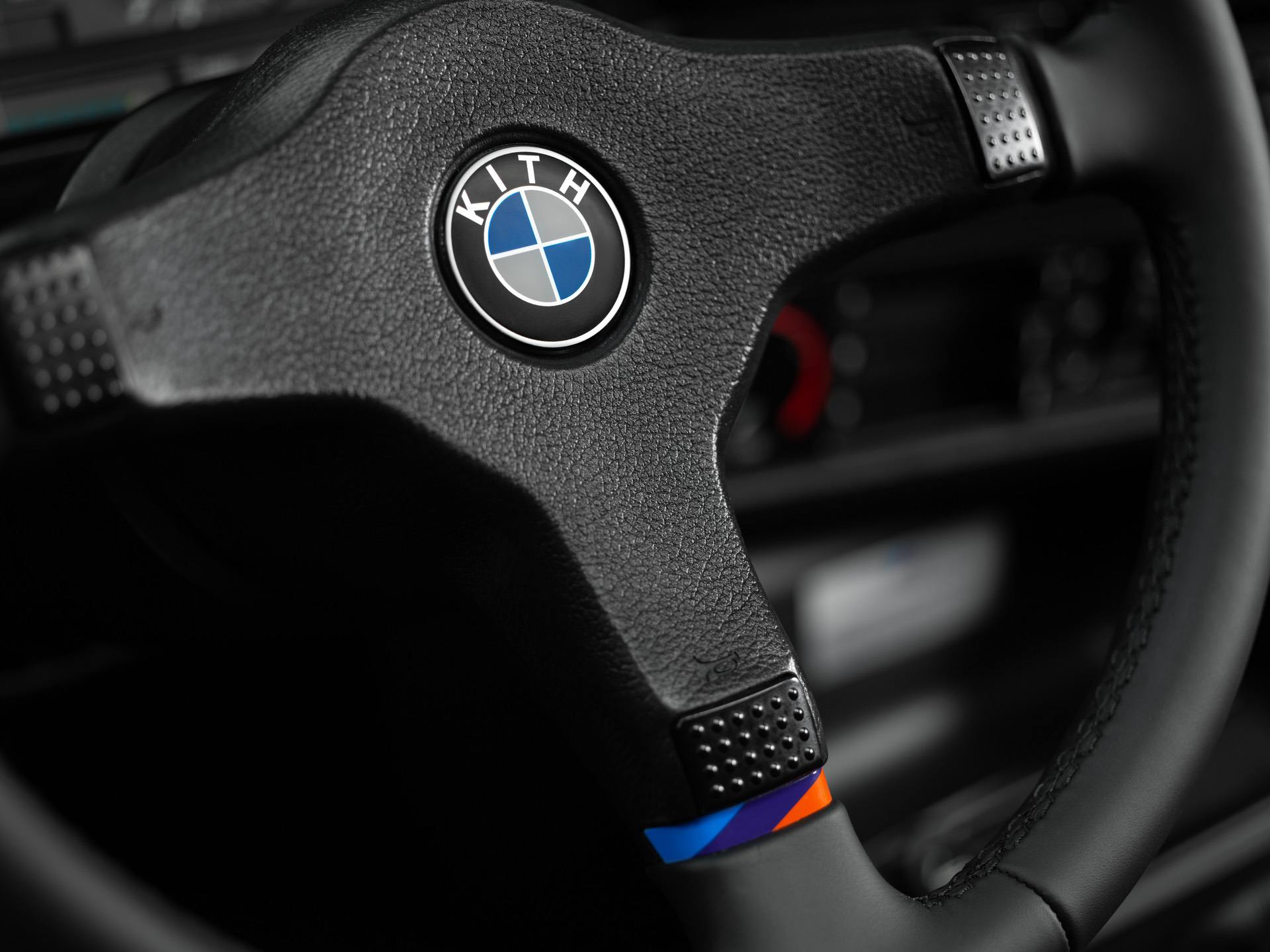 The Kith treatment was done to both the inside and outside of the E30 M3 but it’s all quite subtle. On the inside, it has embossed “Kith” logos in the seat inserts both front and back, head rests, the center arm rest and door panels. On the outside, it gets Kith-inspired BMW Roundels on the hood, trunk, wheels and steering wheel and a BMW M-inspired “Kith” logo on the trunk lid. From a distance, you’d never know that it was anything other than a perfectly restored E30 M3. It’s only upon closer inspection that you see it’s been given some unique styling touches.