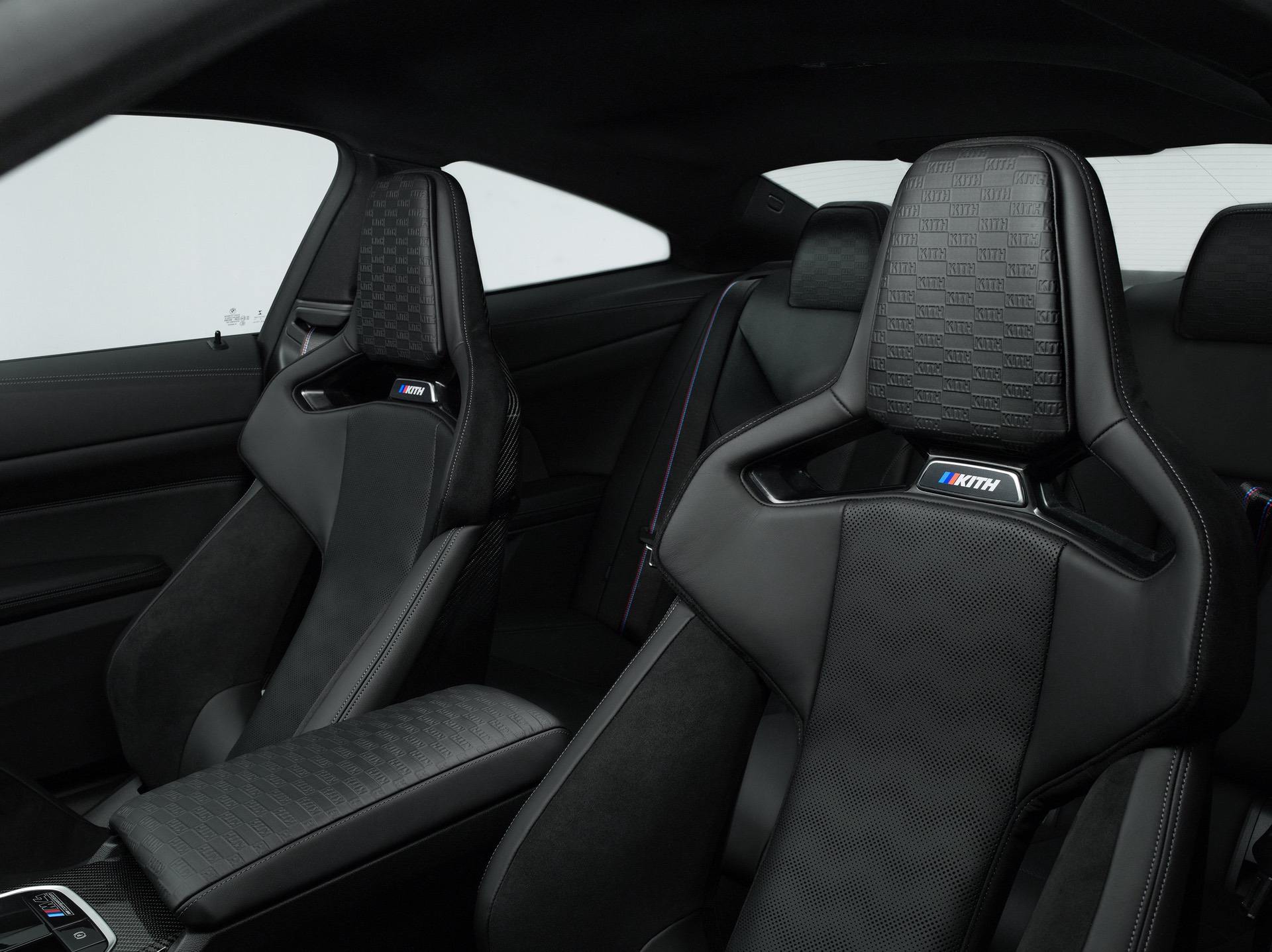 Fieg owns an E30 BMW M3 that’s received a full restoration from BMW Classic and been given a bit of a Kith treatment. So it has Kith logos embossed in the leather, on the door panels and even Kith-inspired BMW Roundels on both the hood and the trunk. There’s also a unique BMW M-inspired “Kith” logo on the back. Now, the new collaboration between Kith and BMW has been unveiled, showing off a new M4 that’s been given the same treatment.