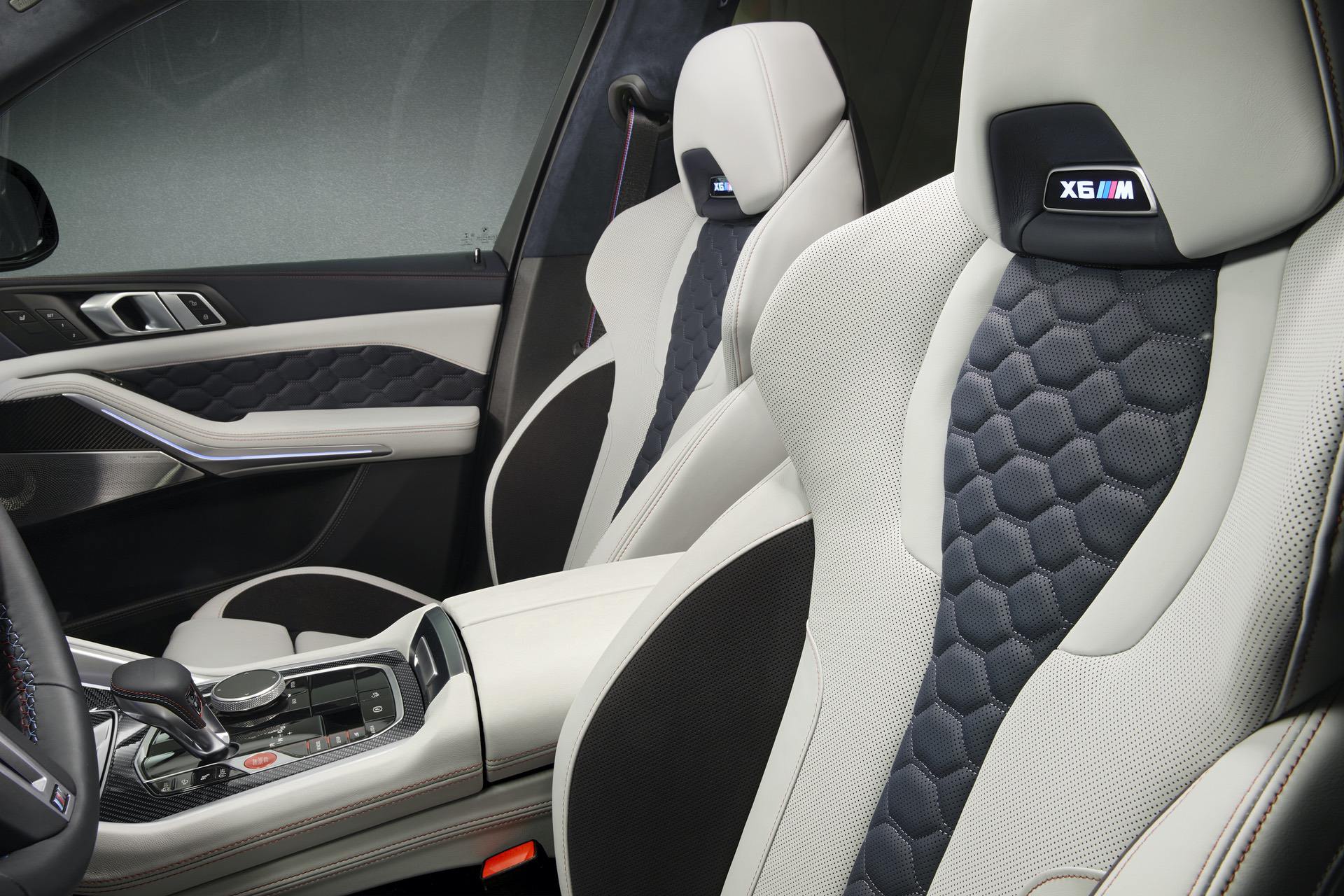 The high-quality paint finishes team up with M light-alloy wheels in star-spoke design with a Jet Black, high-gloss finish available exclusively for the special-edition models. The wheels (front: 21-inch, rear: 22-inch) are fitted with mixed-size tires. The exterior styling also includes selected body elements made from carbon-fibre-reinforced plastic (CFRP). Like the M Carbon exterior mirror caps for the two special-edition models, the M Carbon rear spoiler for the new BMW X6 M Competition prepares the car for the race track. An M Carbon engine compartment cover is likewise part of First Edition specification.
