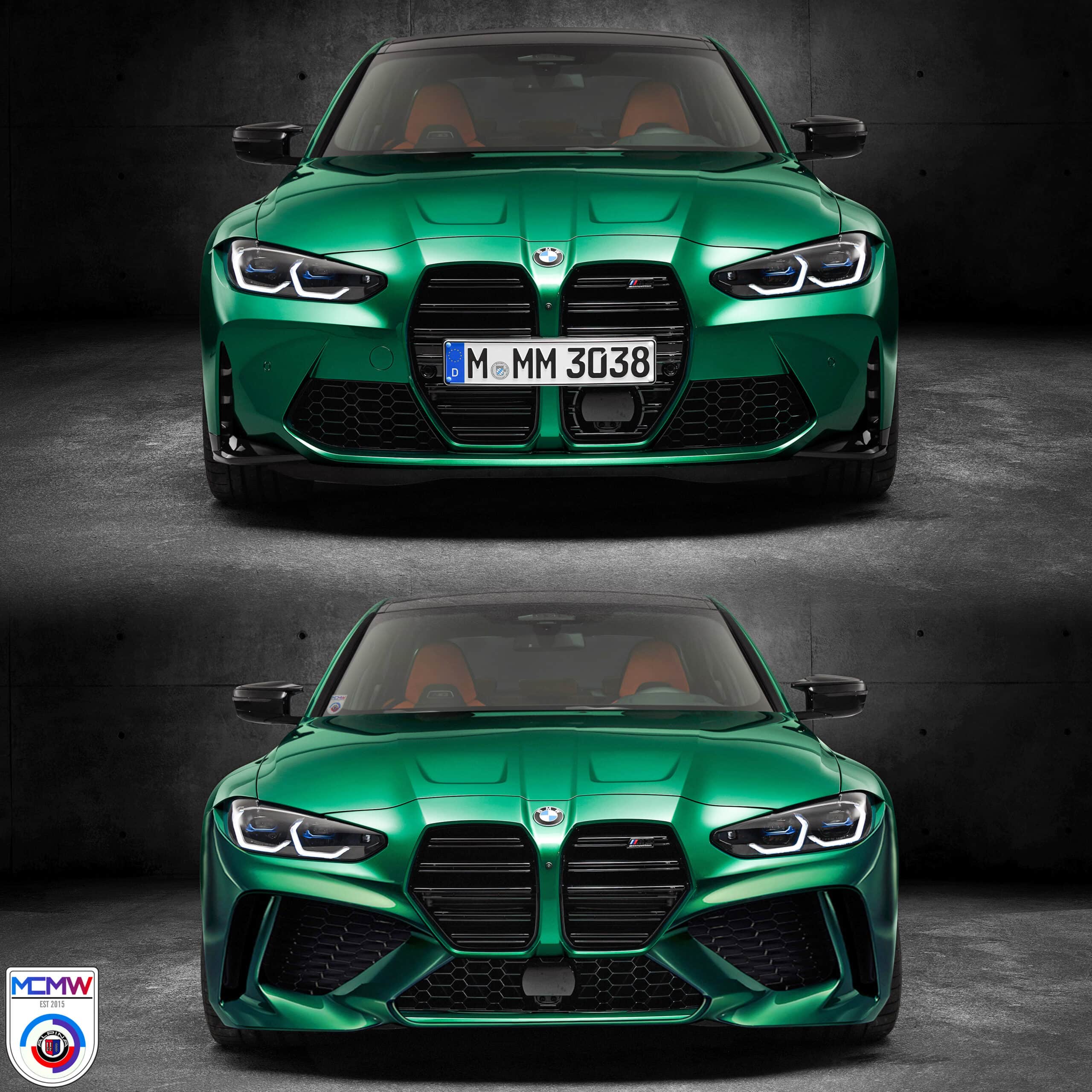 However, it’s still the shorter nature of the grilles that make them better in this render. Reason being is that the stock M4’s massively tall kidney grilles give it a very upright, almost truck-ish look at the front. That isn’t sporty. A sports car is supposed to have a nose that plunges down toward the road at the front. Think Jaguar F-Type. With the BMW M4, its grilles are so flat and upright that the entire front end looks like a brick, which makes it seem less athletic.