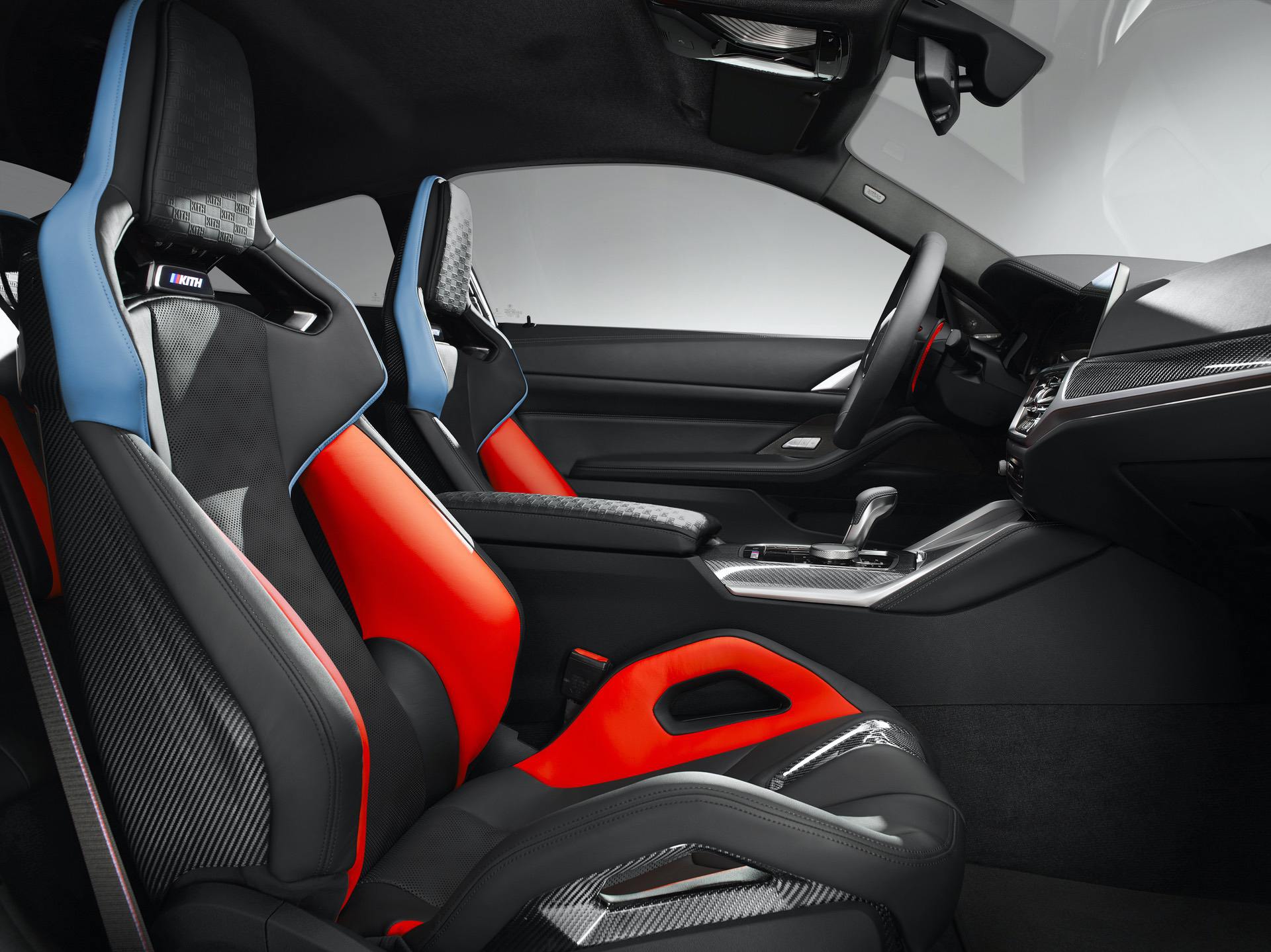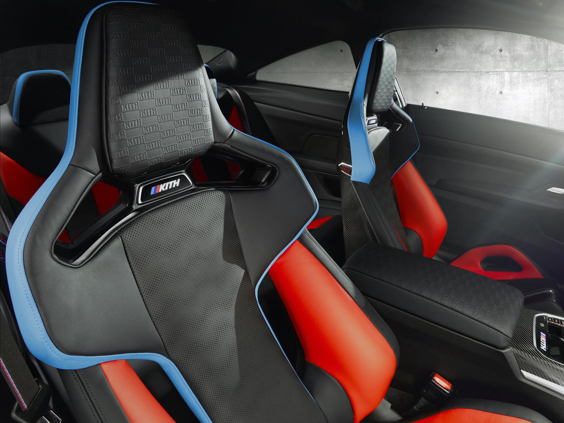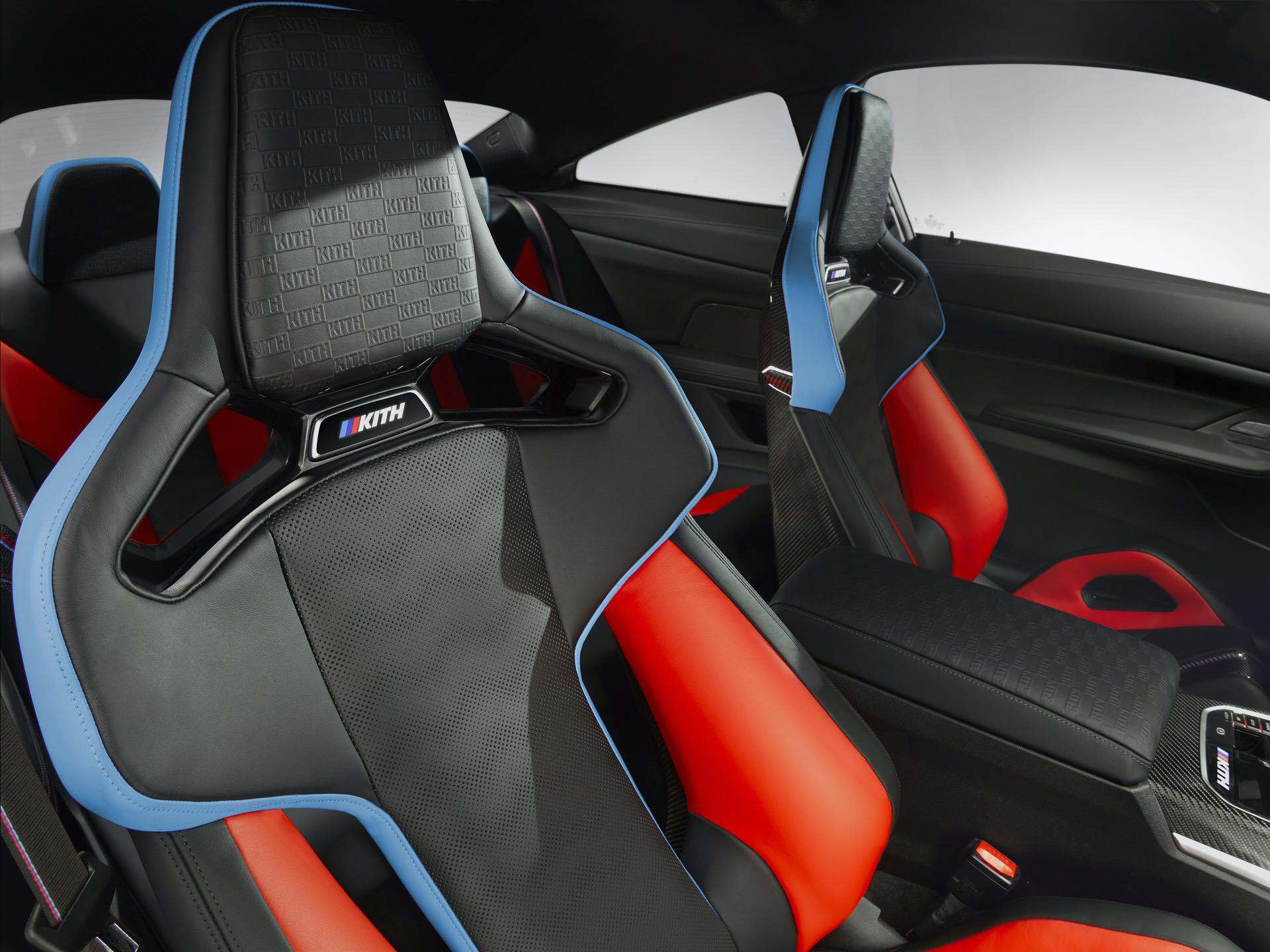 Inside, black Competition seats with blue and red accents dominate the cabin. Those seats also feature “Kith” embossing in the headrests. The same embossing can also be found on the center arm rest and the M-colored “Kith” logo is seen on the center console, under the gear lever.