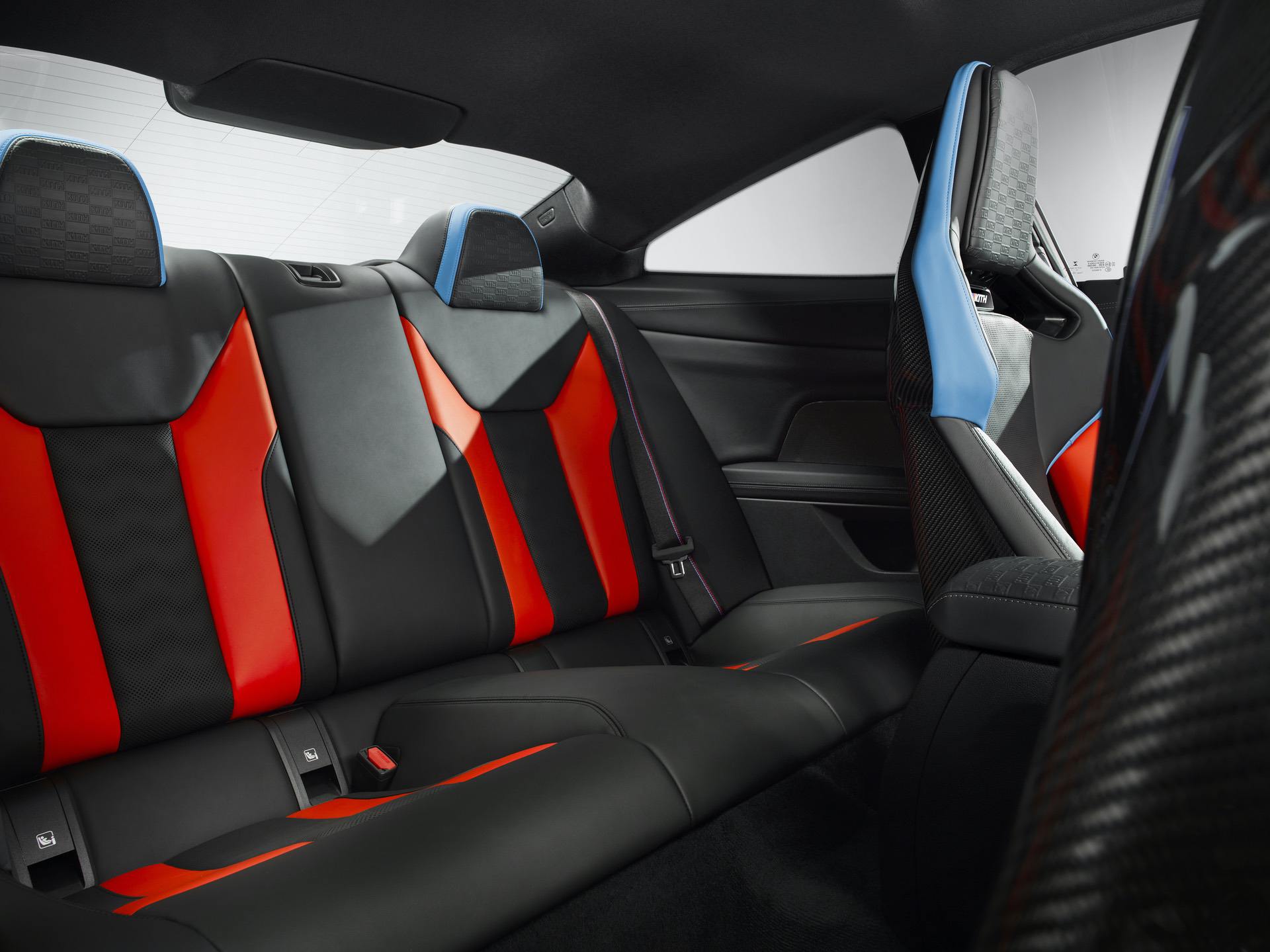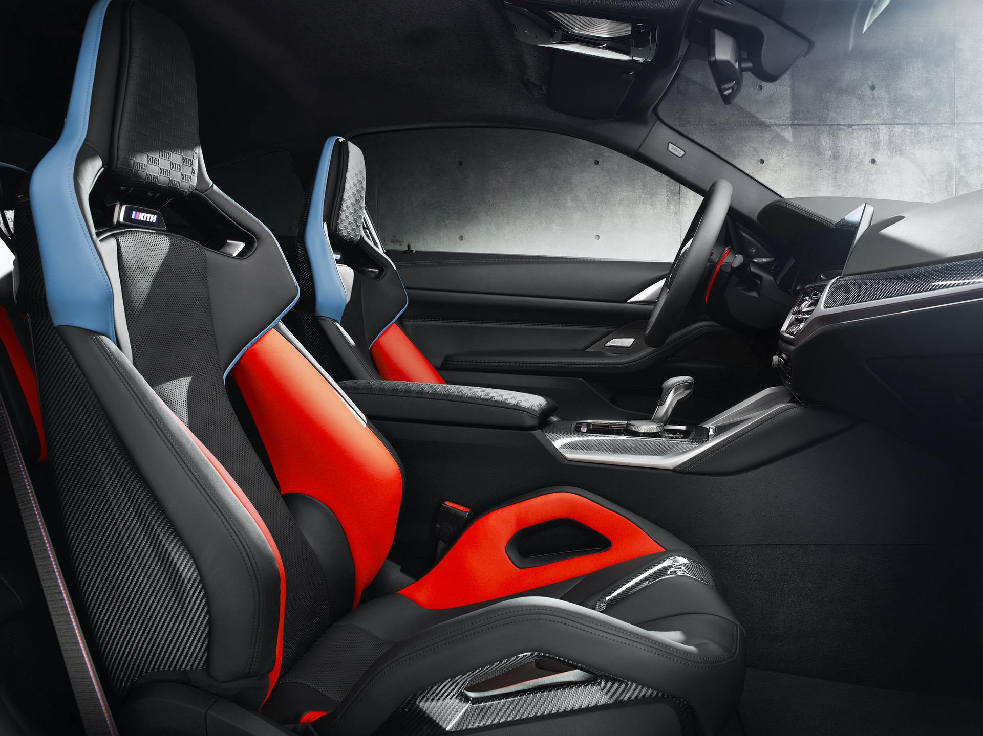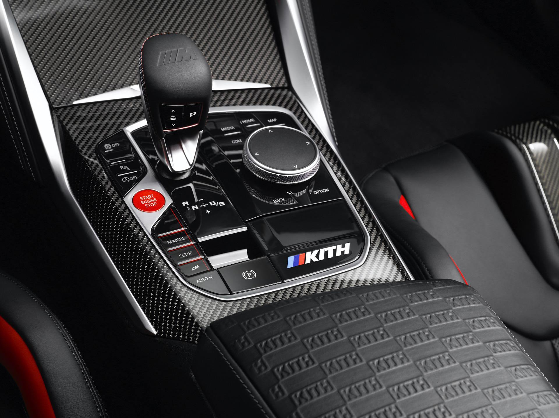 Inside, black Competition seats with blue and red accents dominate the cabin. Those seats also feature “Kith” embossing in the headrests. The same embossing can also be found on the center arm rest and the M-colored “Kith” logo is seen on the center console, under the gear lever.
