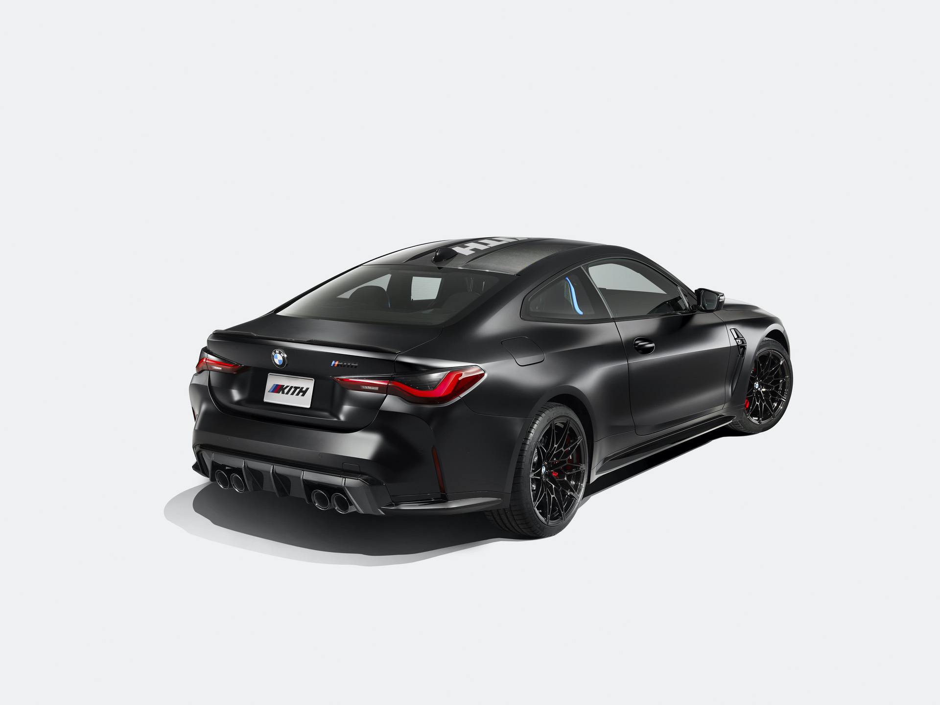 While the BMW M4 Competition x Kith is inspired by Fieg’s one-off M4 and E30 M3, it does have some differences. For instance, the Roundel on the hood is unique, featuring an additional ring on the outside of the Roundel, colored in BMW M’s classic blue and red, with “Kith” lettering. This is an interesting touch because BMW has never modified its Roundel to accommodate another brand before but modifying logos is Kith’s specialty. Out back, replacing the “M4” logo is an M Division-inspired “Kith” logo, which features the classic M stripes.