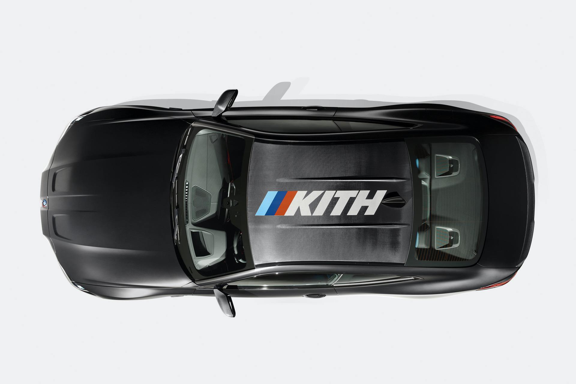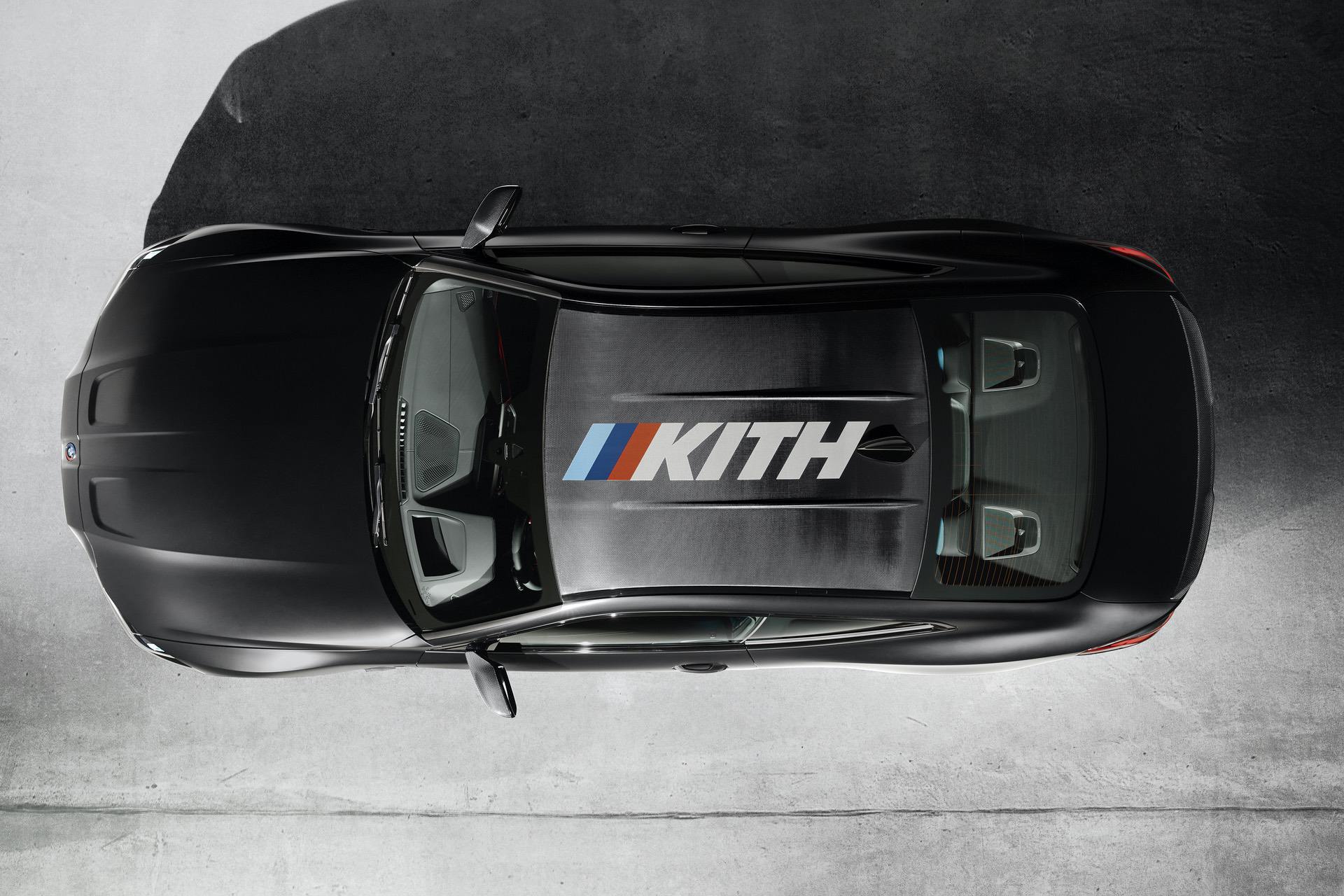 Only three color options are available and they’re all frozen paint colors: Frozen Black, Frozen Brilliant White and Frozen Dark Silver. There’s an optional carbon fiber roof with a massive “Kith” logo, again with M-colored stripes, in case you’d like to showcase your special edition car to astronauts.