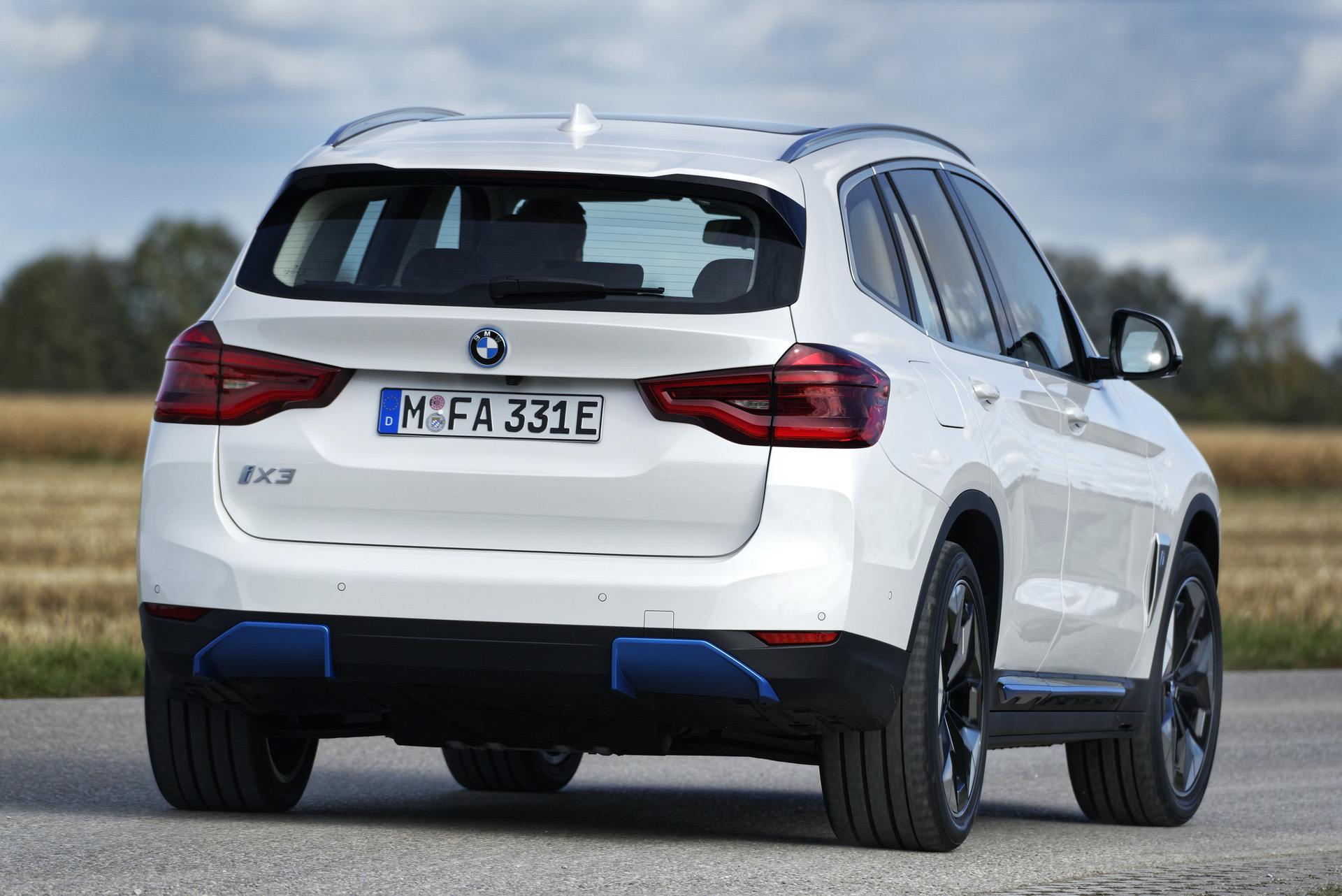 Since the conventional ventilation flaps are no longer needed for an electric motor, the iX3 now features a closed kidney in a new, typical mesh design with BMW i blue accents at the bottom. At the rear, the iX3 has special blue panels on the left and right side of the diffuser, and, of course, the model-specific iX3 badge on the left side below the rear light.