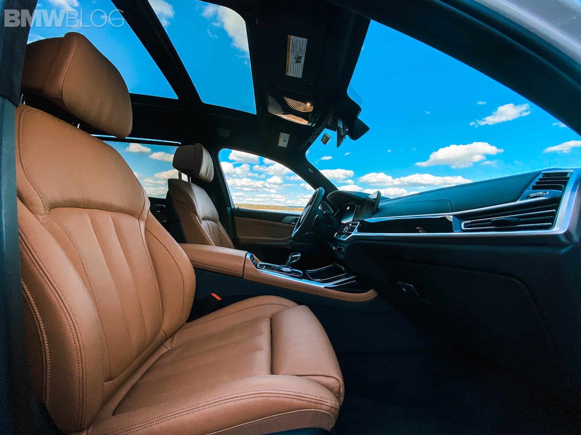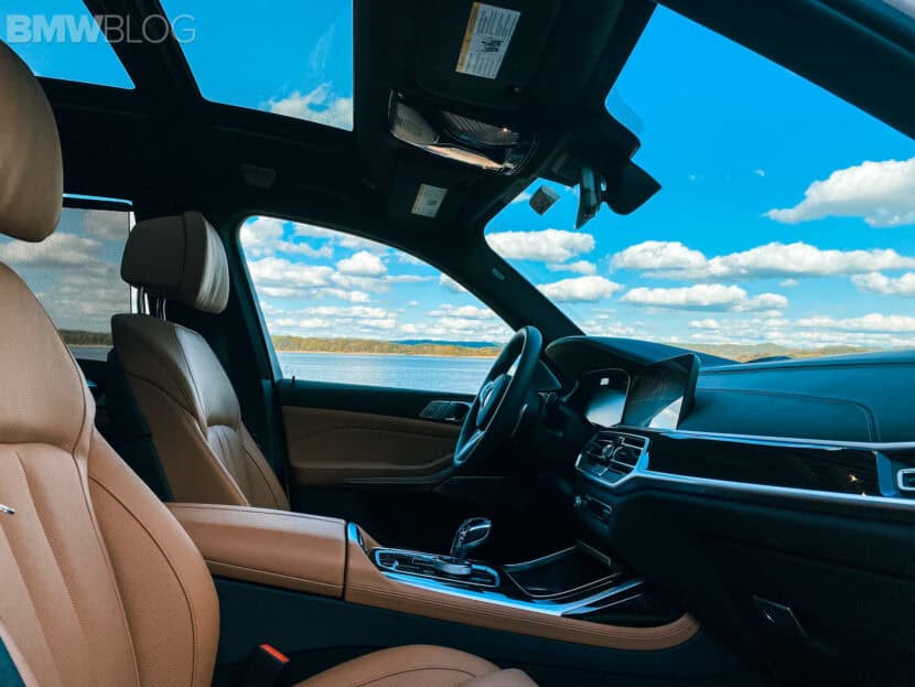 While I personally get excited about the driving experience, my family was more impressed by the refined and luxurious interior of the X7. It had the soft and perforated Vernasca leather in cognac with perfect double stitching. There was also the Glass Application Package which brings some beautiful crystals around the gear shifter and iDrive knob. The dashboard was also dressed up in leather with some beautiful contrasting wood. But the icing on the cake for them was the large Panoramic Sky Lounge LED MoonRoof which spans front to back, and makes for a serene interior, night and day.
