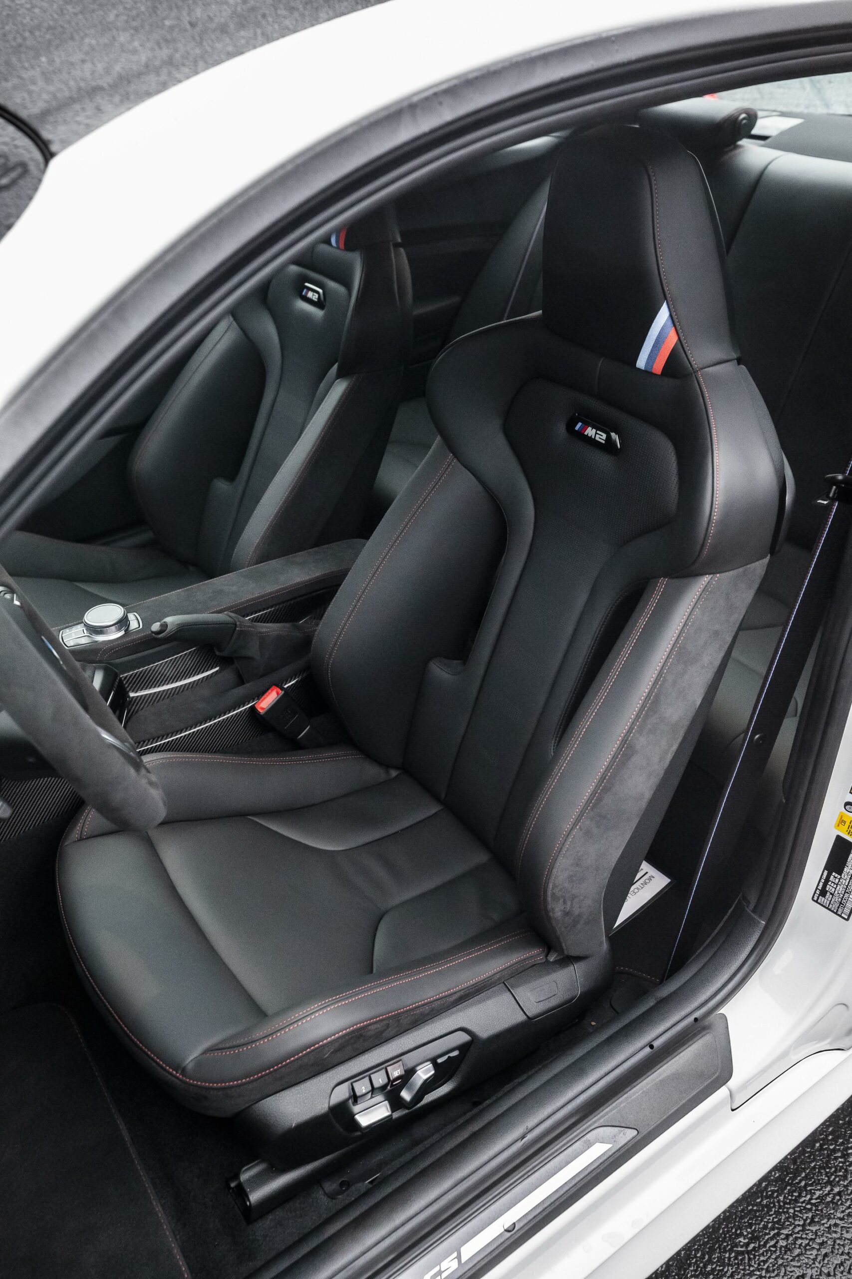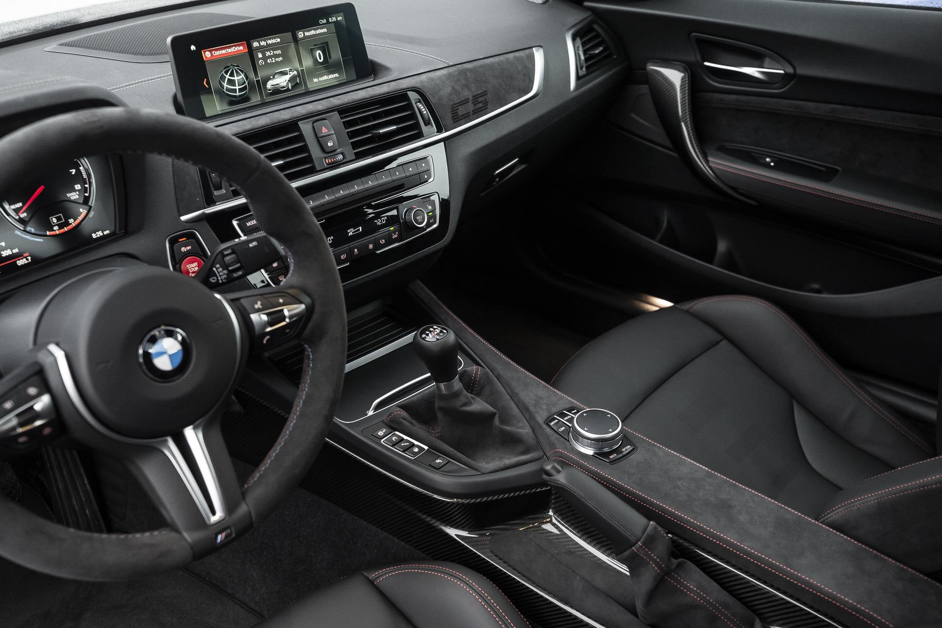 BMW brought out two M2 CS models: one painted in the Misano Blue launch color, while the other was an Alpine White model with a manual transmission and gold wheels. With the new model, which is based around the success of the M2 Competition and the M2 Coupe, customers will only be able to choose from a small range of options and four basic colors: Alpine White, Sapphire Black, Misano Blue and Hockenheim Silver. There is only interior option in black.