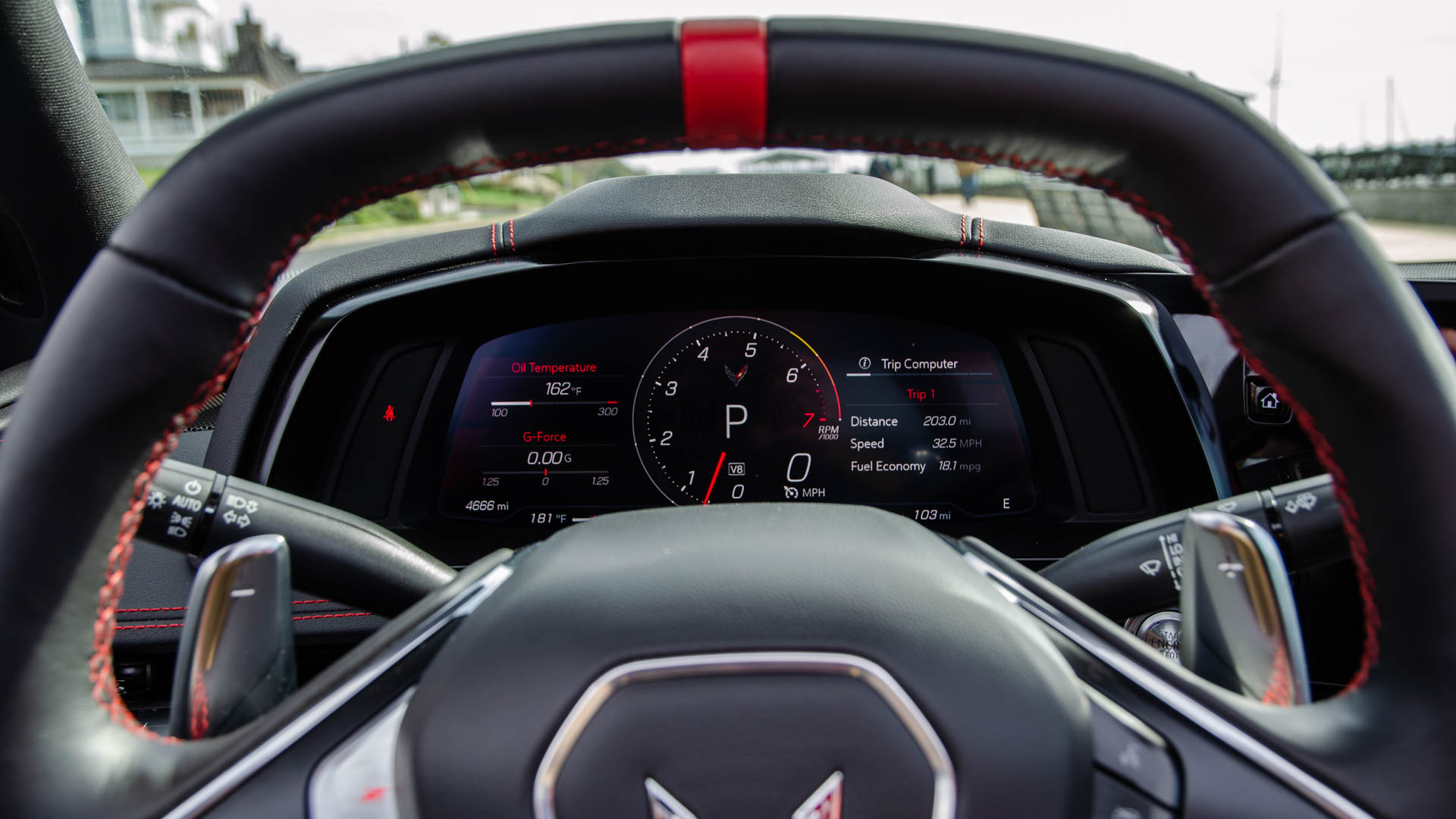 Paired to that mighty V8 is an all-new eight-speed dual-clutch transaxle gearbox and it’s one of the better dual-clutches I’ve ever used. It’s not quite as good as the R8’s but it’s 90-percent there. Upshifts are as snappy as they are in the best of gearboxes and they’re met with a kick in the back in sportier settings, which is welcome in a car like a ‘Vette. Downshifts are mostly good but it can get confused at lower speeds. Still, it’s mostly brilliant. Also, using the big aluminum paddles is always a treat.