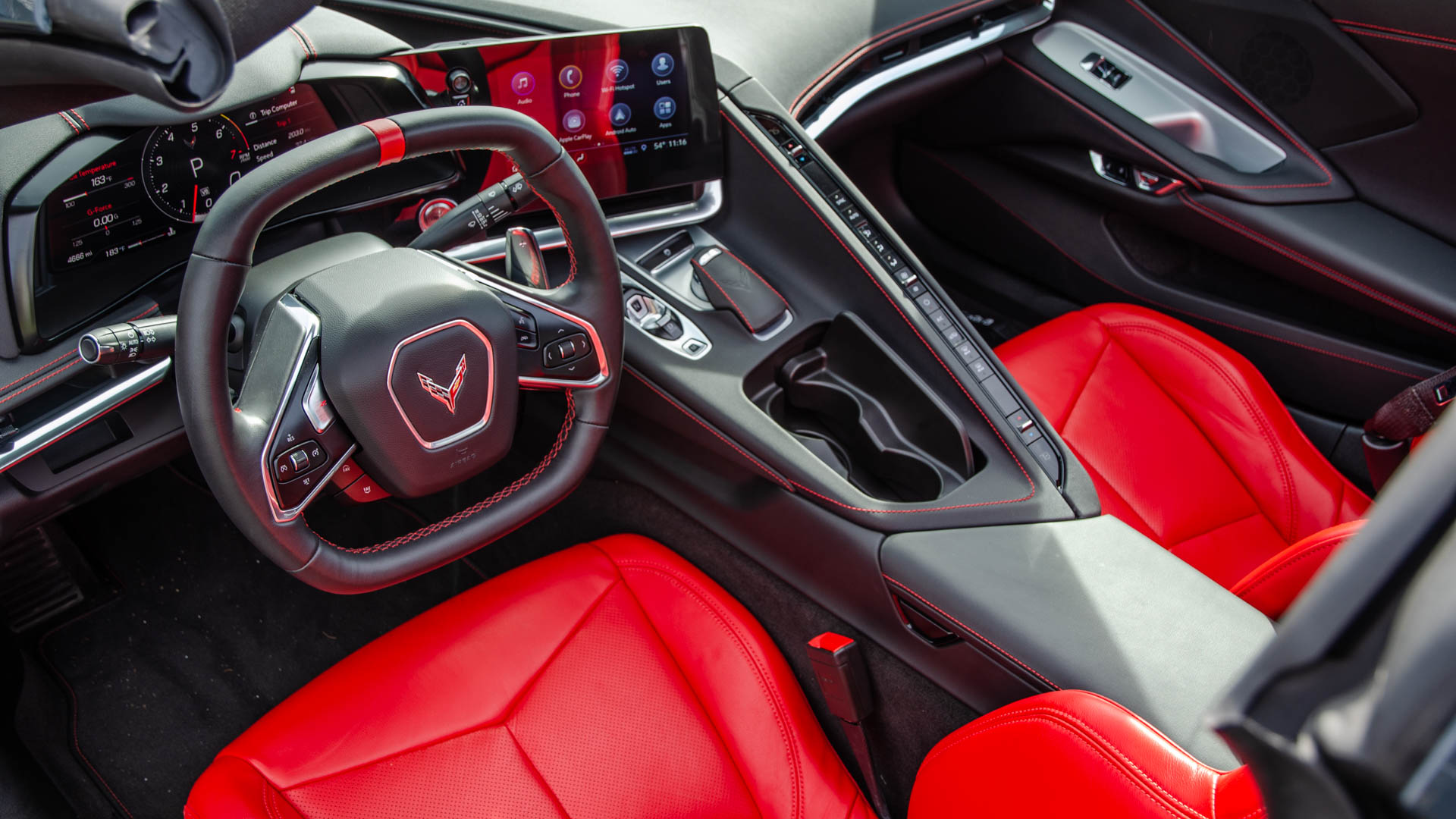 One almost constant complaint about Corvettes over the years has been about their interiors. You could always tell that 90 percent of the budget for the Corvette went into the engine because the interior always felt like a rental car’s. Cheap plastics, flat seats and boring designs have plagued Corvettes for decades. Not so with this one, though.