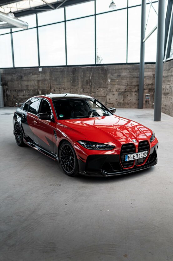 First, we see the BMW M3 with its new M Performance Parts and the black and red livery BMW used to debut these parts. The car comes with a new lower front lip, side skirts, a big fixed wing and an entirely new rear bumper, complete with a new diffuser and quad exhausts in a completely different configuration than the stock car’s. Ultimately, whether or not you like it depends on how you feel about the new M3. If you think the new M3 is already too brash, you’re going to hate this. If you like how bold the M3 has gotten, you’ll love it.