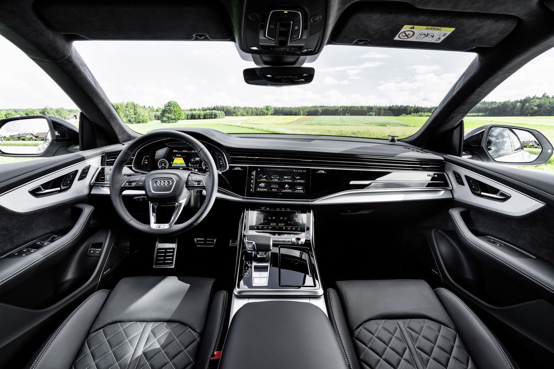 On the handling side of things, the Q8 comes with the same set up as its siblings in the range. Quattro permanent all-wheel drive system plus a center mechanic differential come as standard. The power split is 40 percent of the torque to the front and 60 percent to the rear during normal driving. You will have max 85 percent to the front axle and up to 70 percent to the rear axle. The Audi Drive Select system has seven driving profiles: comfort, efficiency, auto, dynamic, individual, off road and all road, and offers you the option to pilot the 2.5-tonne hybrid during your journey.