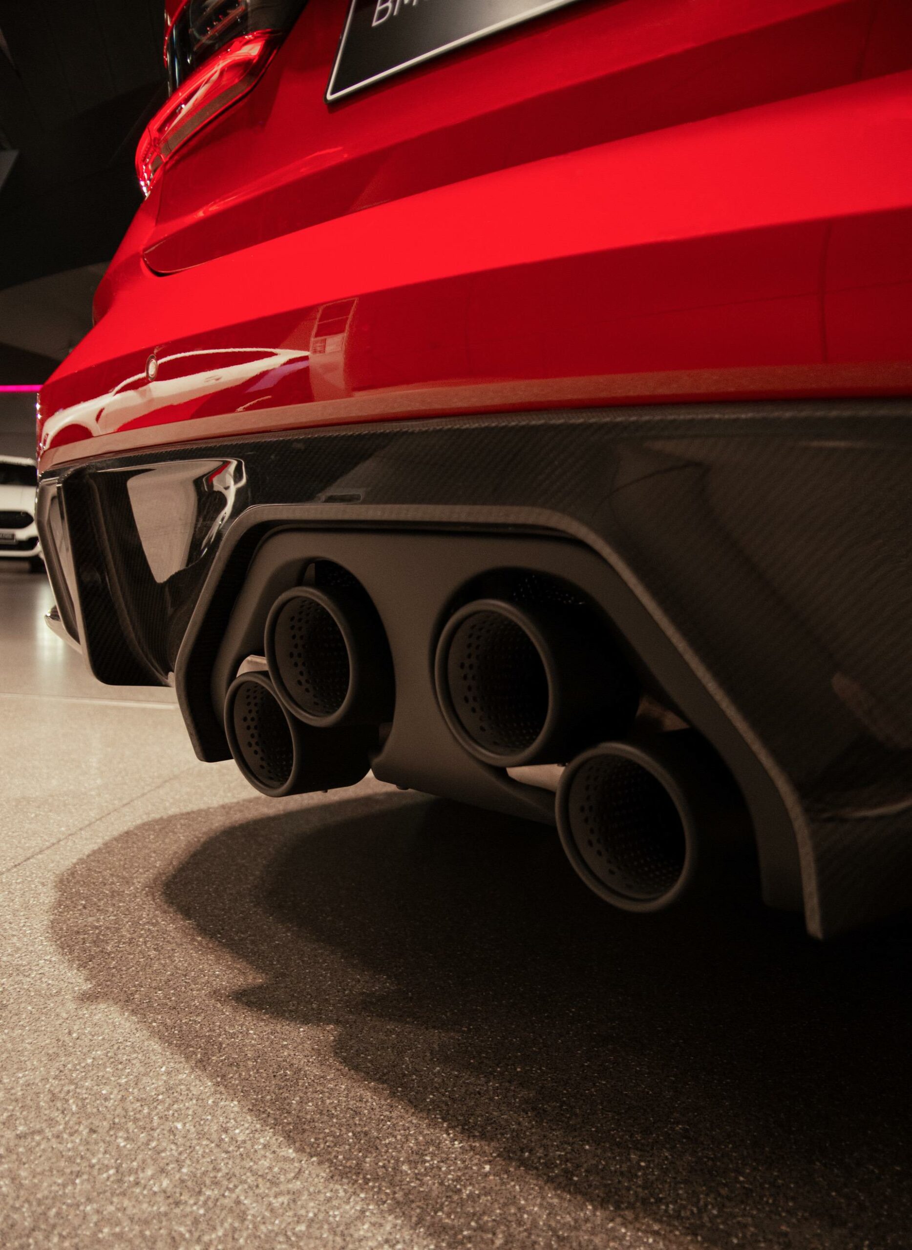 From the massive rear wing to the aggressive front fascia and especially to the trapezium-shaped pipes of the aftermarket exhaust system, these new parts certainly stand out. On top of this, BMW gave the launch car a two-tone red and black paint job which just adds even more flavor. The exclusive photos give you a closer look at the car, and especially, at some of its unique aero and performance parts. The most interesting piece is the new exhaust system.