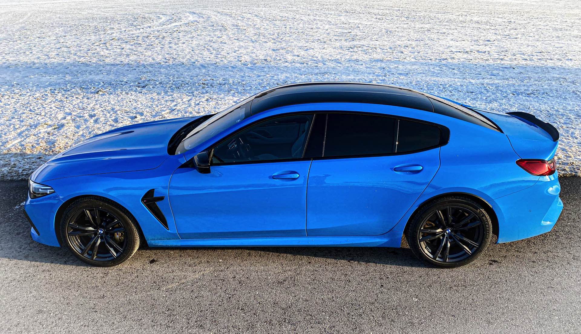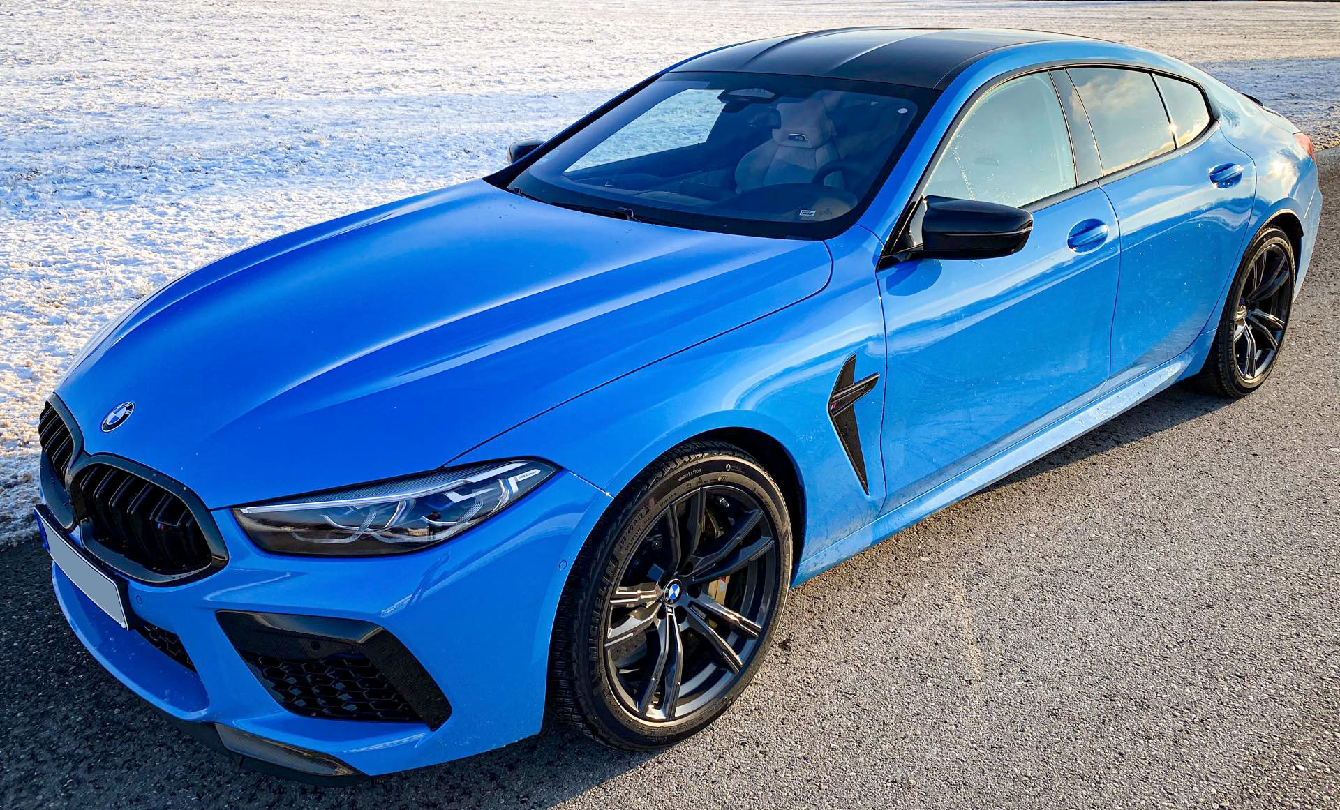 Apart from the individual paintwork, the BMW M8 Gran Coupe comes with all the standard features, sans the summer performance tires. In contrast with the U.S., winter tires are mandatory in Germany. Inside, Tomczyk picked the full-grain Merino fine-grain leather in Silverstone and Black – a combination which works wonders with the blue exterior. Being the Competition model, this M8 Gran Coupe features black accents all around and a series of carbon fiber upgrades. The standard carbon roof, the carbon spoiler lip and the carbon diffuser elements around the four tailpipes of the exhaust system are painting a beautiful picture.