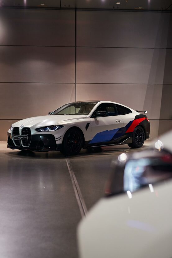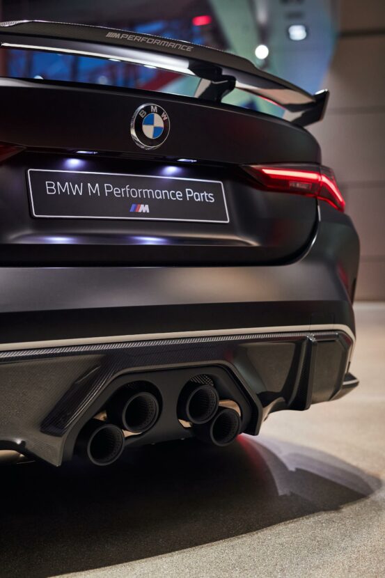 Exclusive from the iconic BMW Welt in Munich we bring you some new photos of the BMW M4 G82 with M Performance Parts. Only this time around, the new M4 Coupe features the equally iconic BMW Motorsport decals. BMW’s goal with the new aftermarket M Parts was to match the already aggressive – and controversial we might add – look of the new M3 and M4. From the massive rear wing to the aggressive front fascia and especially to the trapezium-shaped pipes of the aftermarket exhaust system, these new parts certainly stand out.