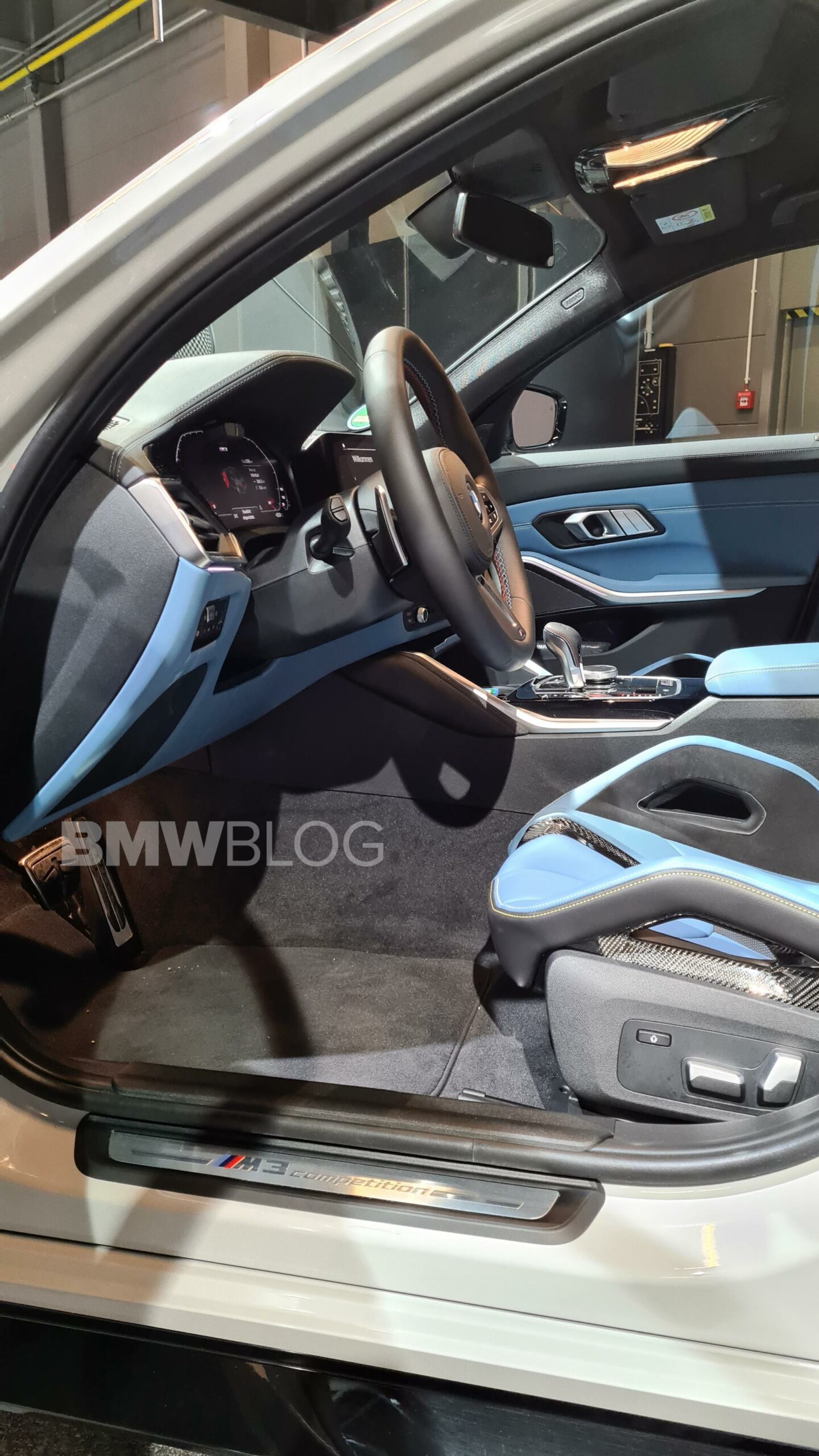 The G80 M3 was paired with black wheels and a Merino fine-grain full leather in Yas Marina Blue/Black with accents in Yellow. While the blue looks great, we would love to see a red-based interior paired with Chalk. Of course, customers with deep pockets might be able to customize their interior with the help of the BMW Individual catalog.