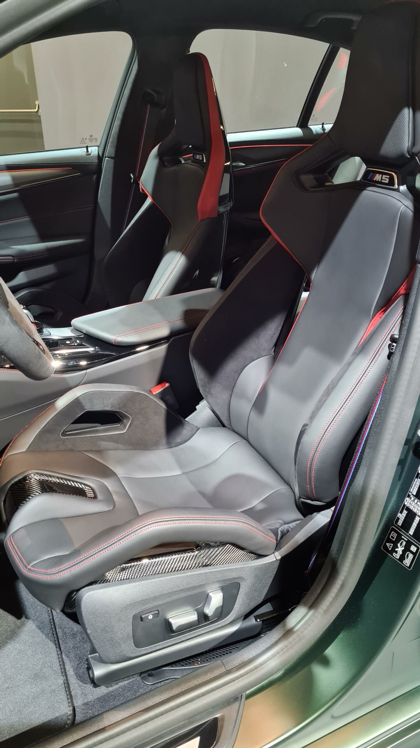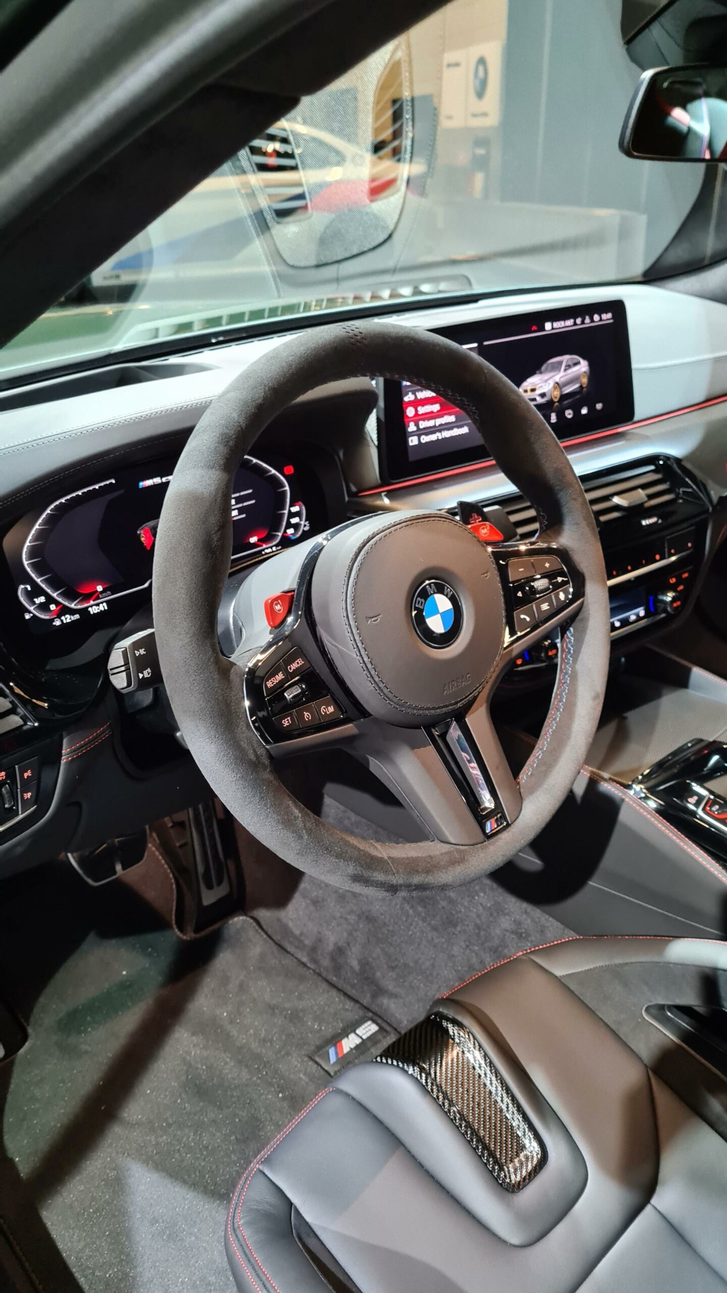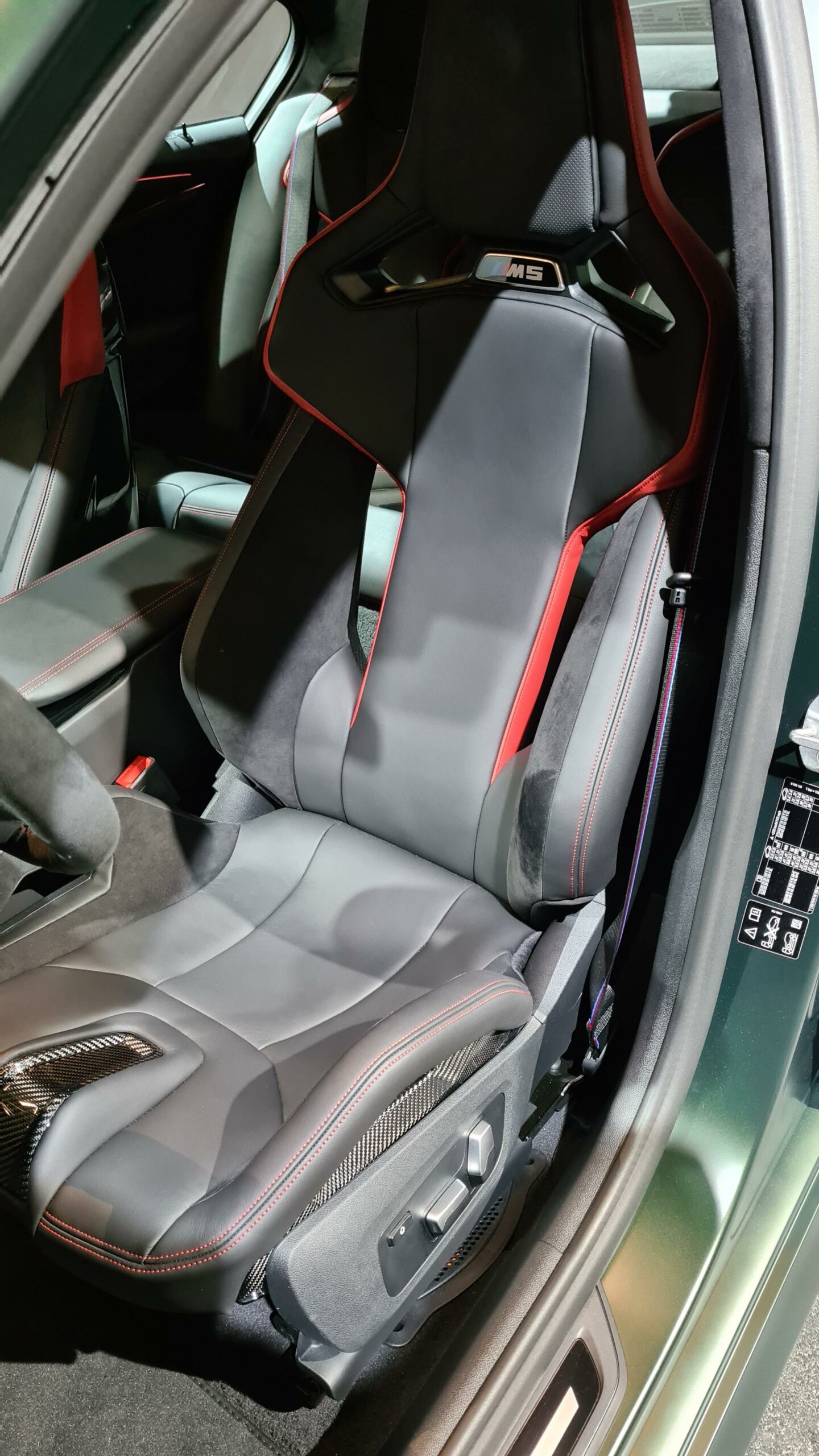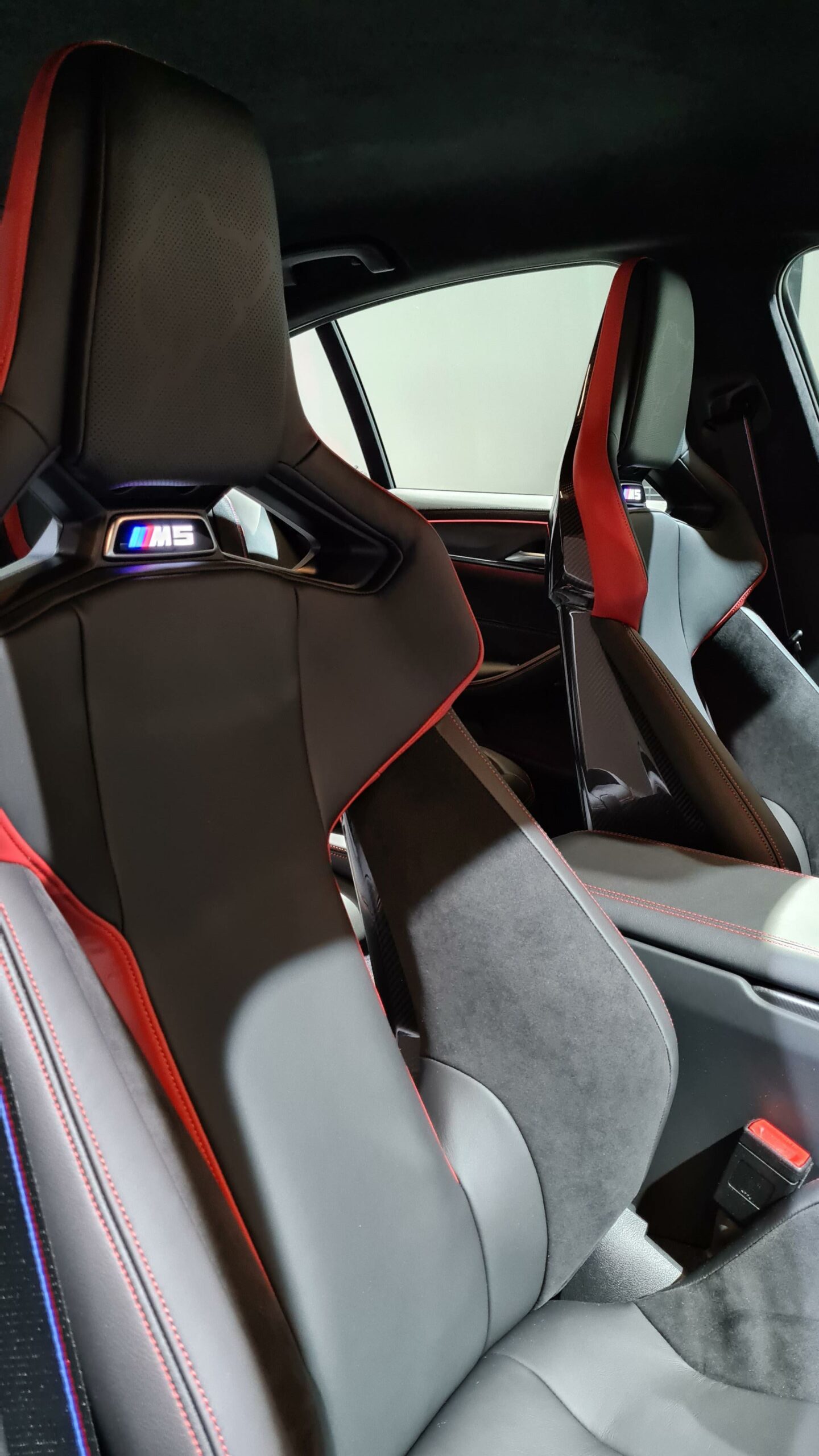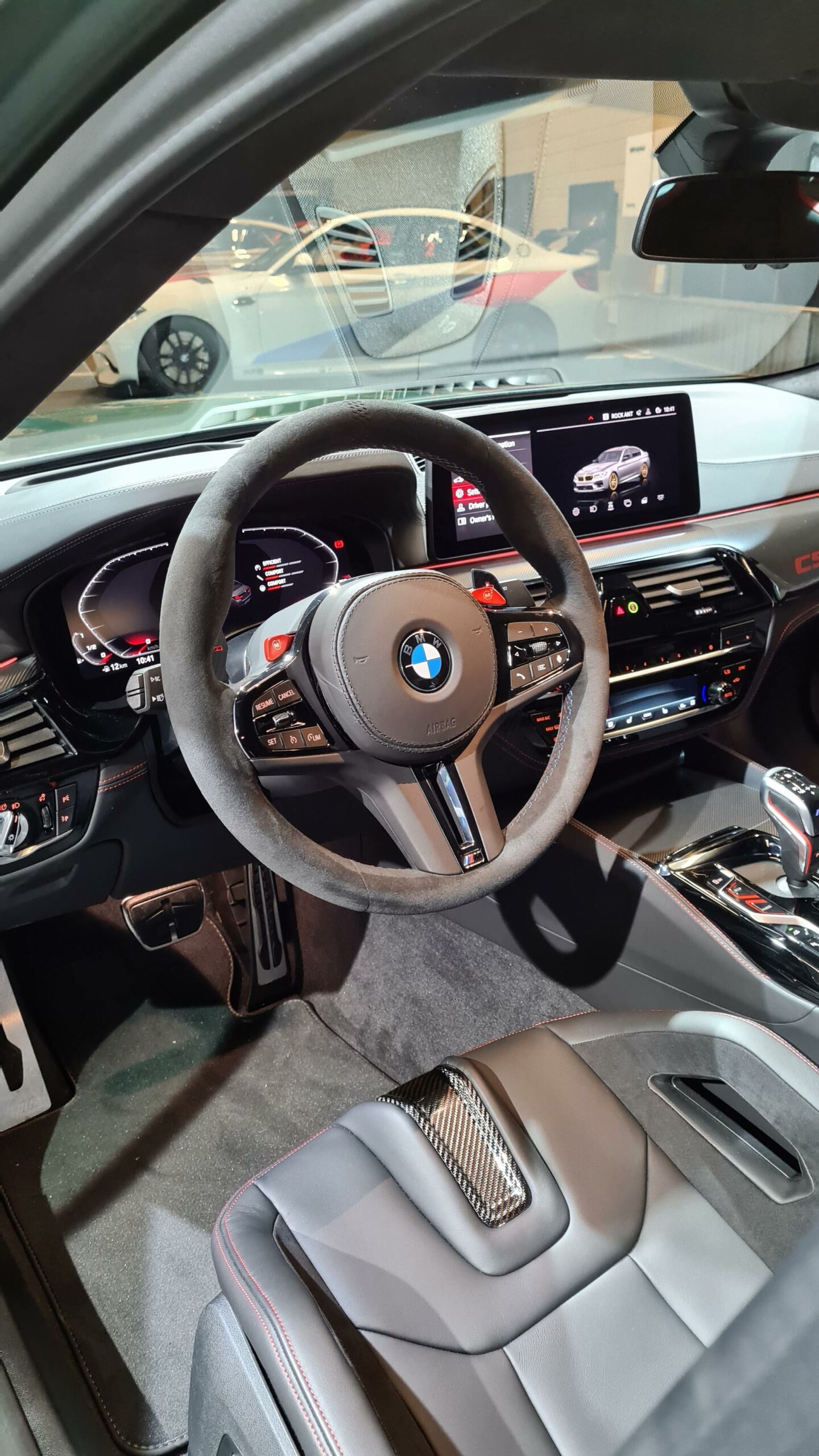 Inside, the cabin has been upgraded as well. The steering wheel is entirely Alcantara with a top-mounted stripe, just like the M2 CS’, the seats look absolutely fantastic and the back seat, with just its two racing buckets, is pure hooliganism. The seats even feature Nurburgring imprints in their headrests. In the back of the BMW M5 CS, you’ll notice just two lightweight bucket seats, like a track-ready Aston Martin Rapide. The rear seats are similar buckets as the fronts, just wedged into the rear bulkhead.