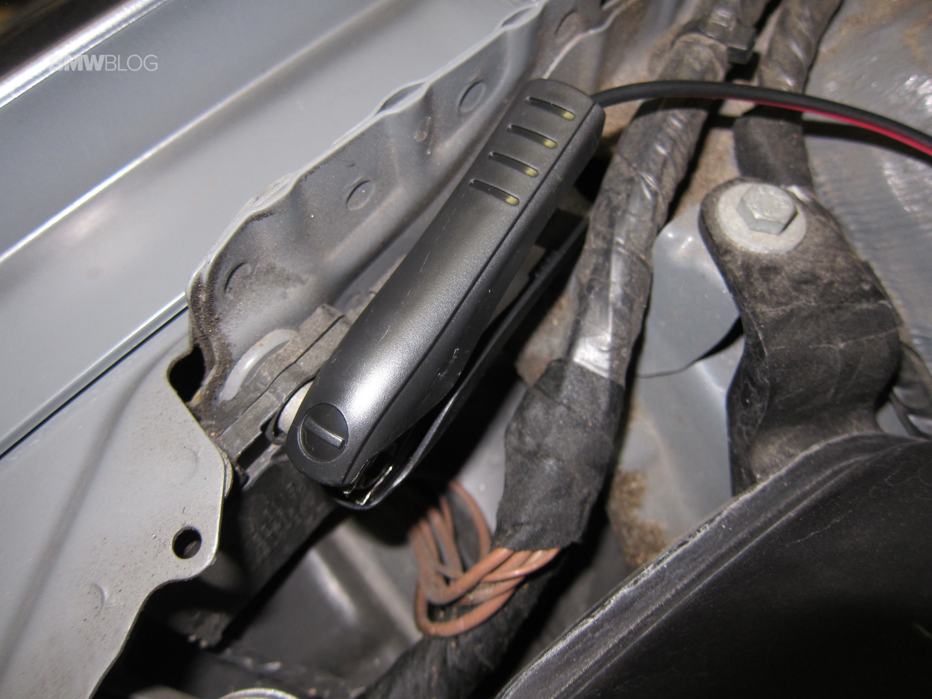Connect the red clip to the red power terminal and the black to the ground. One can either connect the battery charger by directly accessing the BMW’s battery through the trunk or via the engine compartment on the red power terminal and the ground.