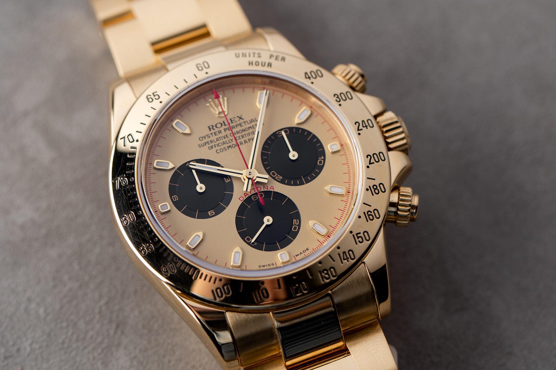 After the success of the ref. 4500 with racing drivers, Rolex made the Daytona with them specifically in mind. It was designed as a chronograph for racing drivers and enthusiasts and its name was even motorsport-inspired, being named after the iconic Daytona International Speedway. The name was actually originally going to be the Rolex Le Mans but the brand’s desire to sell more pieces to Americans pushed the brand to use Daytona instead. Although, the name technically wasn’t given until 1964, though the ’63 is still considered by many to be a Daytona, as it began the reference number.