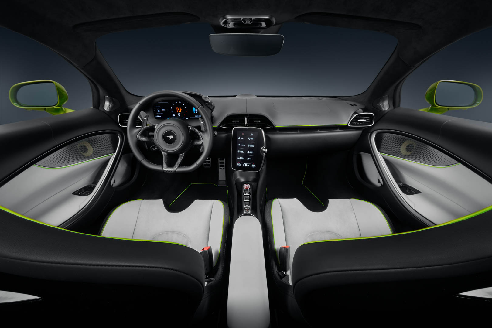 Speaking of hybrids, the Artura is also a plug-in hybrid, like the i8. There are some differences, such as the fact that the McLaren is only rear-wheel drive (the brand is stubbornly sticking to rear-wheel drive and we’re here for it) and it uses a V6, rather than the i8’s three-pot. Replacing the old McLaren 3.8 liter twin-turbo V8 is an all-new 3.0 liter twin-turbo V6 that revs to a seriously impressive 8,500 rpm. Combined, the engine and electric motor make 680 horsepower (671 bhp), all of which is sent through an all-new eight-speed dual-clutch gearbox to just the rear wheels. McLaren also finally uses an electronically controlled rear diff.