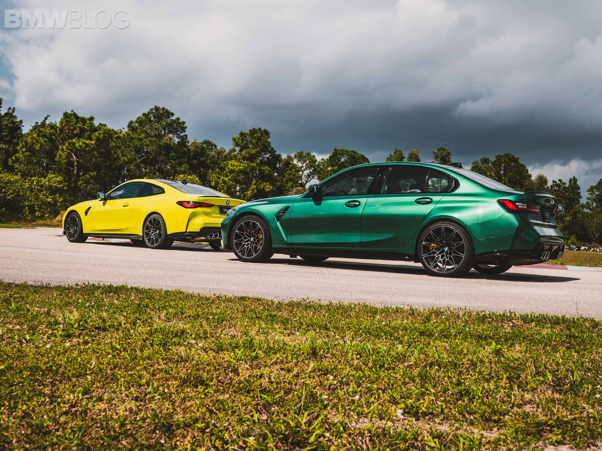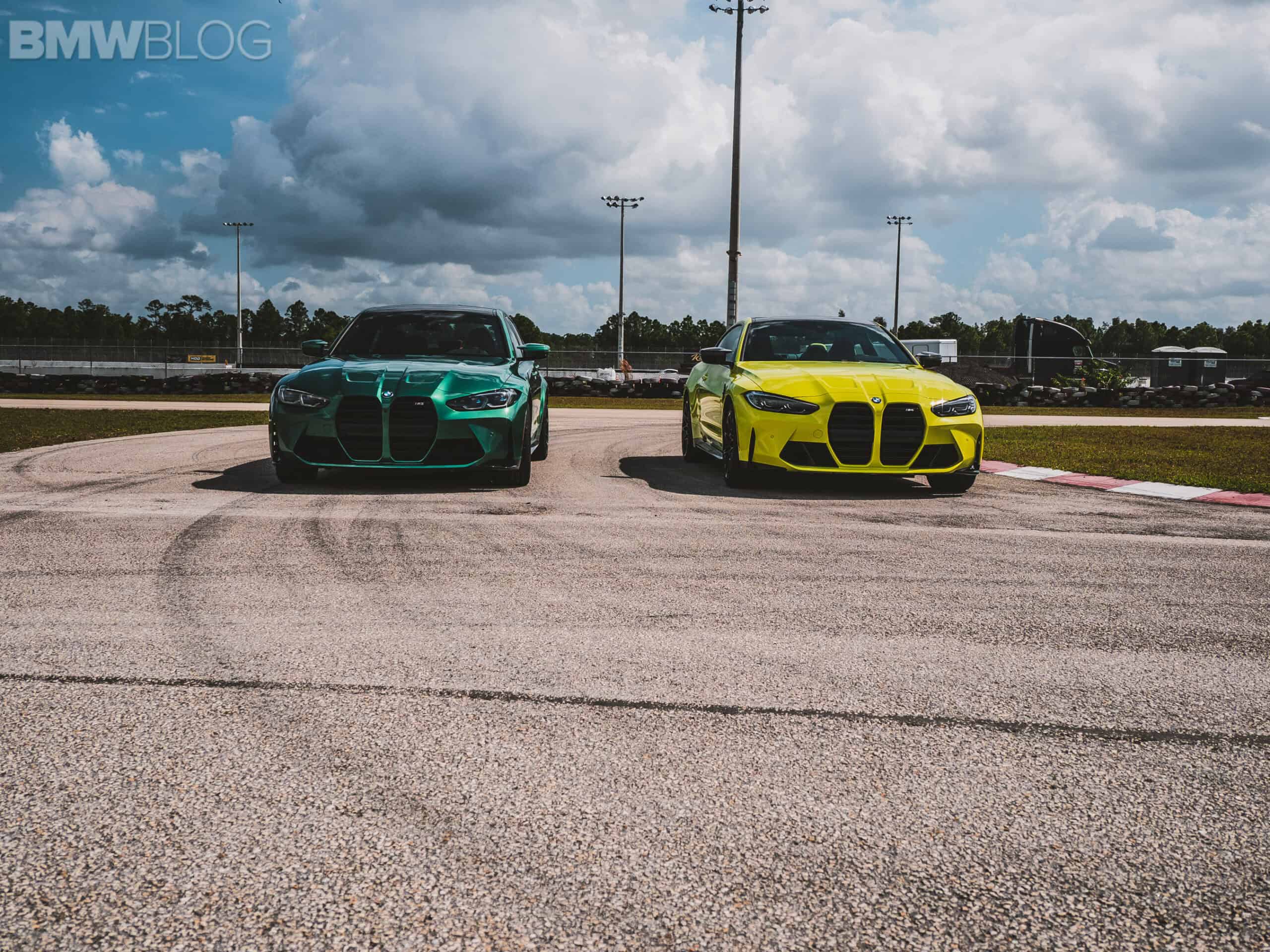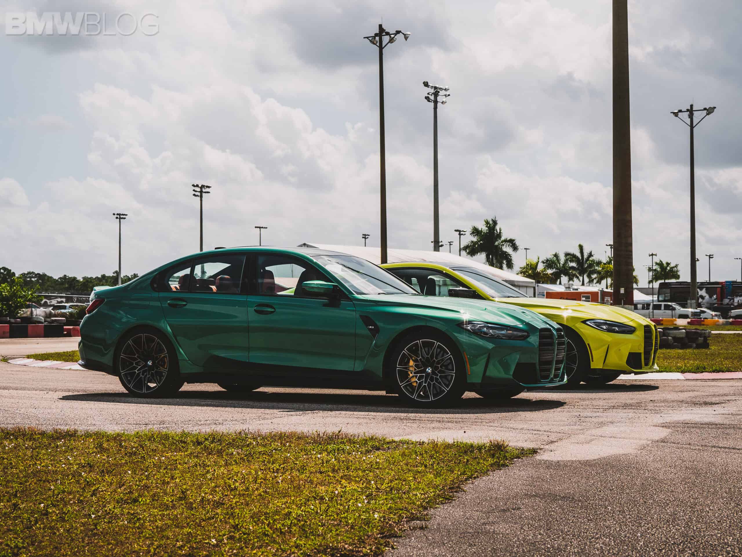 The two cars presented in Palm Beach were both rear-wheel drive and with the six speed manual. Whereas the G80 M3 in Isle of Man Green was in a stock form – no carbon fiber aero package, standard seats – the G82 M4 in Sao Paulo Yellow was decked out with the M Carbon Package, along with the carbon fiber sport seats with a BMW Individual leather.