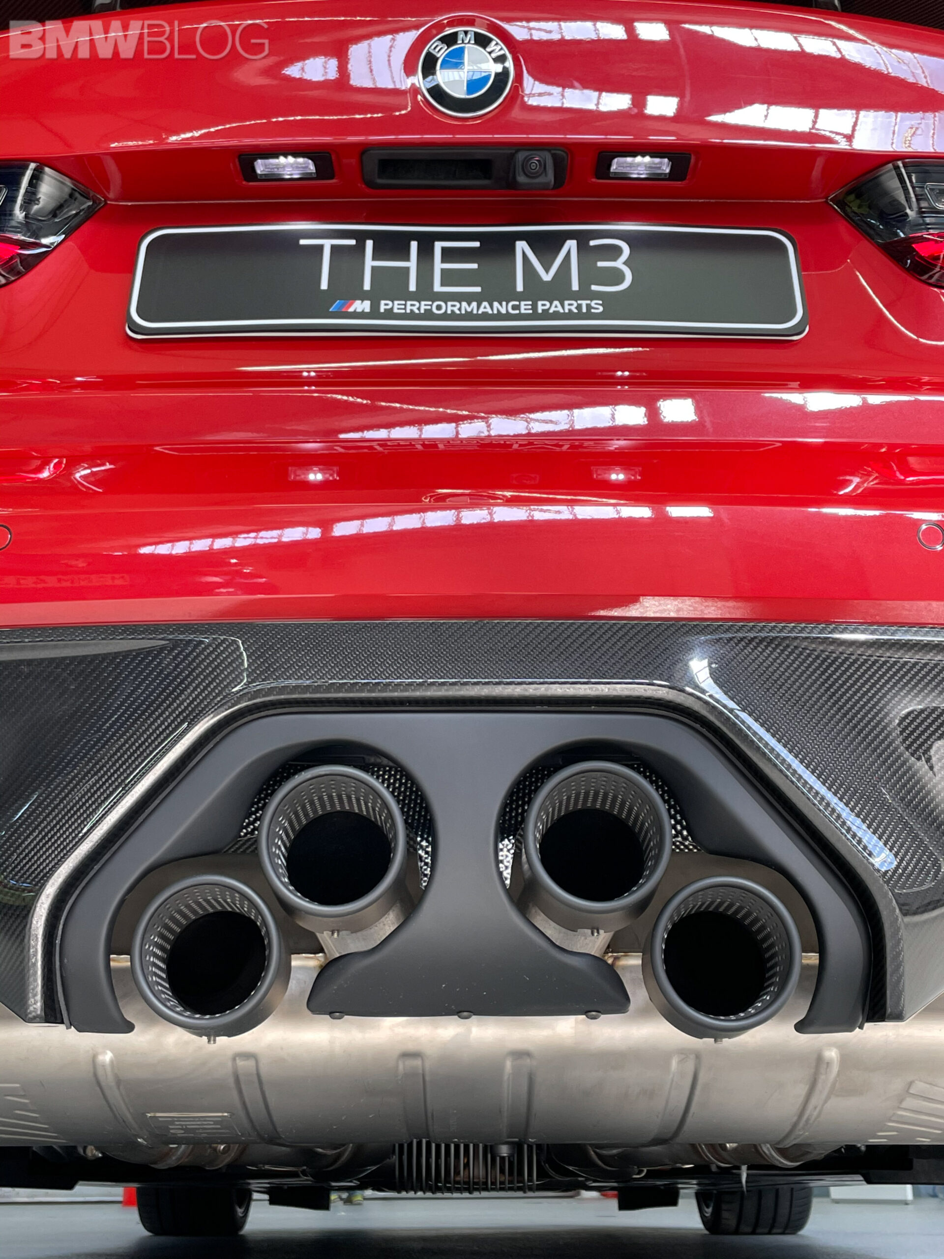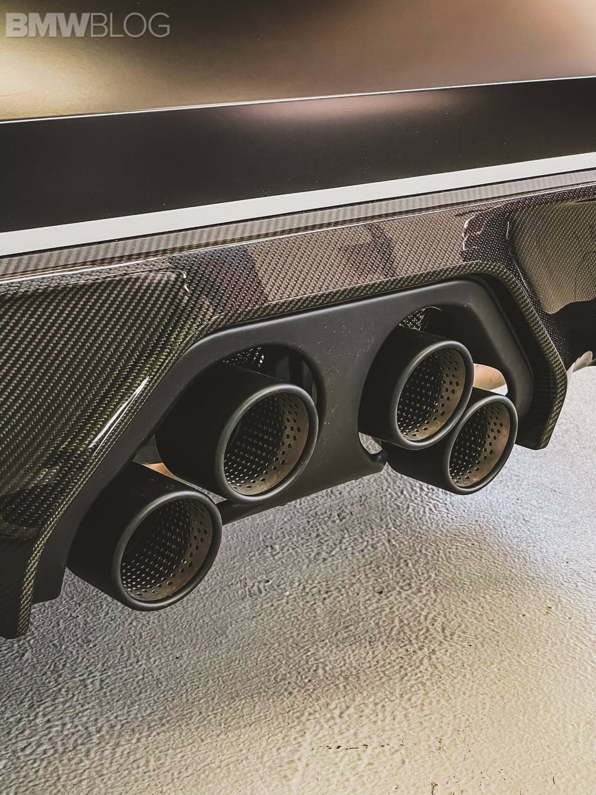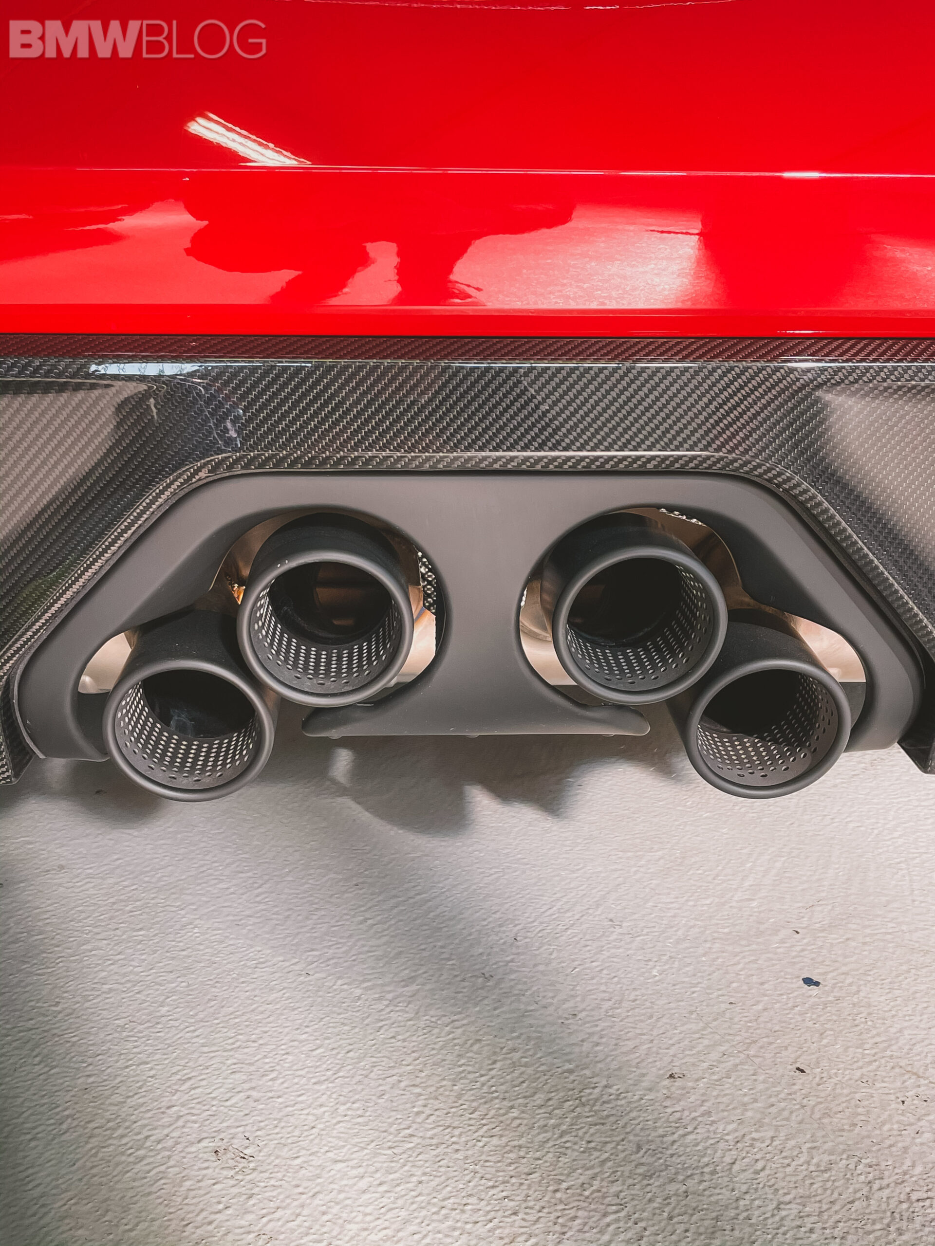 The exclusive photos give you a closer look at the car, and especially, at some of its unique aero and performance parts. The most interesting piece is the new exhaust system. While all M cars for the past couple of decades have had four exhaust pipes, two at either side of the rear end, this car’s quad pipes are a bit unusual. They’re huddled much closer together which apparently will also improve the sound.