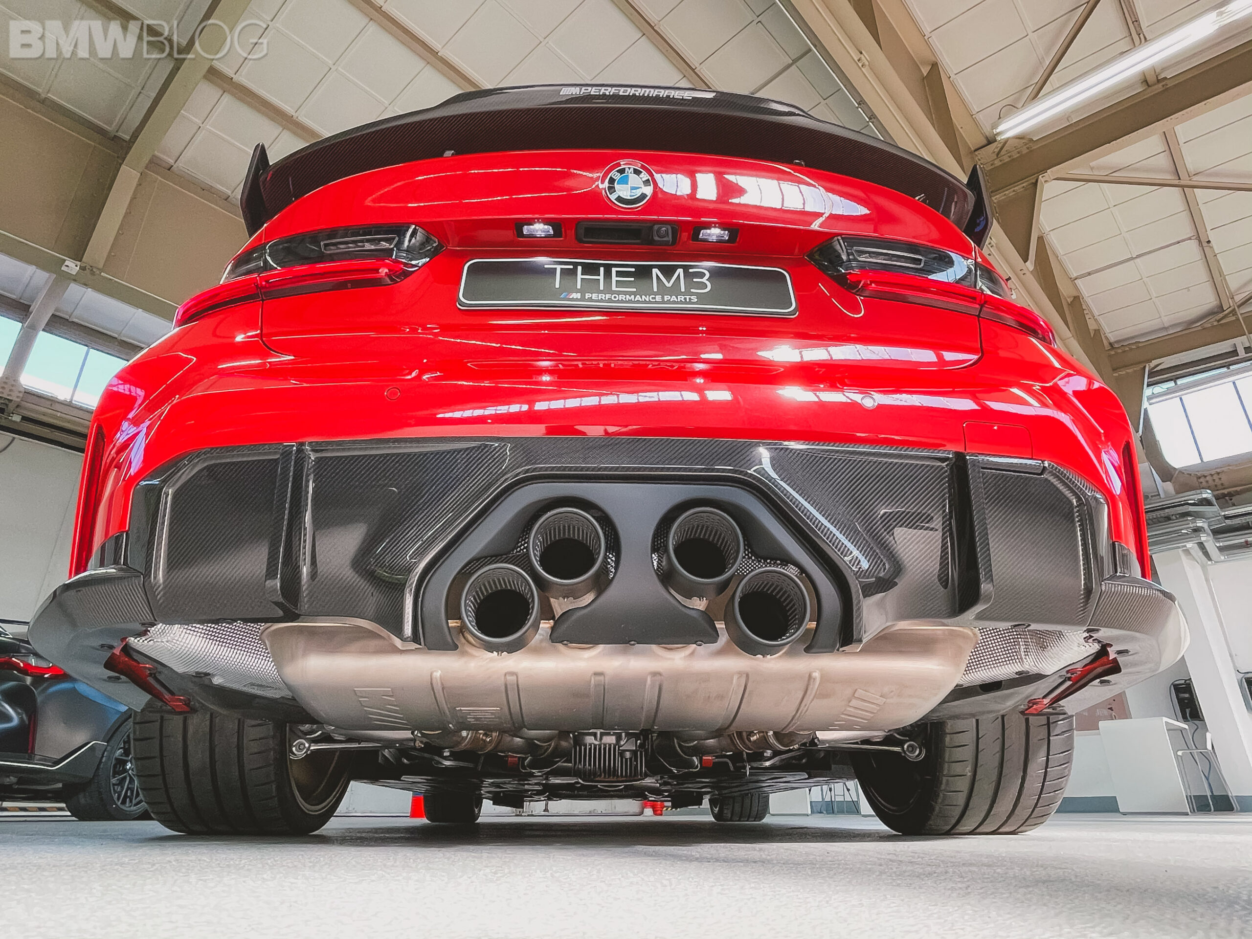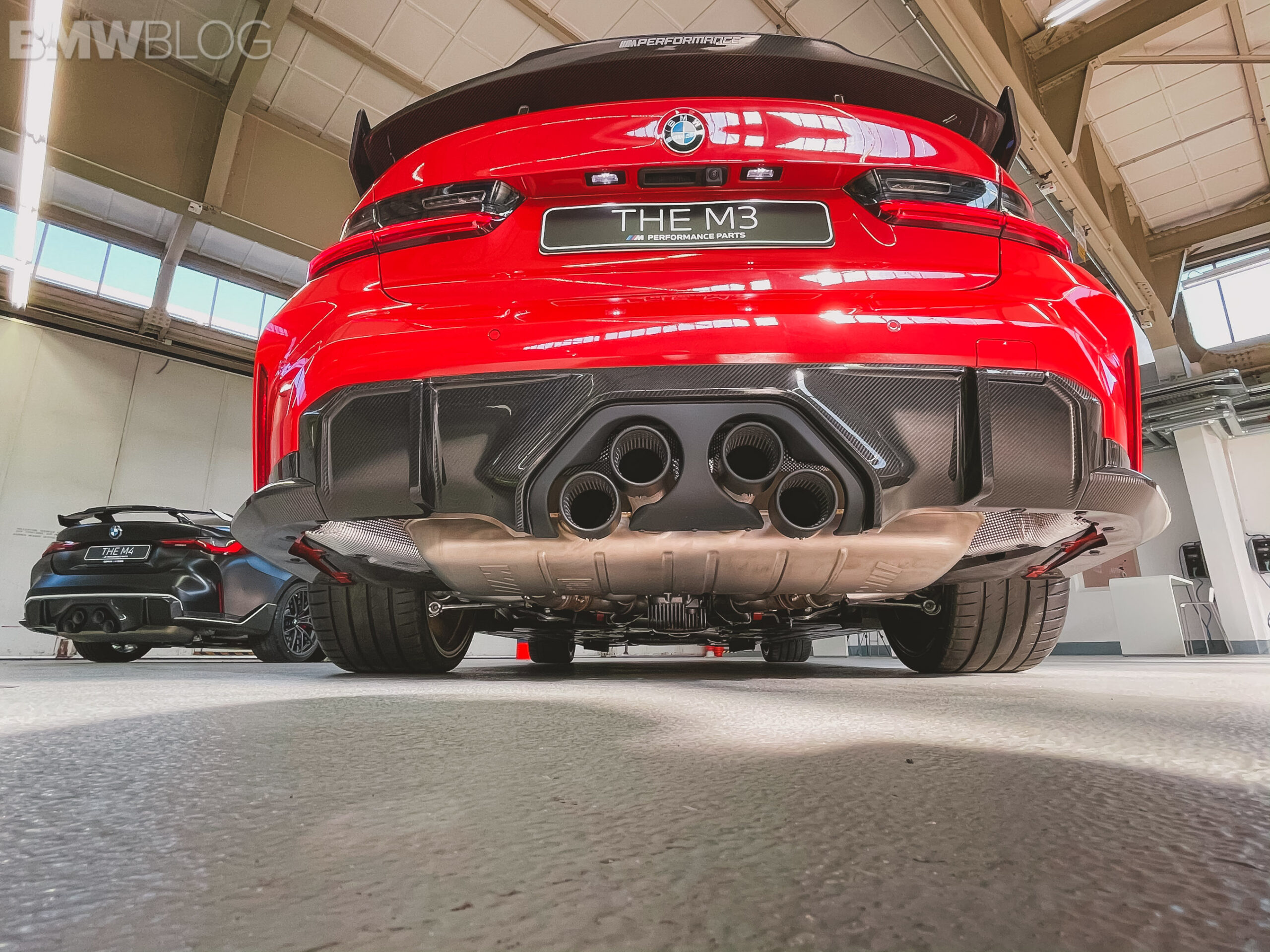 From the massive rear wing to the aggressive front fascia and especially to the trapezium-shaped pipes of the aftermarket exhaust system, these new parts certainly stand out. On top of this, BMW gave the launch car a two-tone red and black paint job which just adds even more flavor.