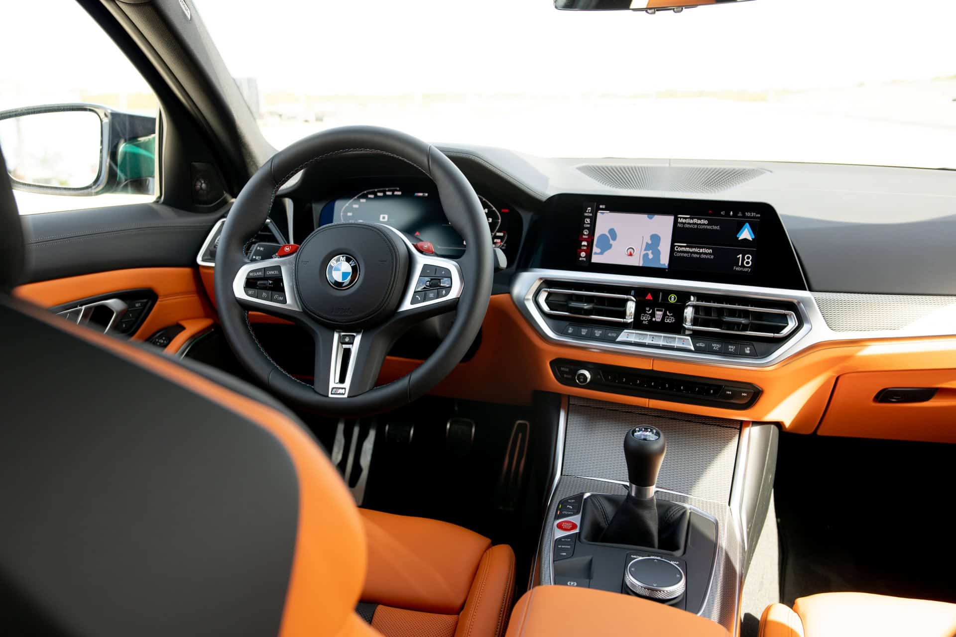 The new BMW M3 Sedan equipped with a sports-oriented, 6-speed manual transmission