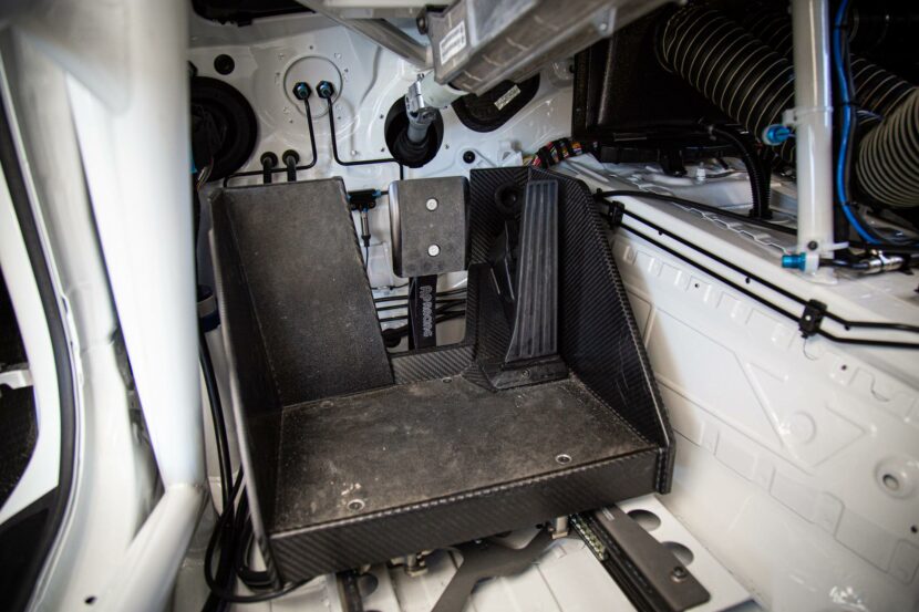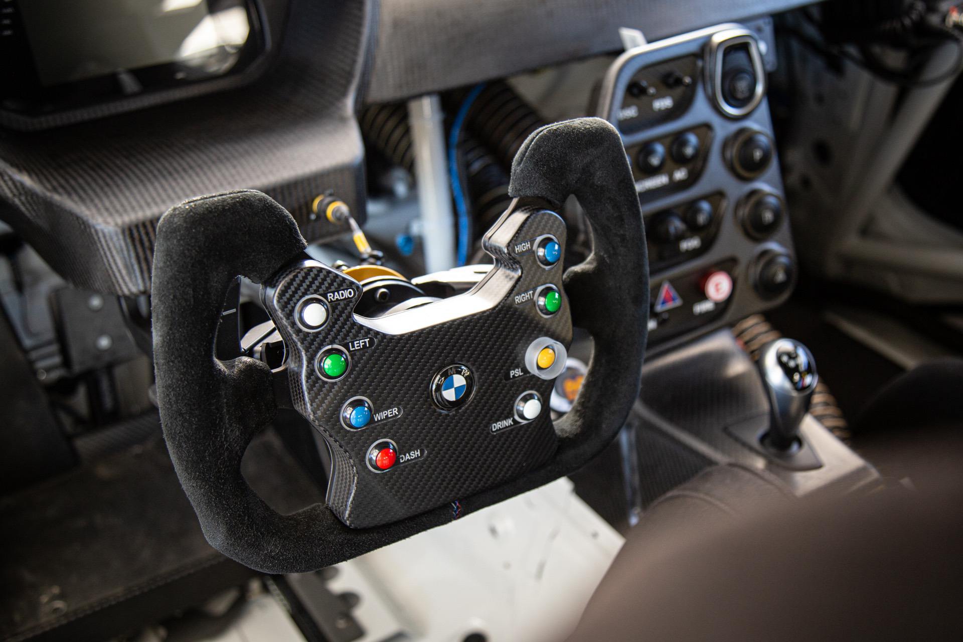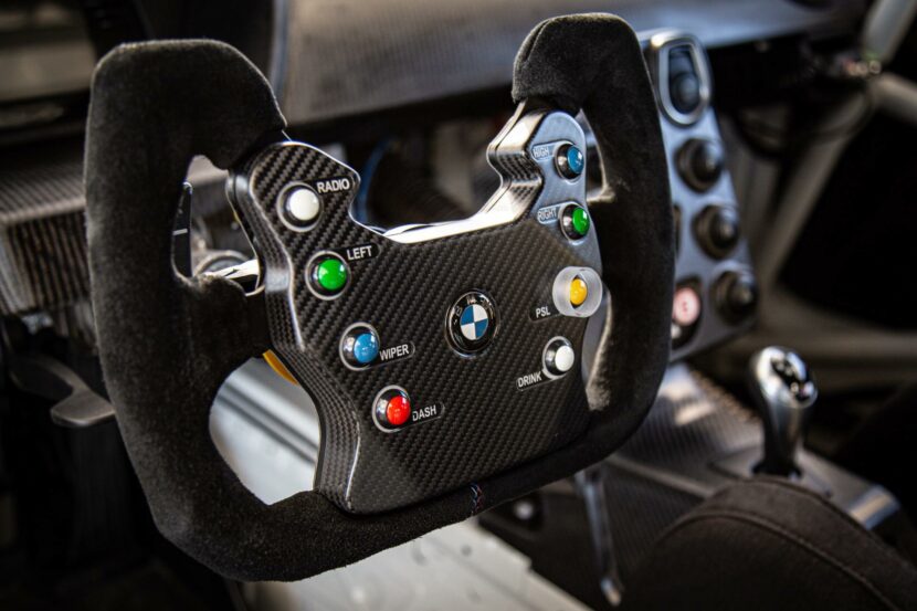 The M4 GT4’s traction control was clearly tied to the steering input. If there was a lot of steering angle, there was less power available. As you opened up the wheel, it would give you more, and as soon as the steering wheel went straight, you had max power. This was a cool experience as the power-to-weight ratio was much better than the M4, plus add in the additional traction from the slick tires, and it would just rocket out of the corner!
