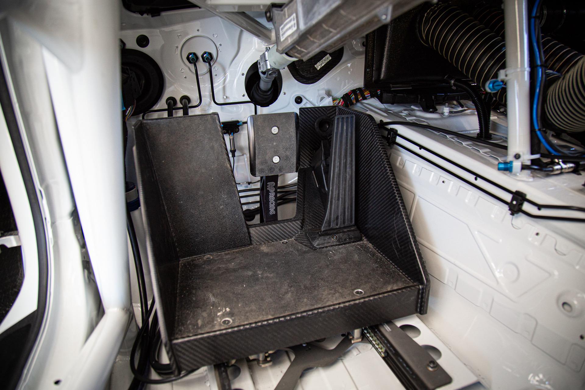 The pitlane exit on the South Palm Circuit puts you right onto the longest straight of the track. This gives you a great run onto the straight and you get up to somewhere around 130-135 MPH at the end of it. And that’s when you notice that the brakes are very different from the road car! They are much, much firmer and take quite a bit of effort to get them to engage. But this is on purpose as they are designed to not overheat during long endurance races. If you’ve been on track, you know how brakes can start to feel rather squishy as the pedal throw gets longer throughout the session. That won’t happen in this car.