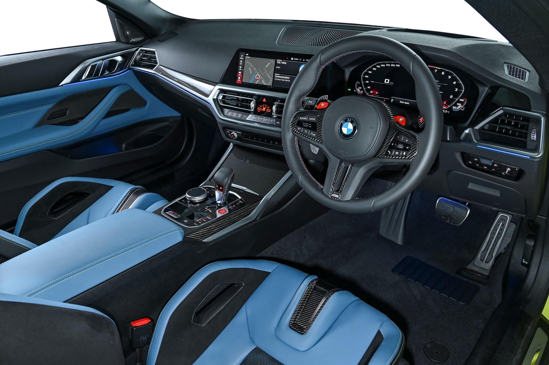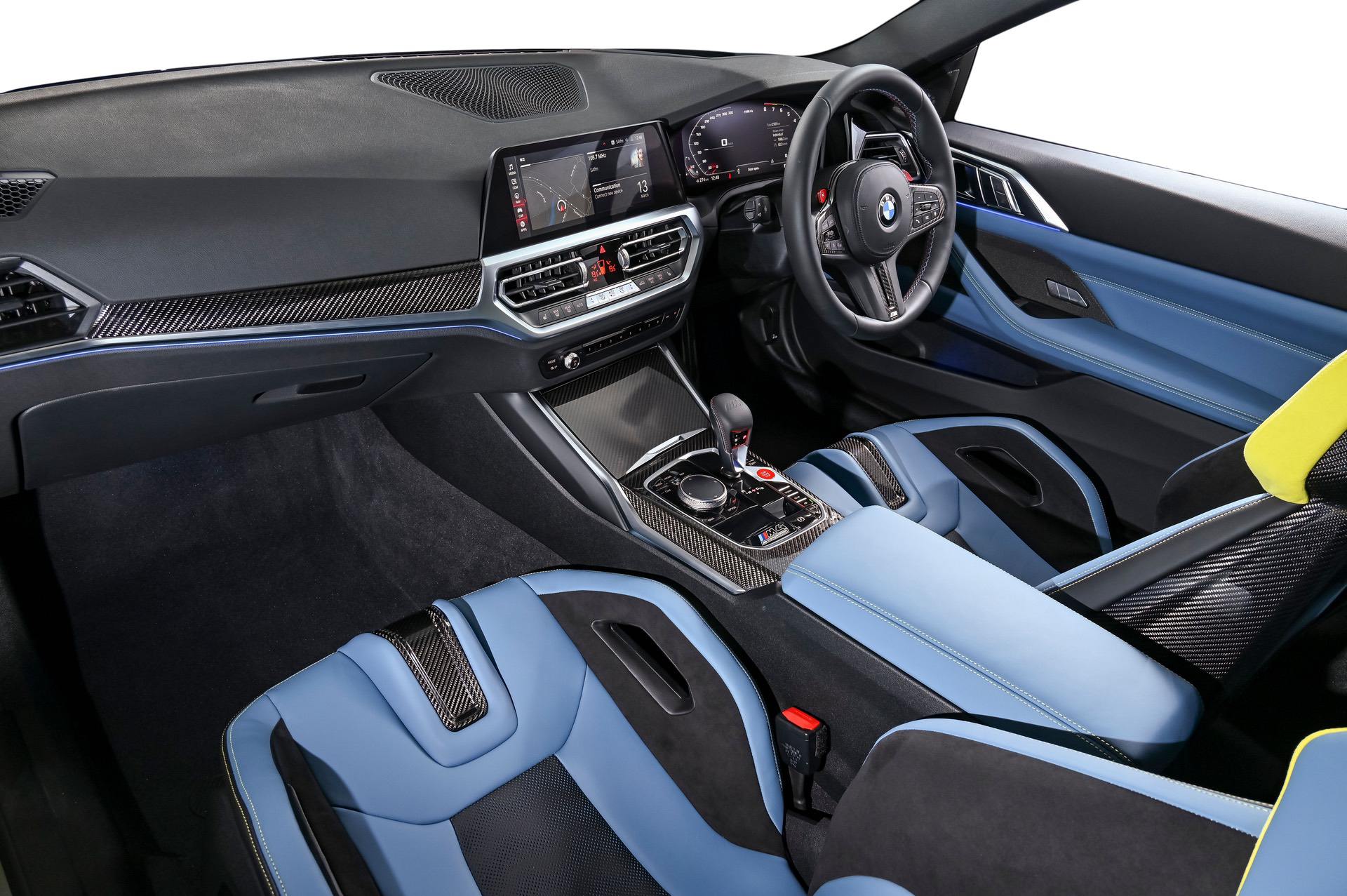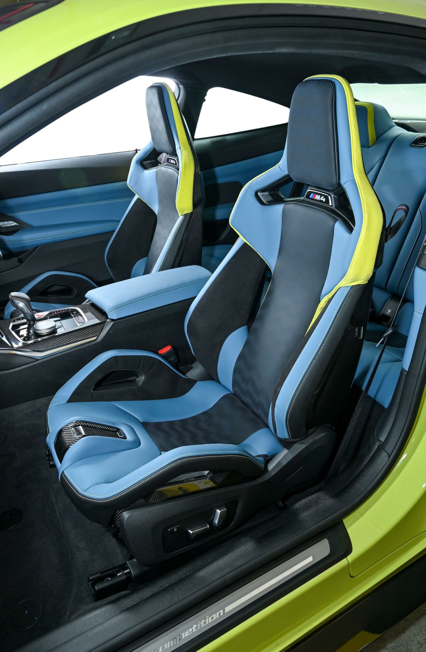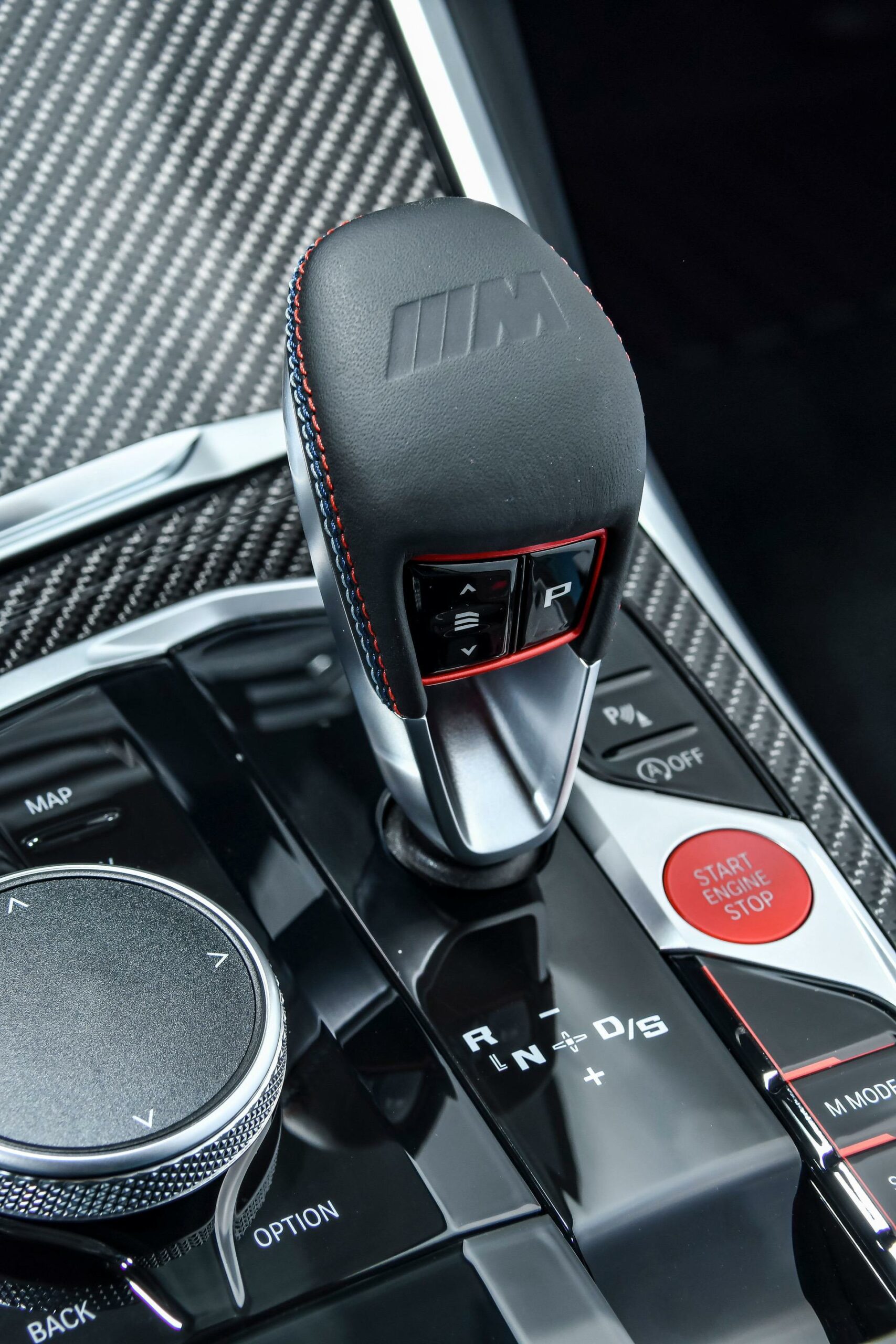 Things are equally exciting in the interior of this M4 Competition. The carbon fiber Competition bucket seats are wrapped in a two-tone leather combination – black and white – which work extremely well with the carbon fiber inserts. The new BMW M3 Sedan and M4 Coupe also come with a standard BMW Individual Anthracite headliner and dashboard trims in high-gloss black material. Further optional appointments include the Aluminum Tetragon ornaments and the Carbon Fibre high-gloss package which carbon fibre trims and carbon inlays for the steering wheel and shift paddles.