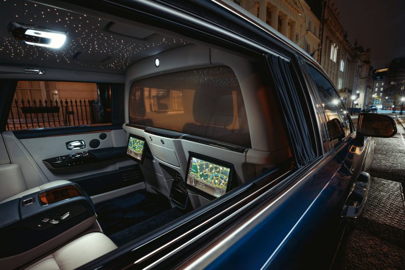 This is a new offering for Rolls-Royce cars, that was patented back in 2020. A raising panel has been used in a variety of cars before but this new feature comes with a lot more than just that. The separator is made of electrochromatic glass which basically can become opaque at the touch of a button. This way, you can separate the front and the rear halves of the car not just acoustically but also visually. Furthermore, rear passengers have the ability to see through the glass and on to the road ahead, or go opaque for absolute privacy. Of course, the side windows can also be blocked with the already famous curtains Rolls-Royce has been offering for quite some time now.