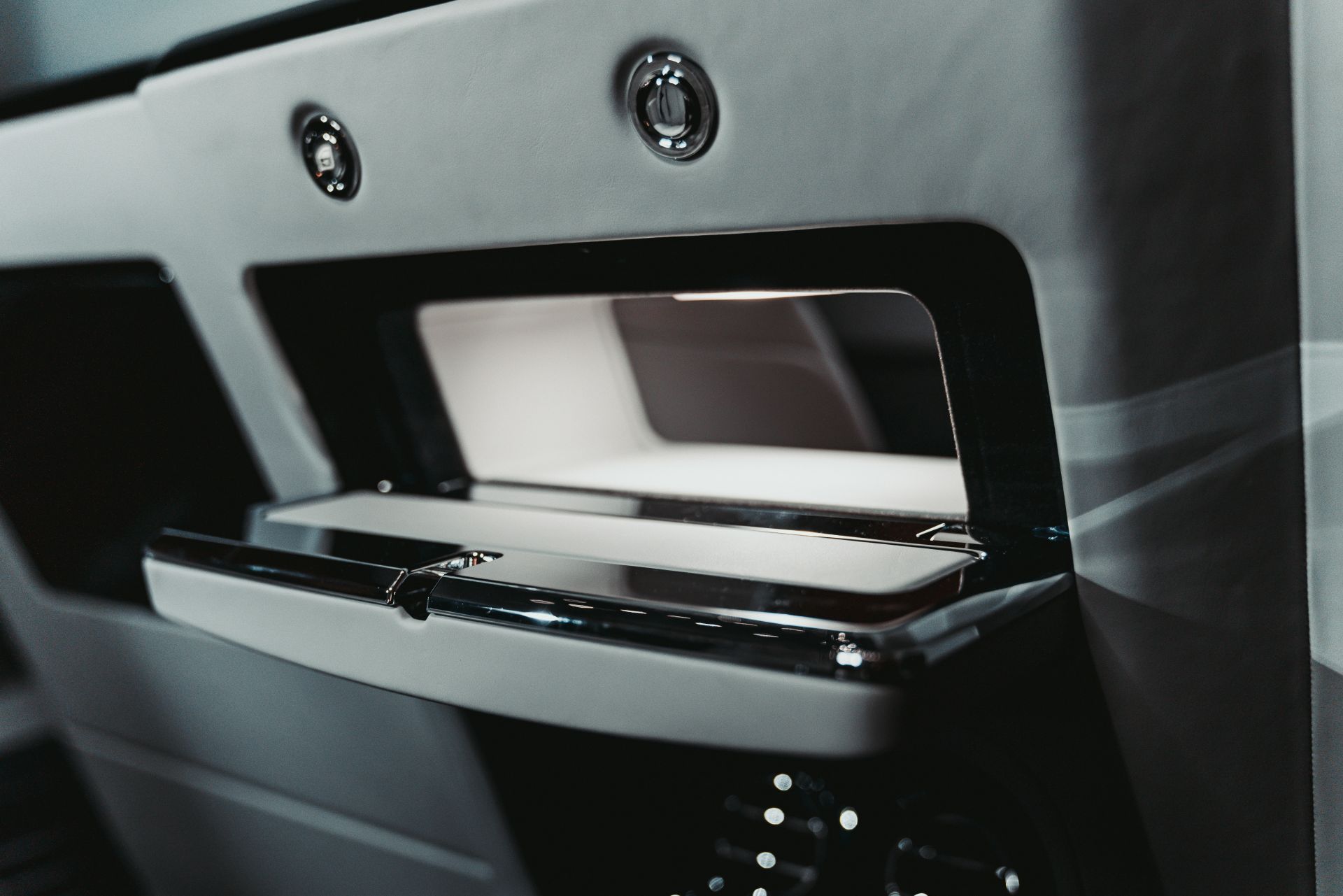 The Privacy Suite also gets a rear theater mode, allowing passengers to review presentations, review live news items or simply control their music library. Two high-definition 12-inch monitors are linked to the Phantom’s suite of fully connected software; an HDMI port allows passengers to mirror the screens of their personal devices and a USB port can be used to store audio files to the on-board 20GB hard drive.